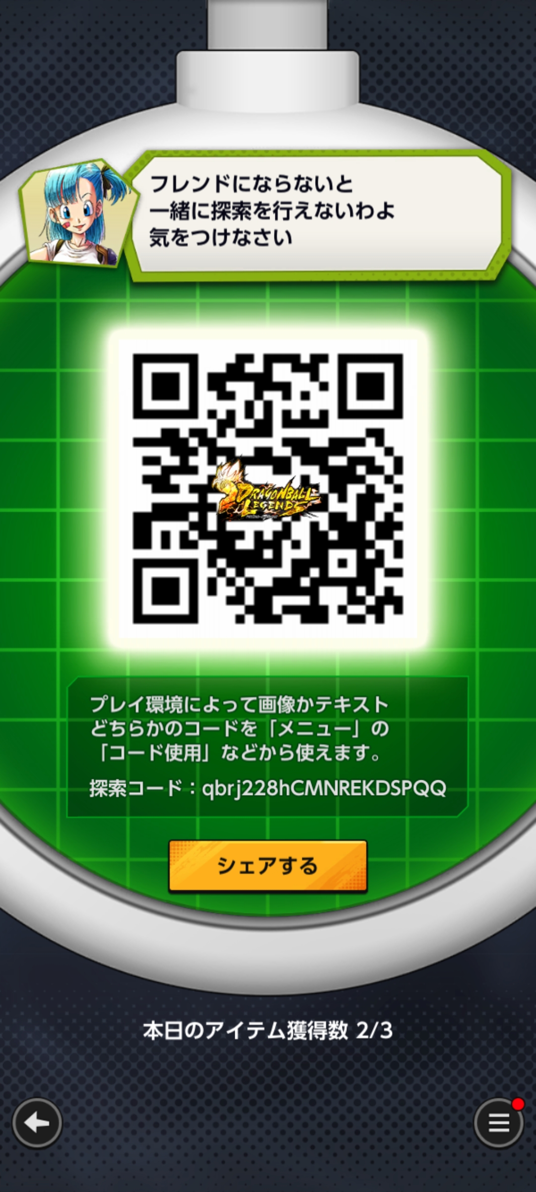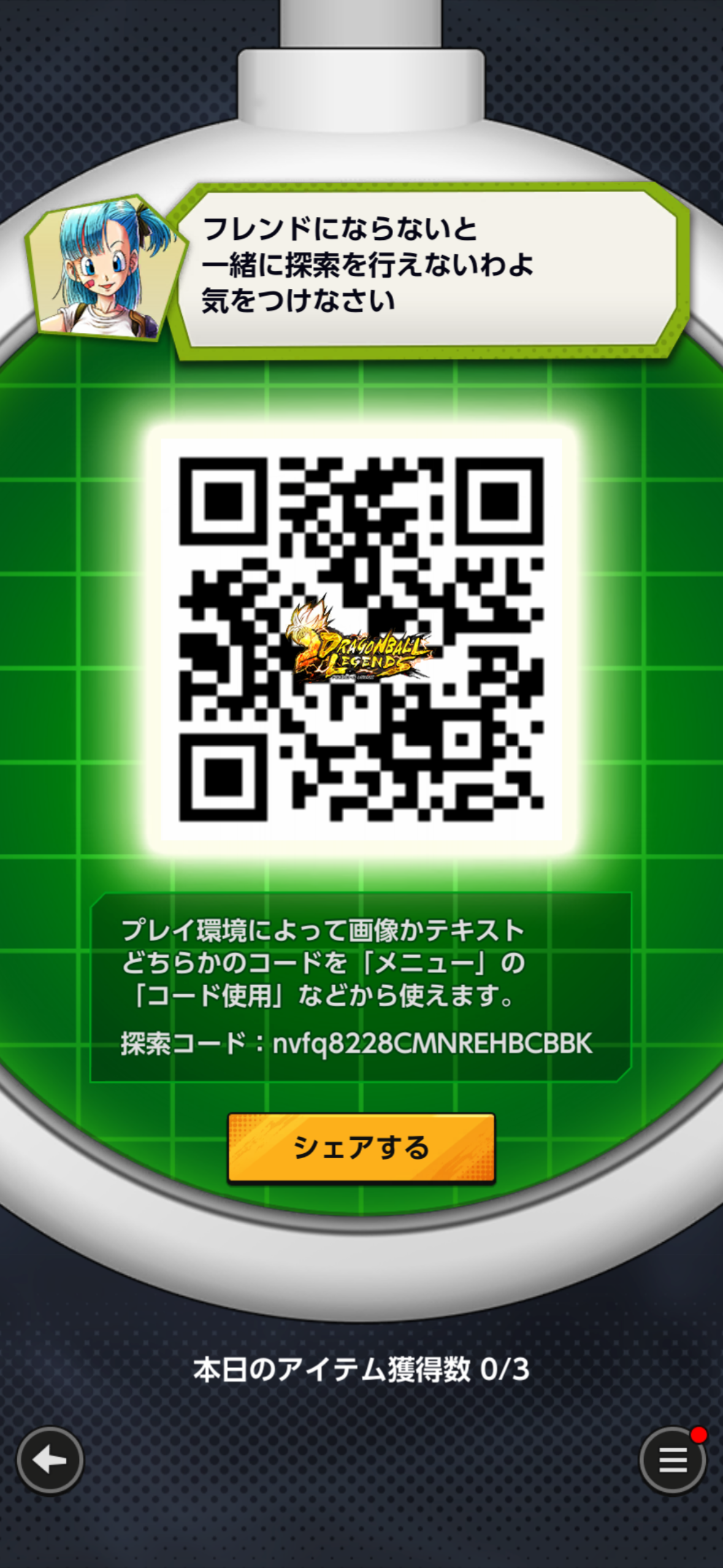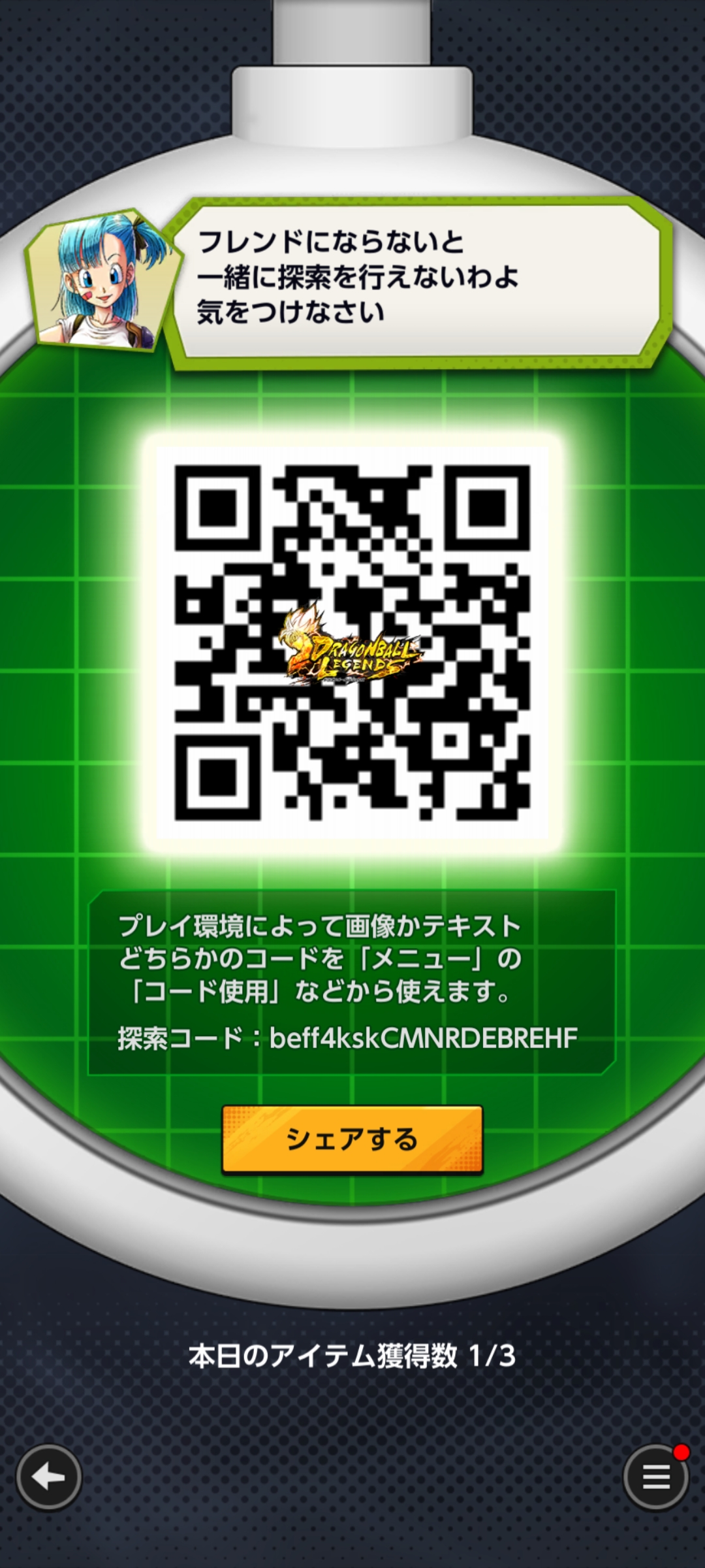 • フレンドのQRコードを読み込む事でドラゴンボールを探索できる
