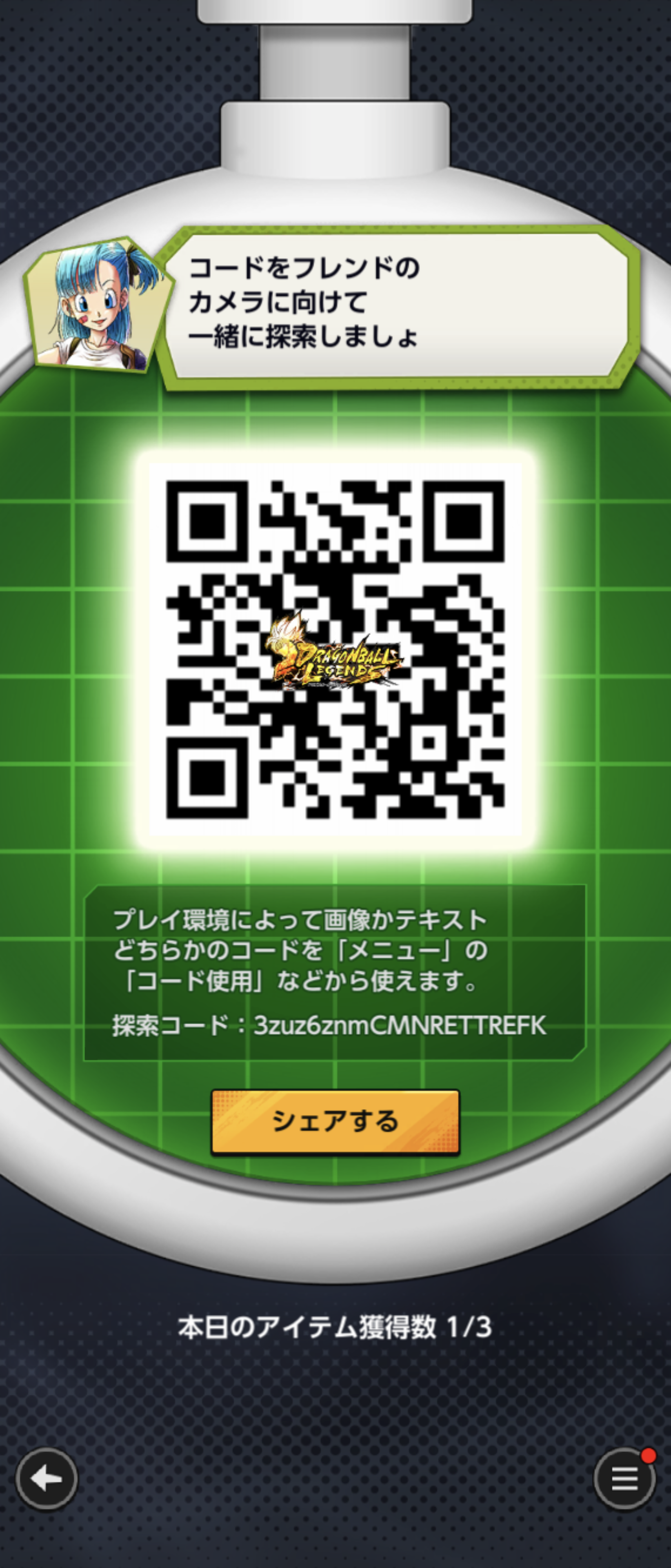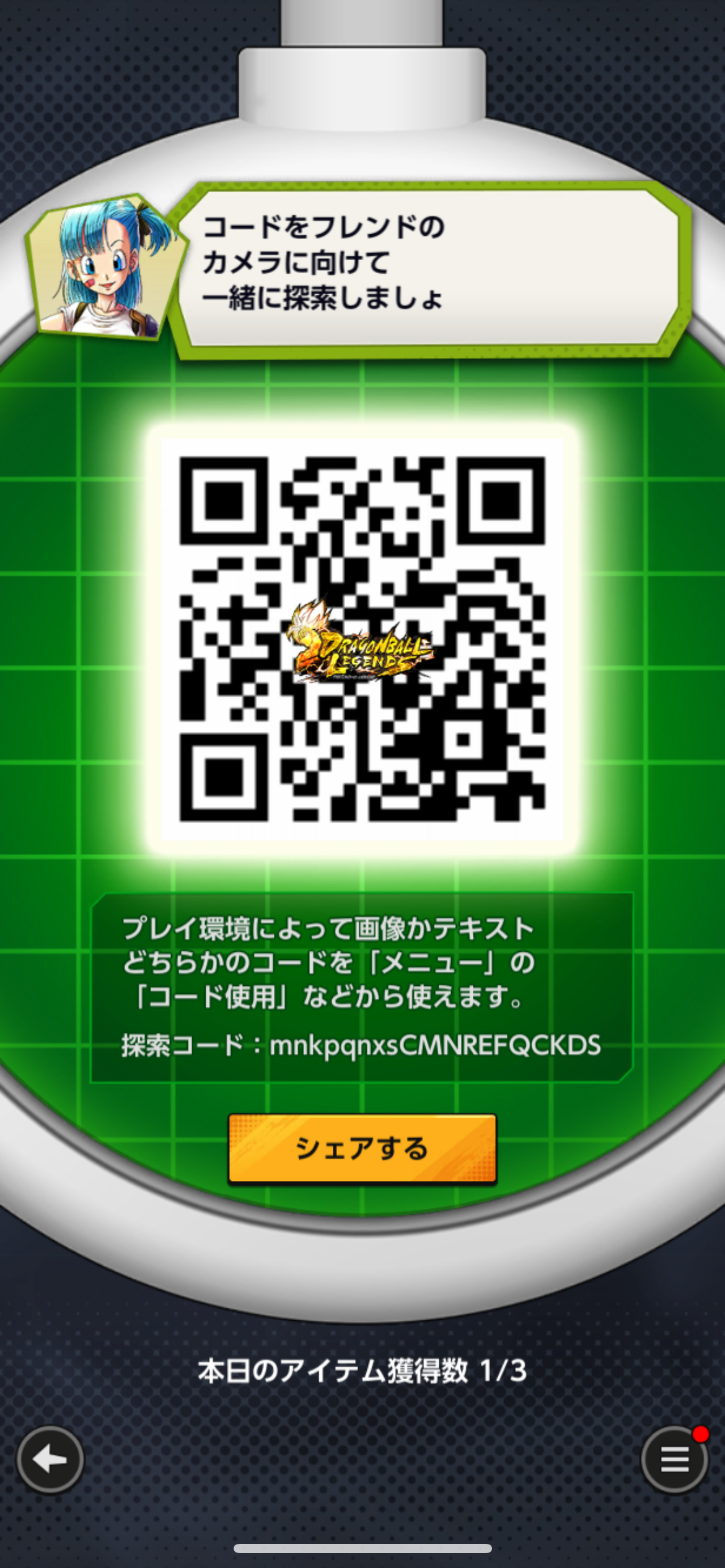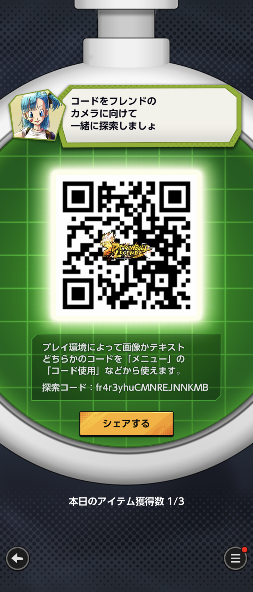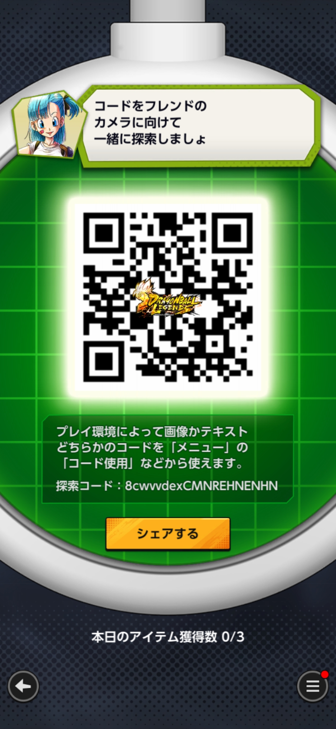 • フレンドのQRコードを読み込む事でドラゴンボールを探索できる
