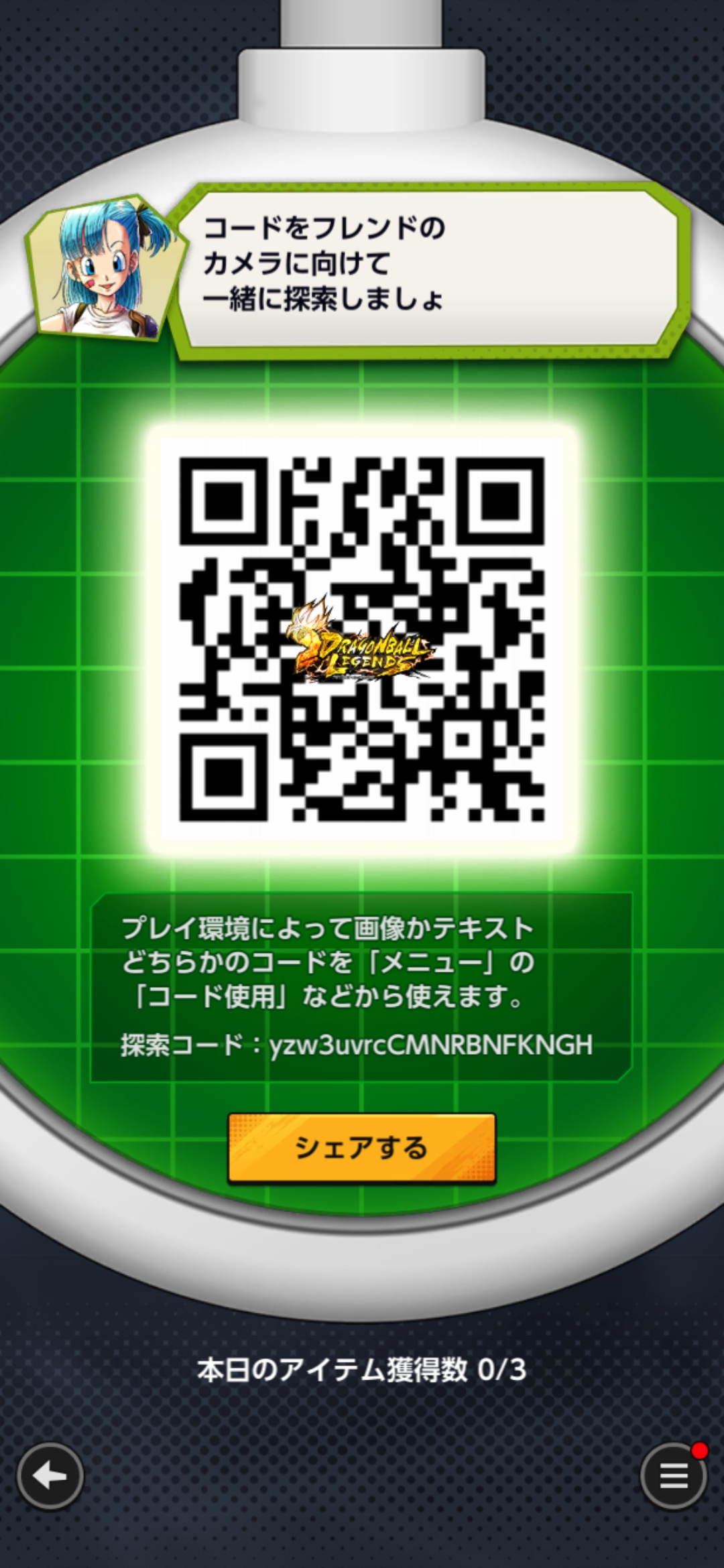 - フレンドのQRコードを読み込む事でドラゴンボールを探索できる