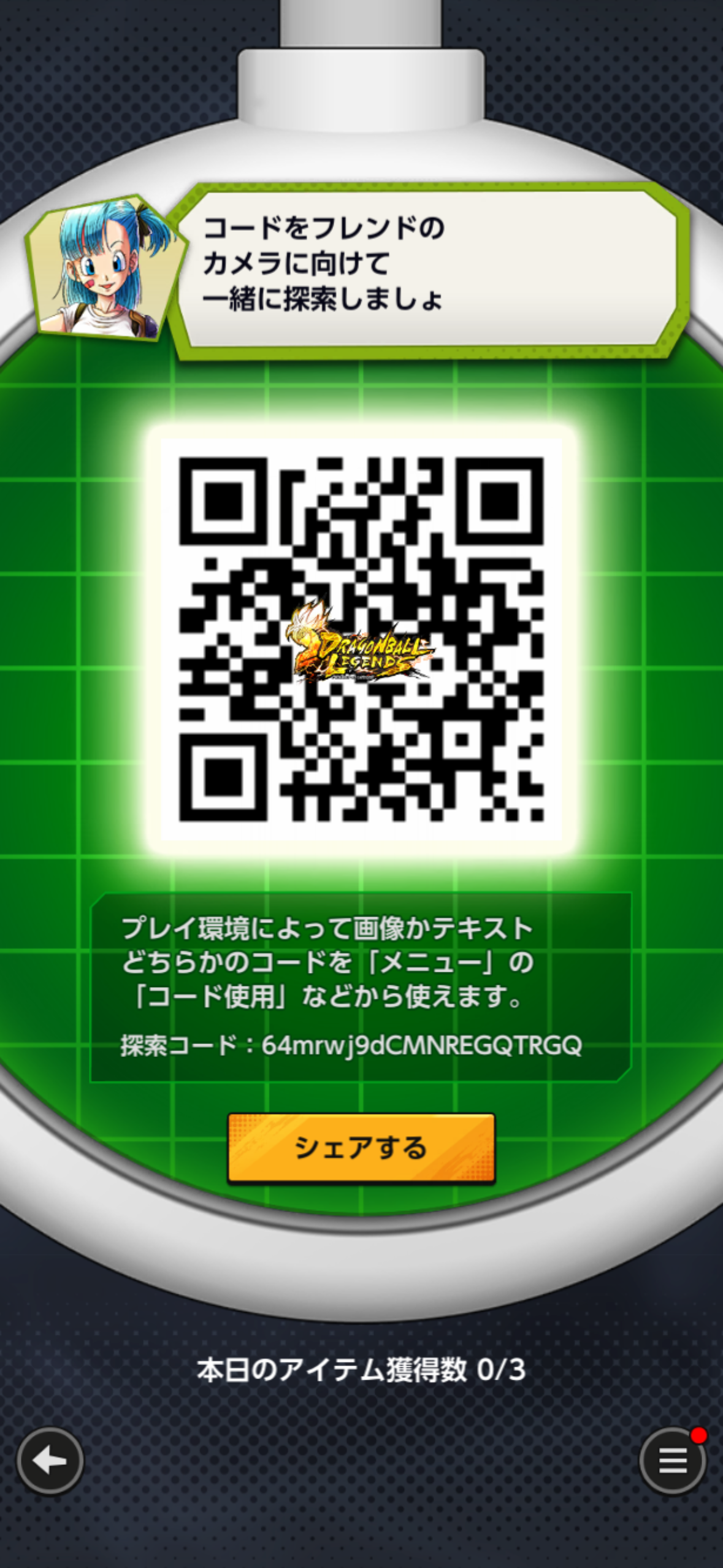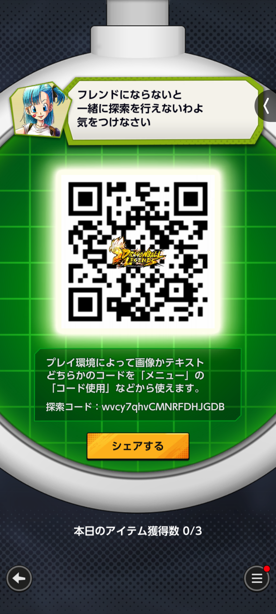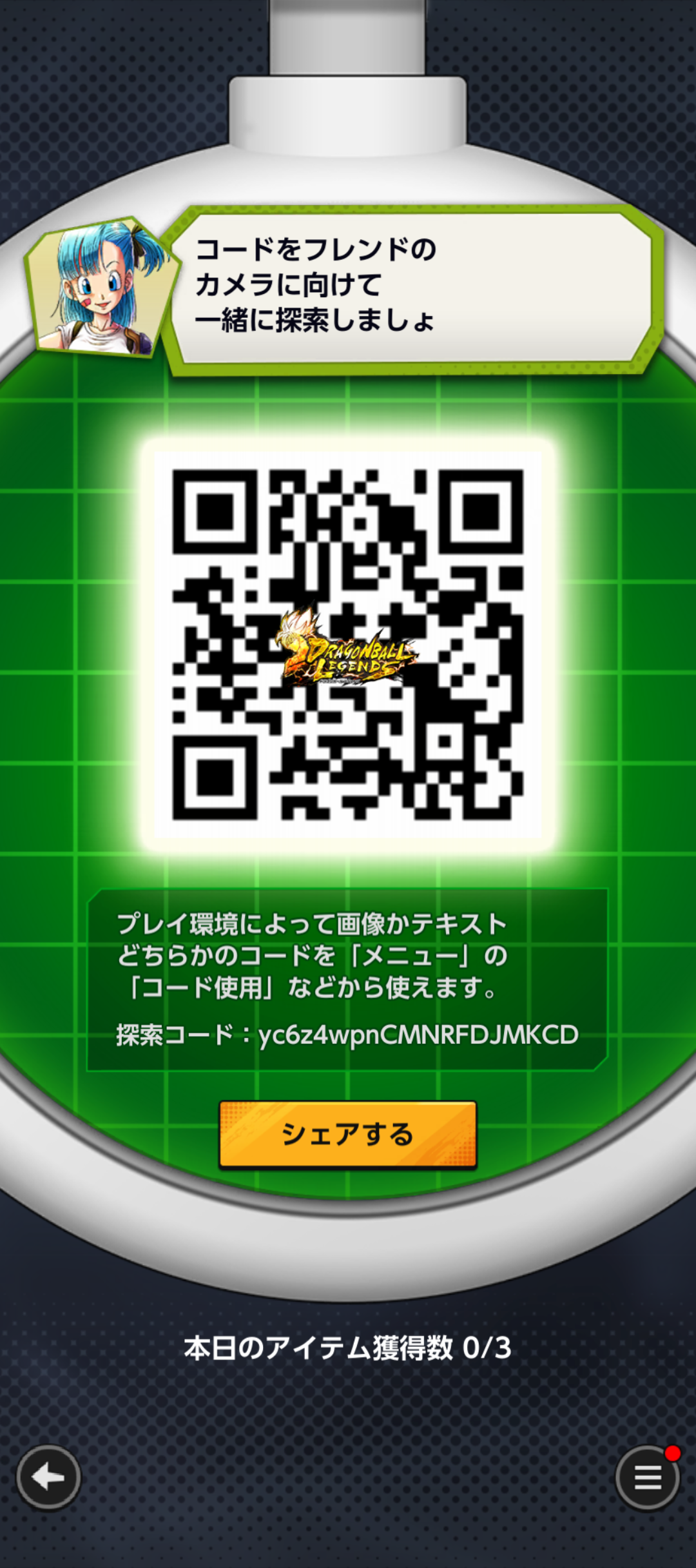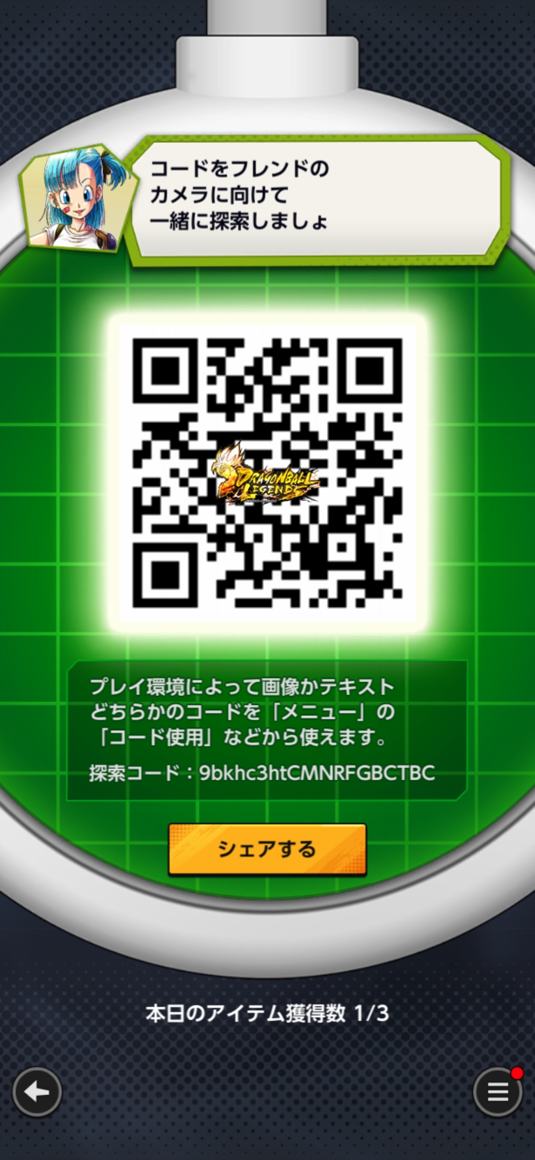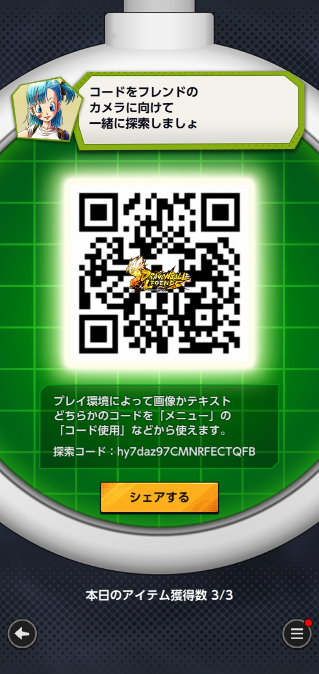 - フレンドのQRコードを読み込む事でドラゴンボールを探索できる