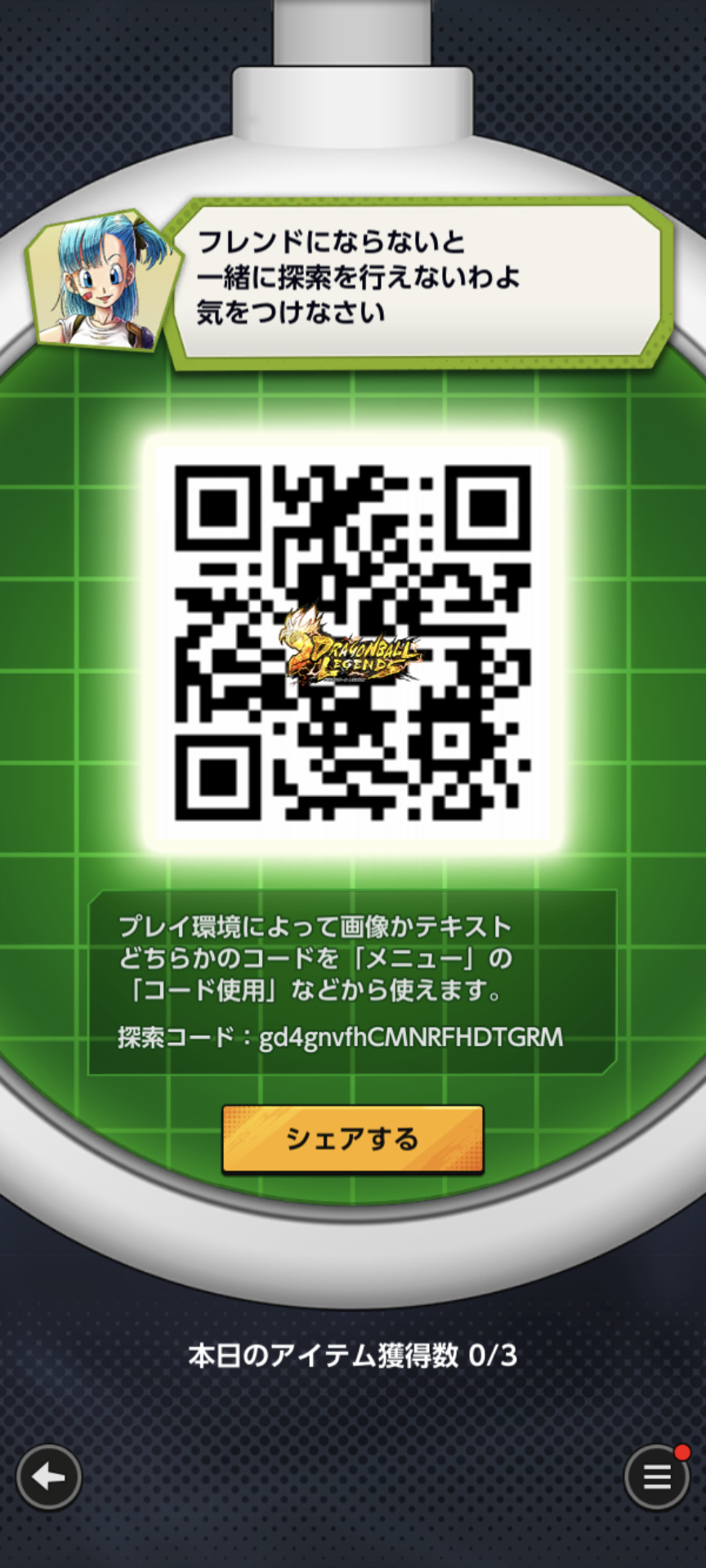 • フレンドのQRコードを読み込む事でドラゴンボールを探索できる