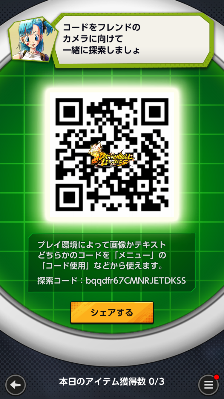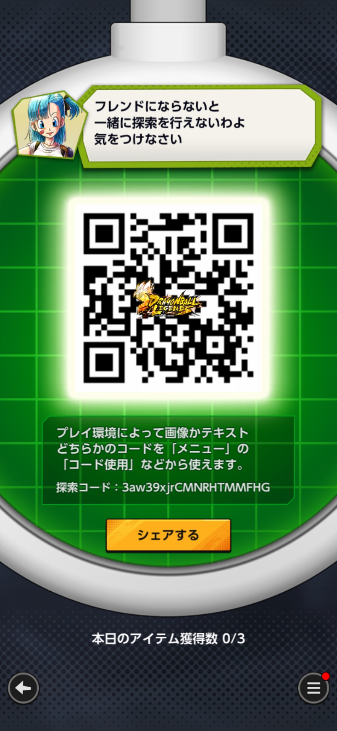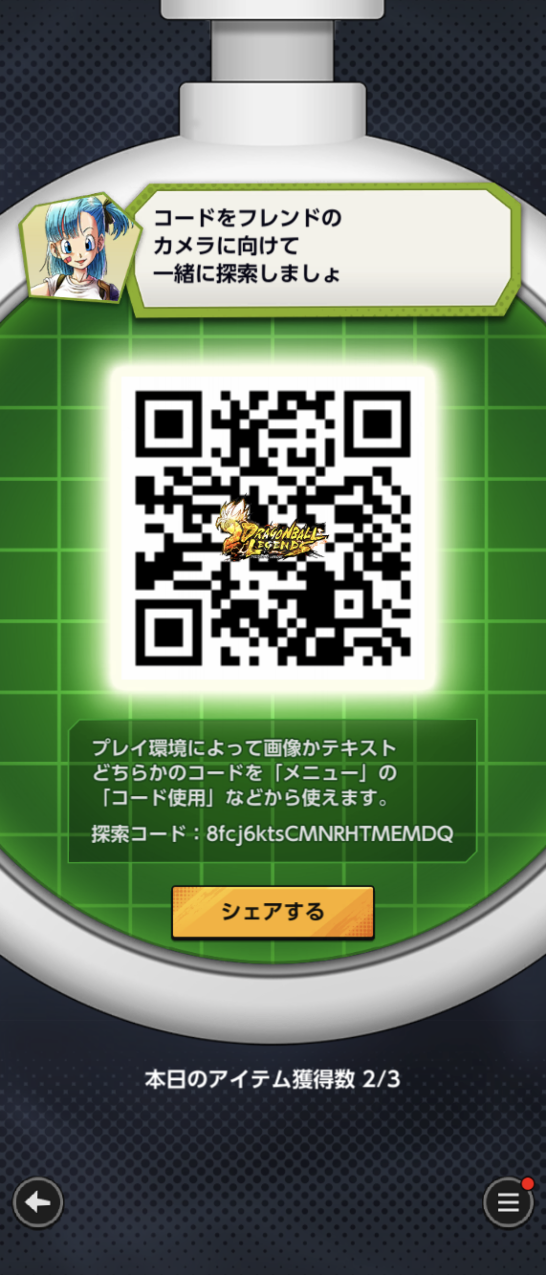 - フレンドのQRコードを読み込む事でドラゴンボールを探索できる