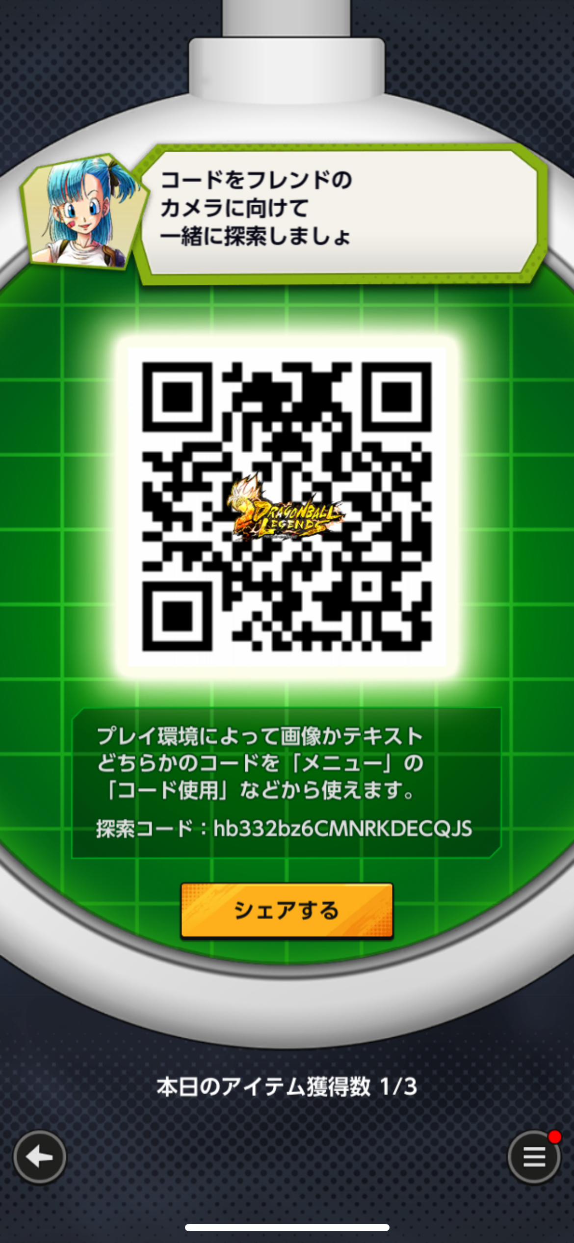 - フレンドのQRコードを読み込む事でドラゴンボールを探索できる