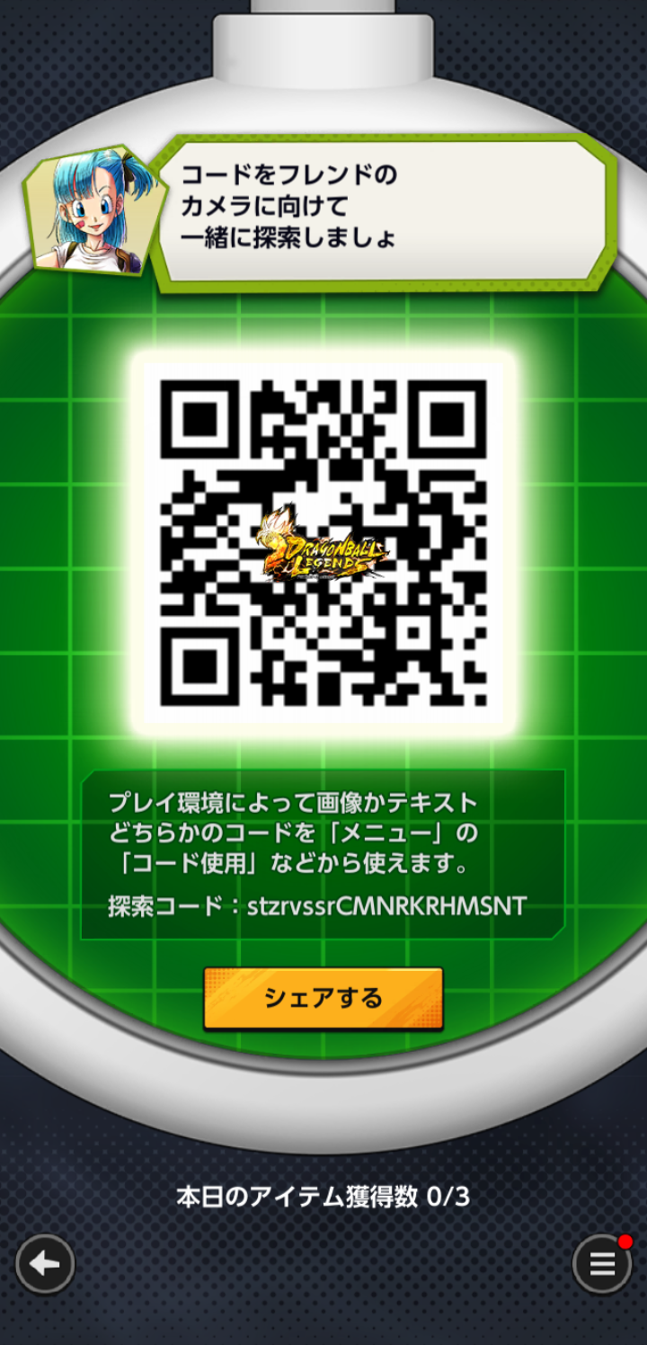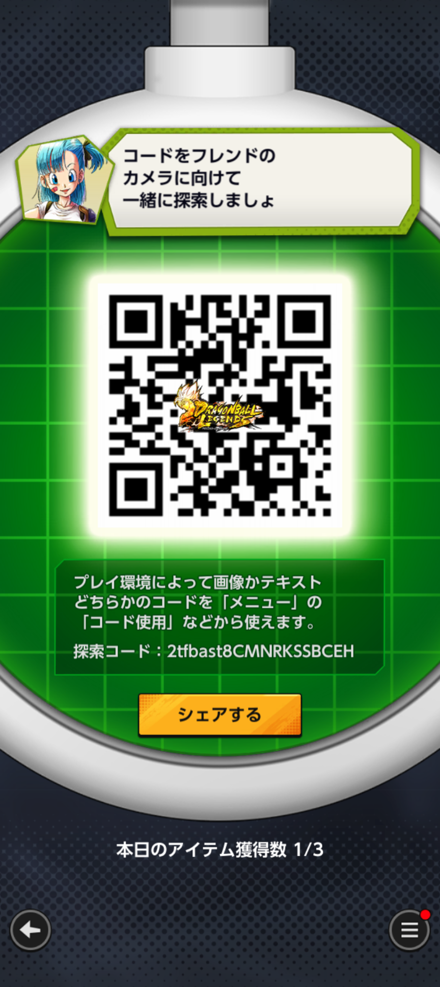 • フレンドのQRコードを読み込む事でドラゴンボールを探索できる