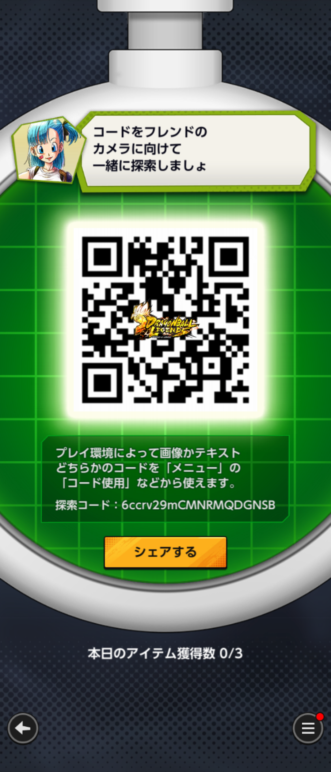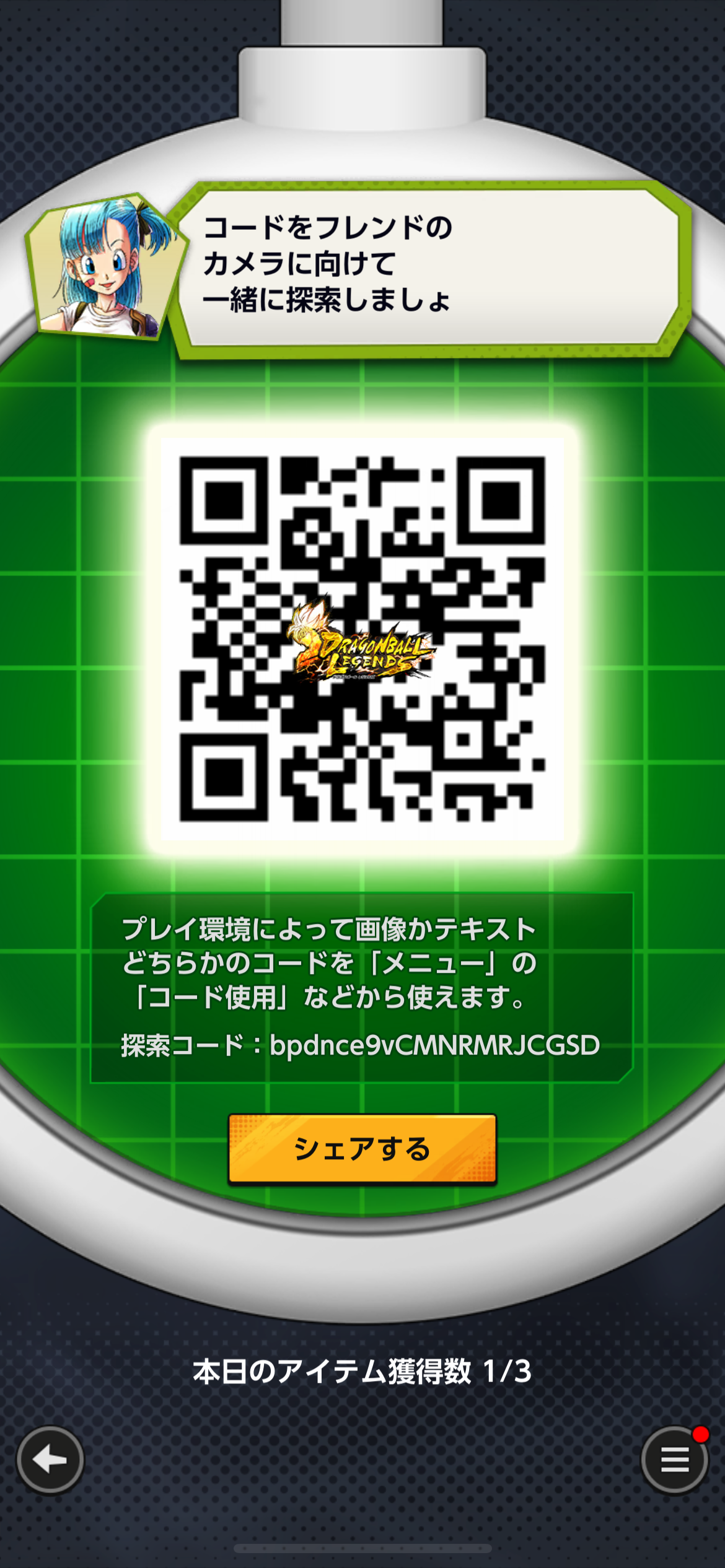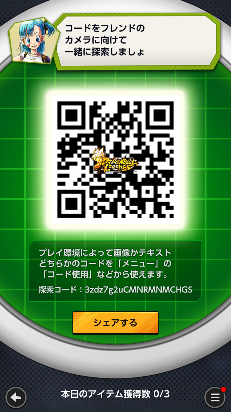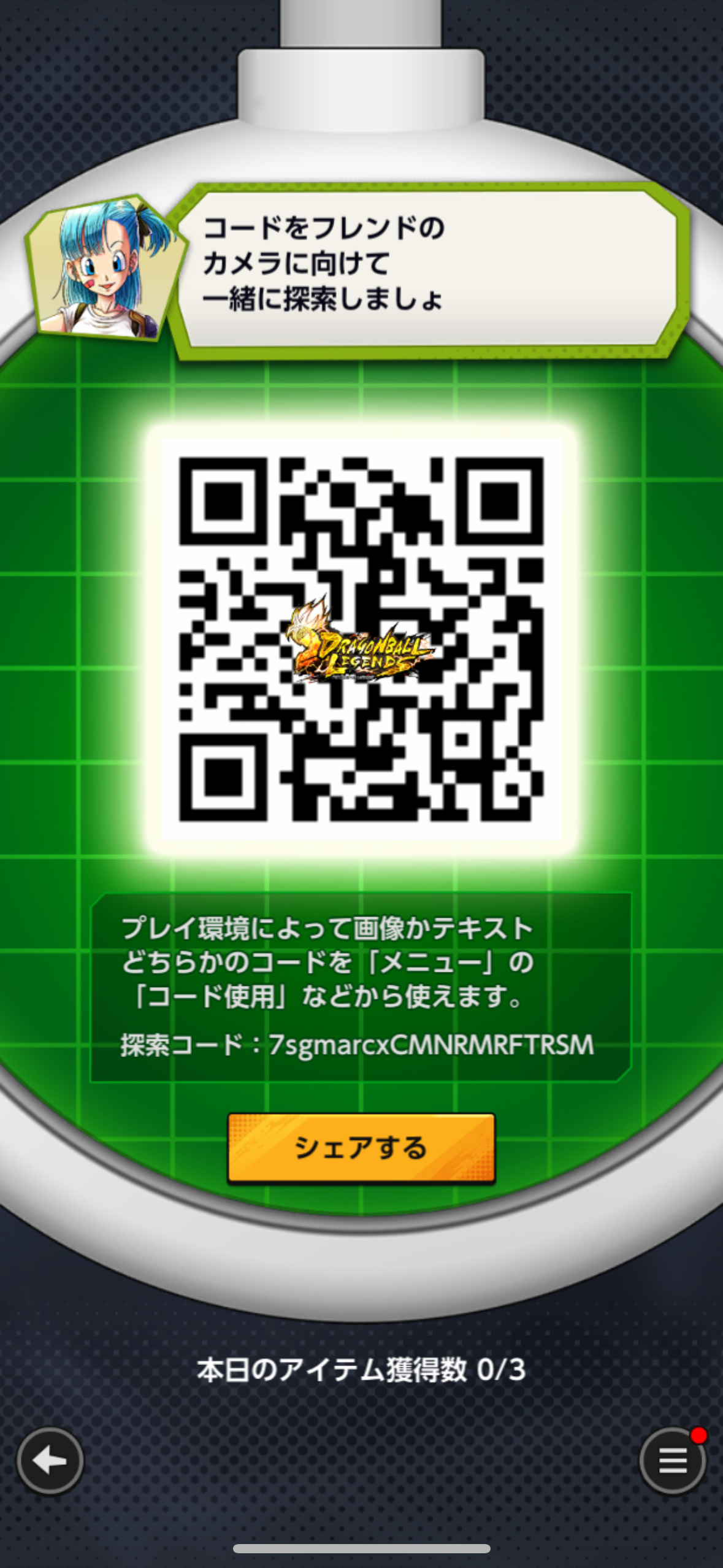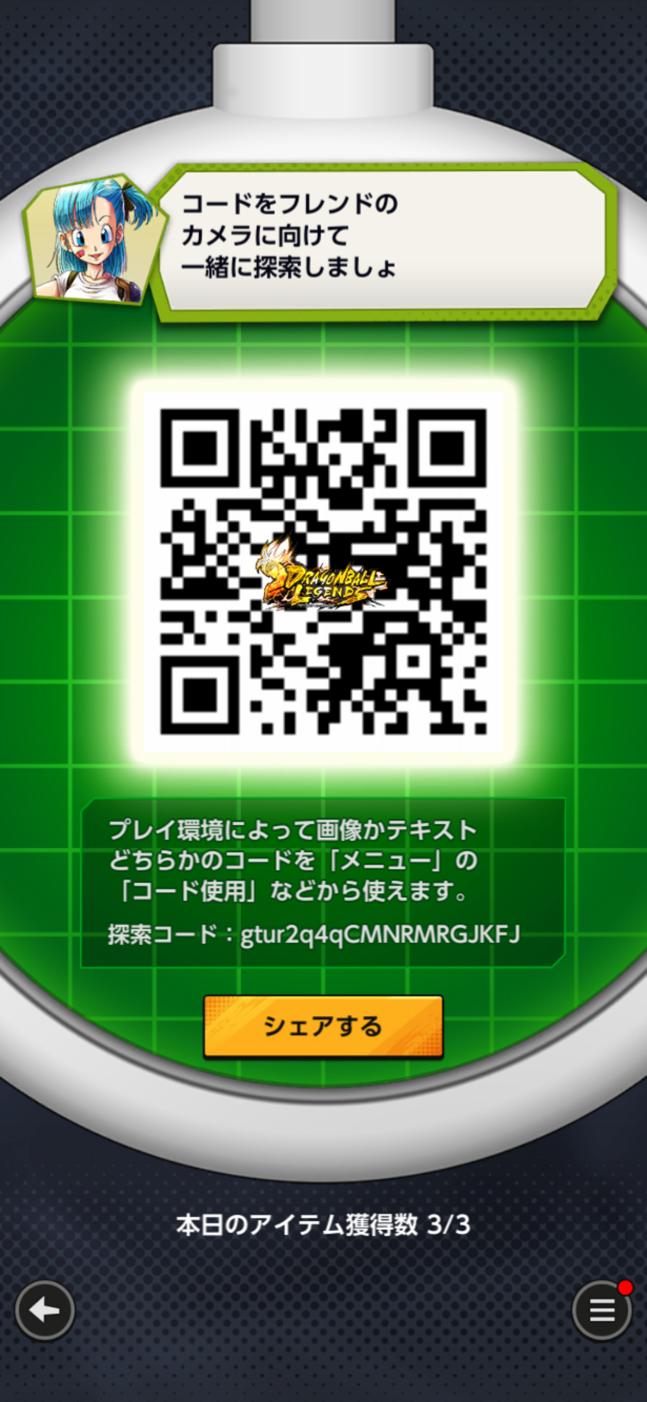 - フレンドのQRコードを読み込む事でドラゴンボールを探索できる