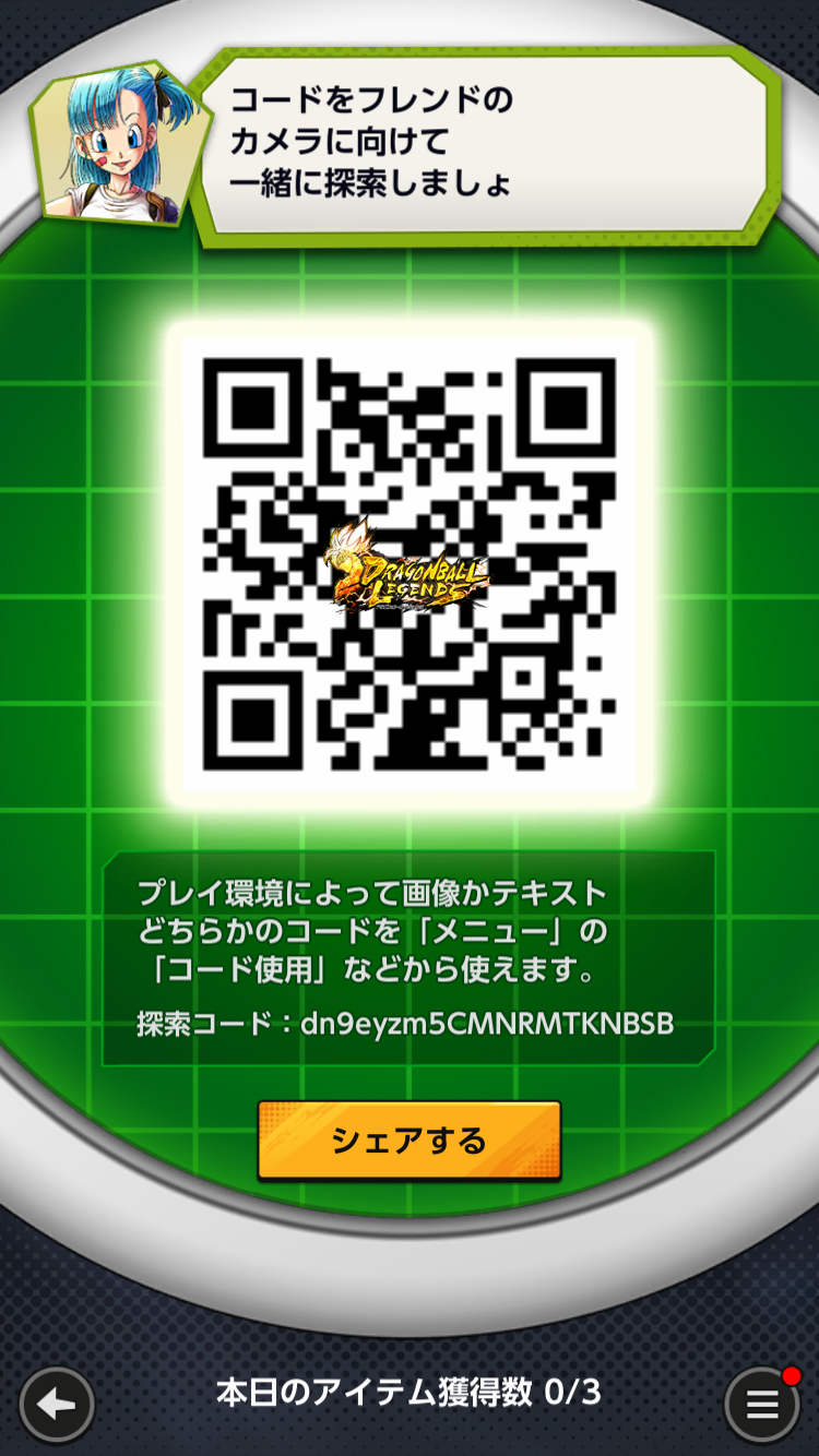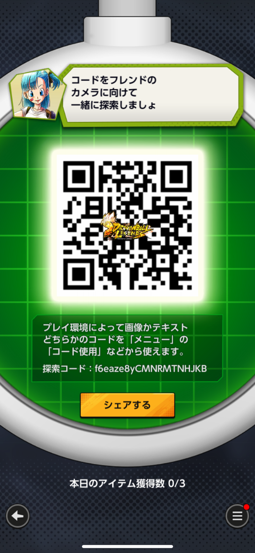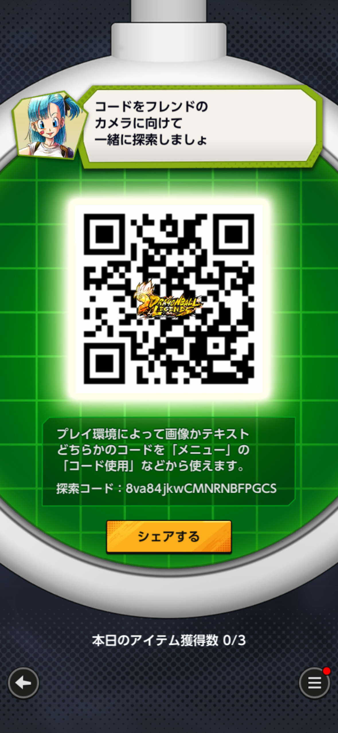 - フレンドのQRコードを読み込む事でドラゴンボールを探索できる