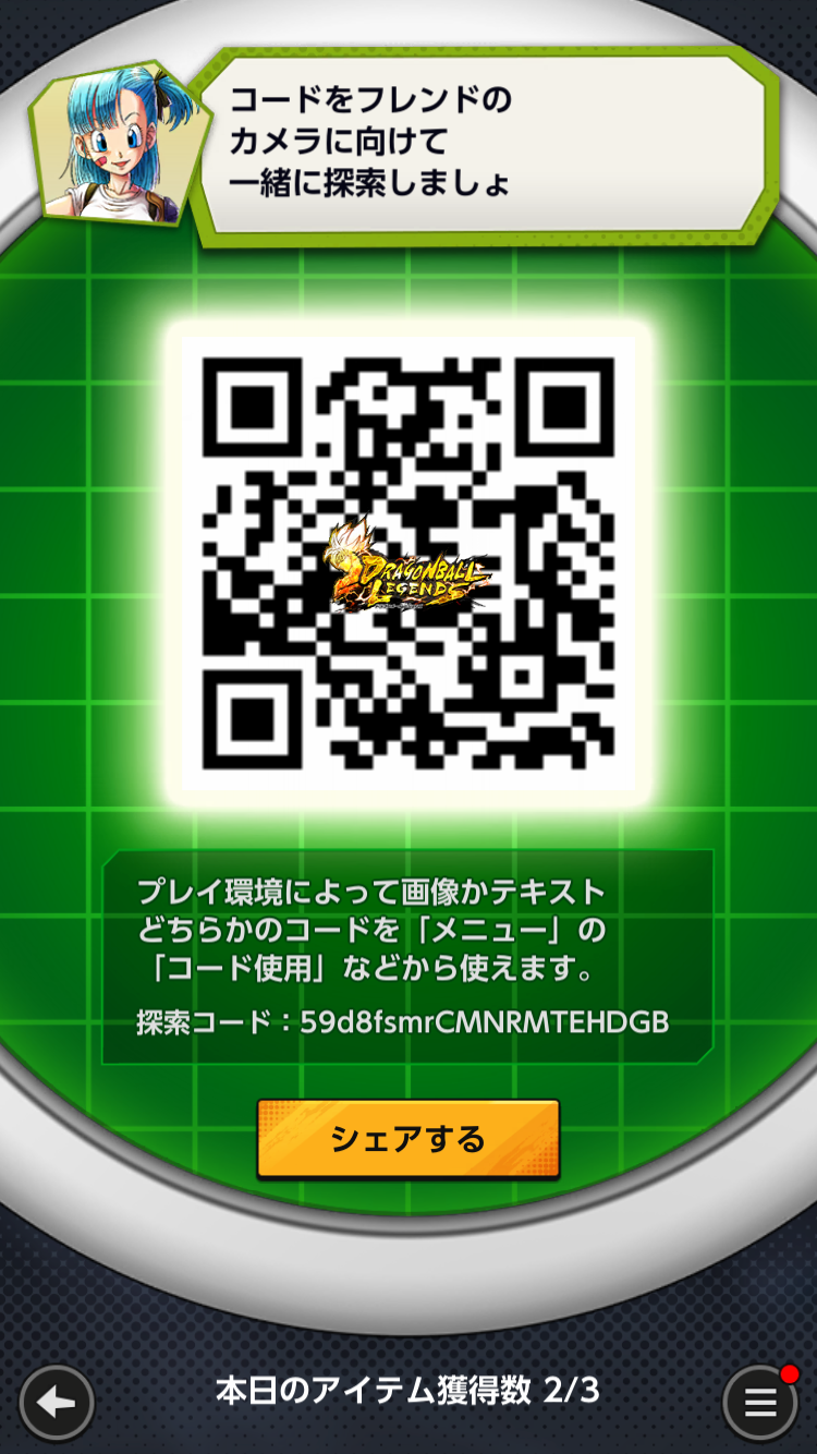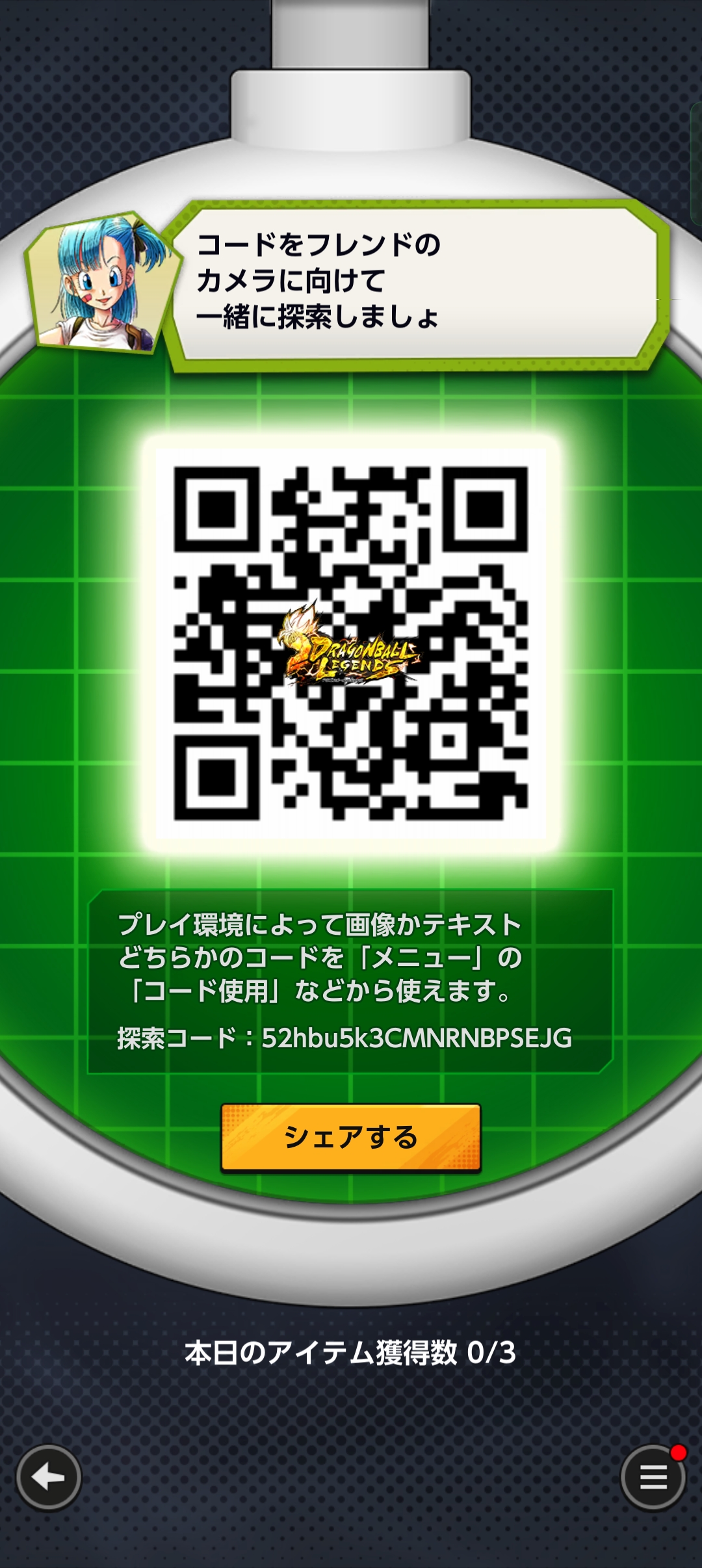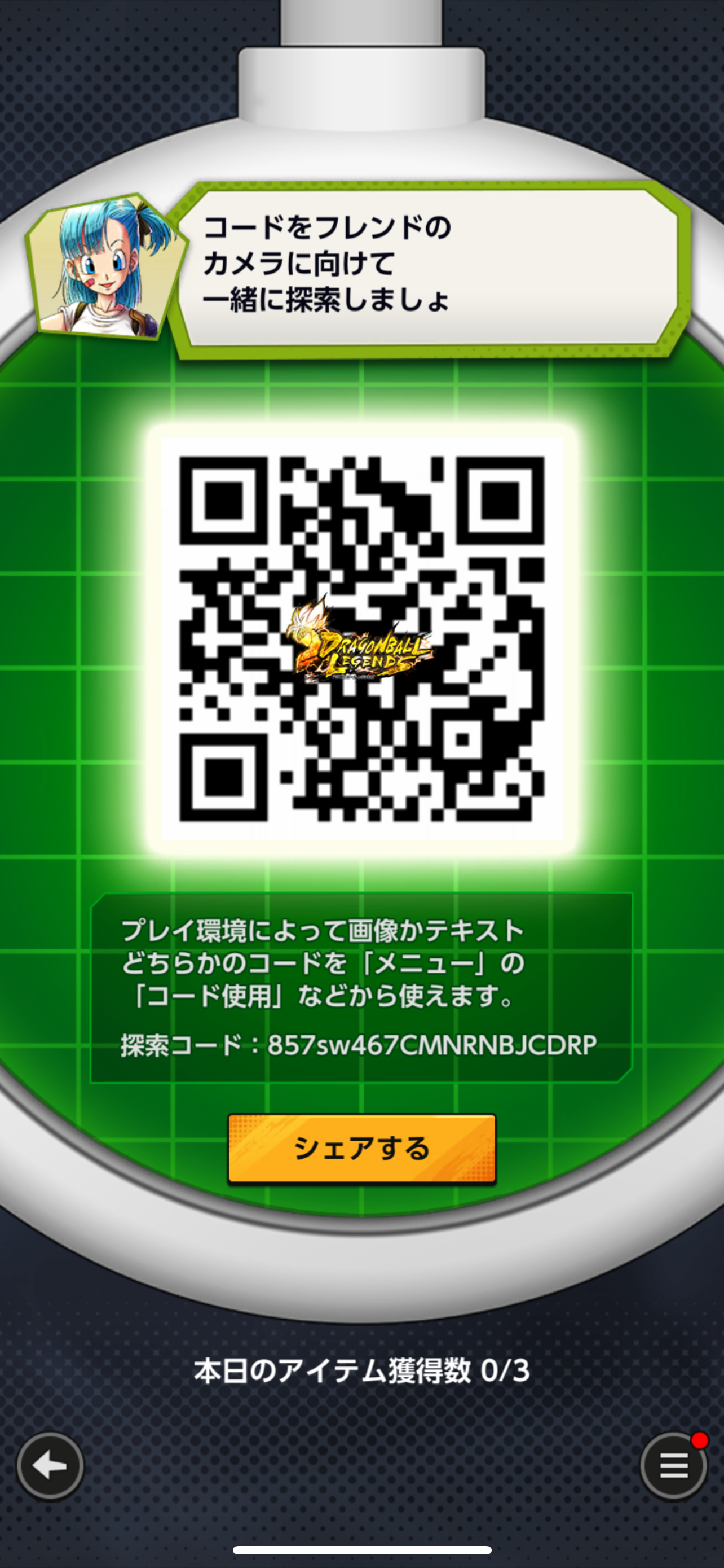 - フレンドのQRコードを読み込む事でドラゴンボールを探索できる