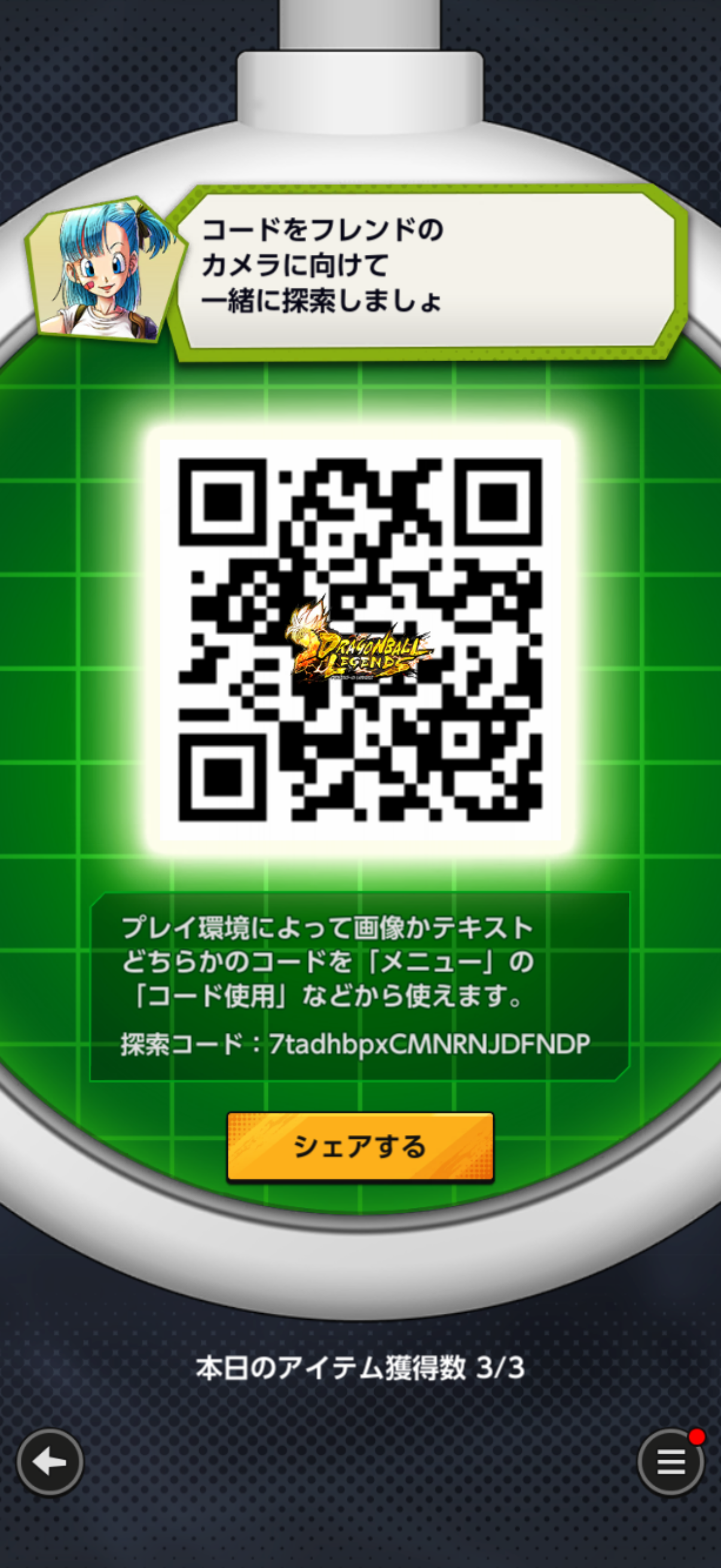- フレンドのQRコードを読み込む事でドラゴンボールを探索できる