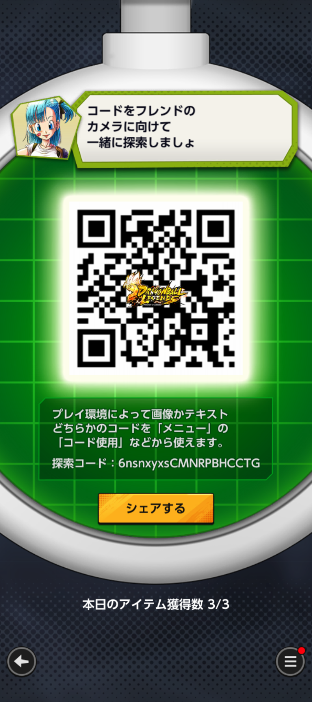 - フレンドのQRコードを読み込む事でドラゴンボールを探索できる