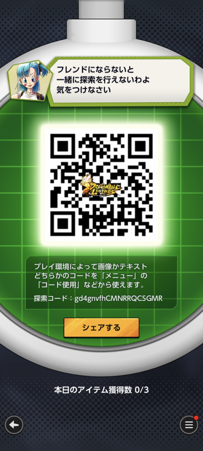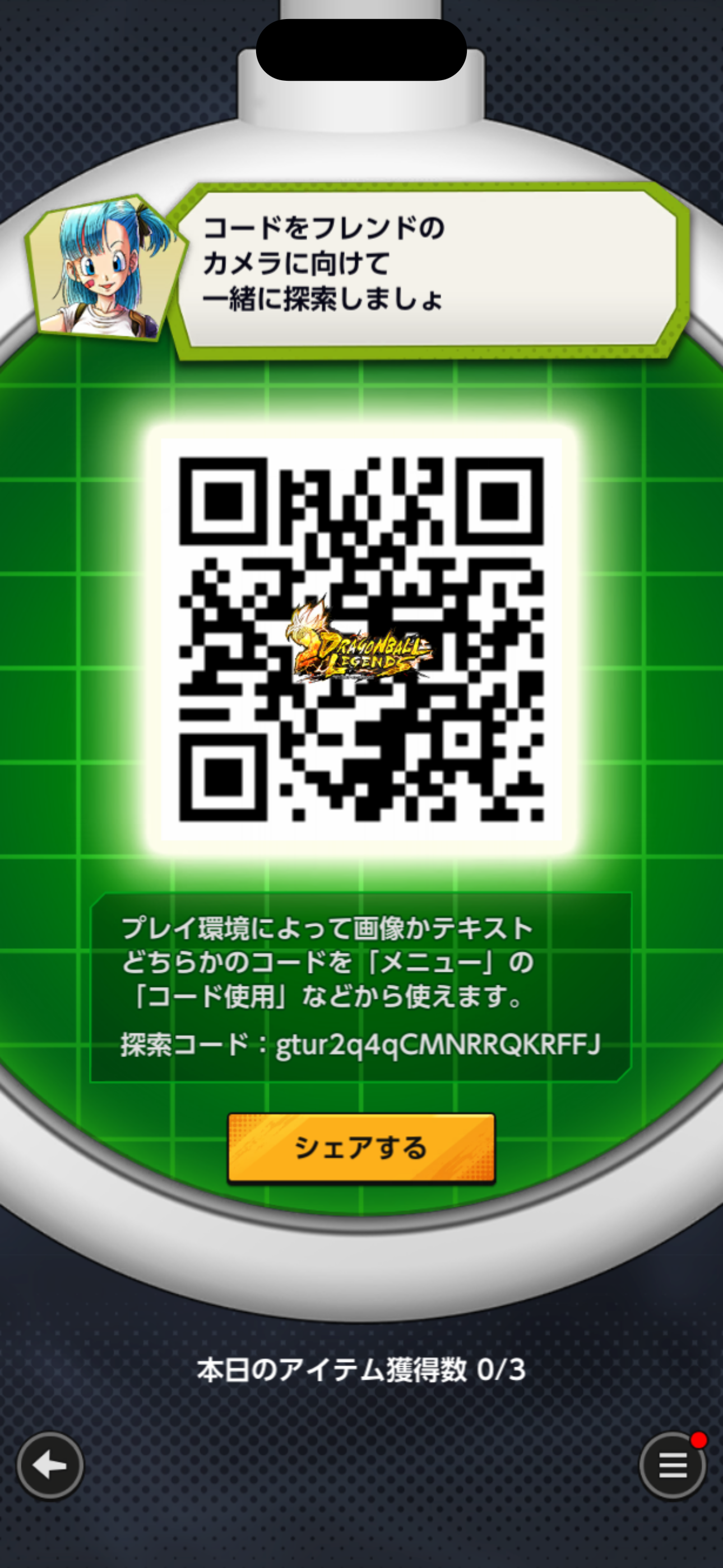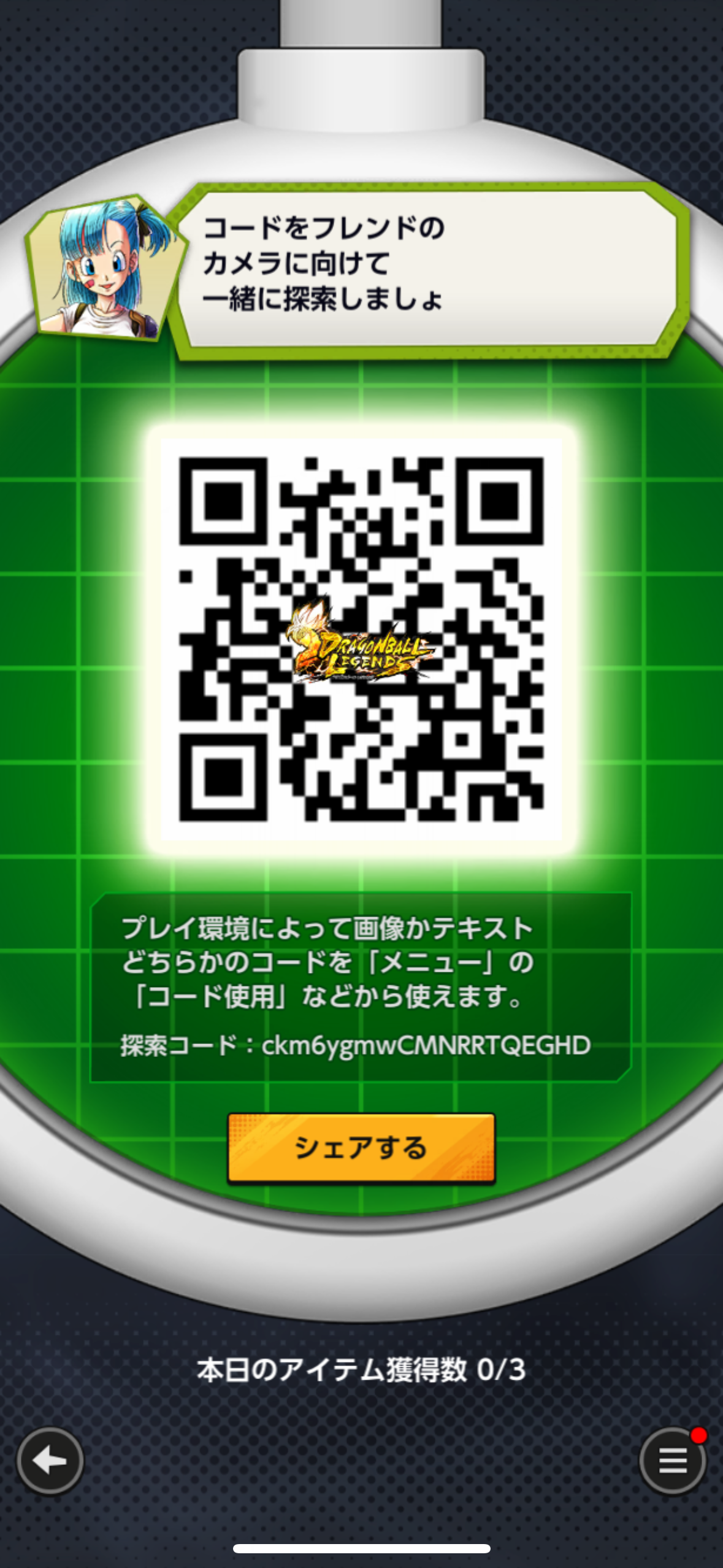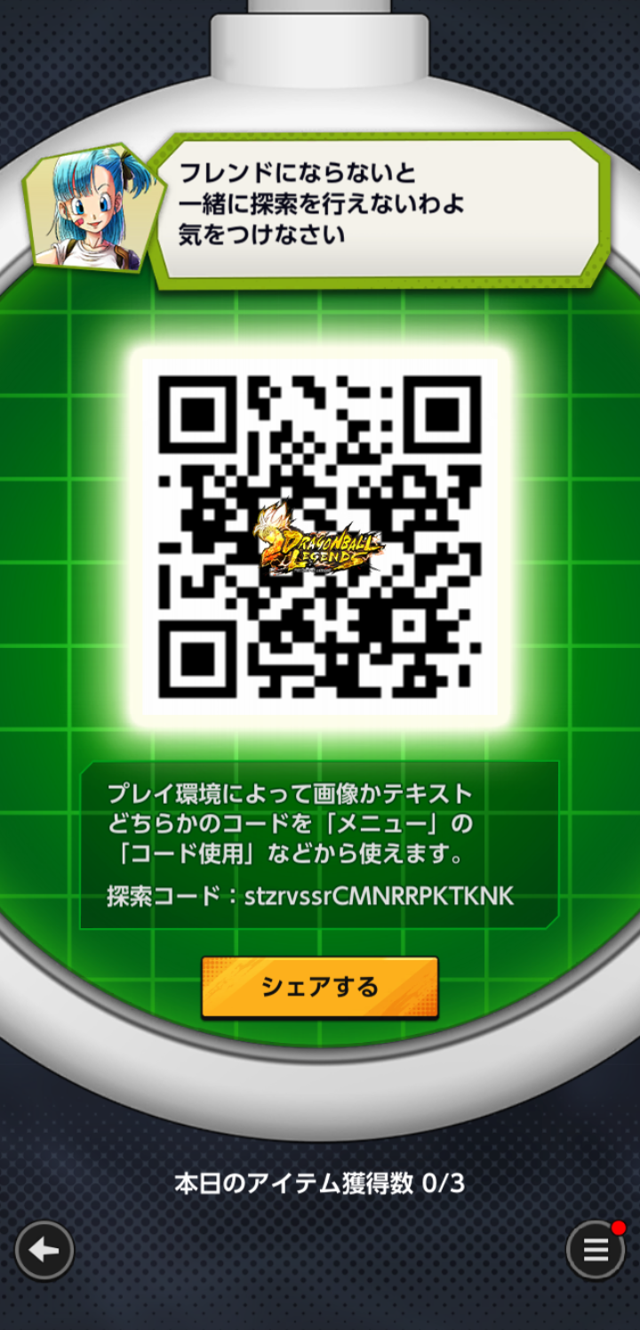 - フレンドのQRコードを読み込む事でドラゴンボールを探索できる