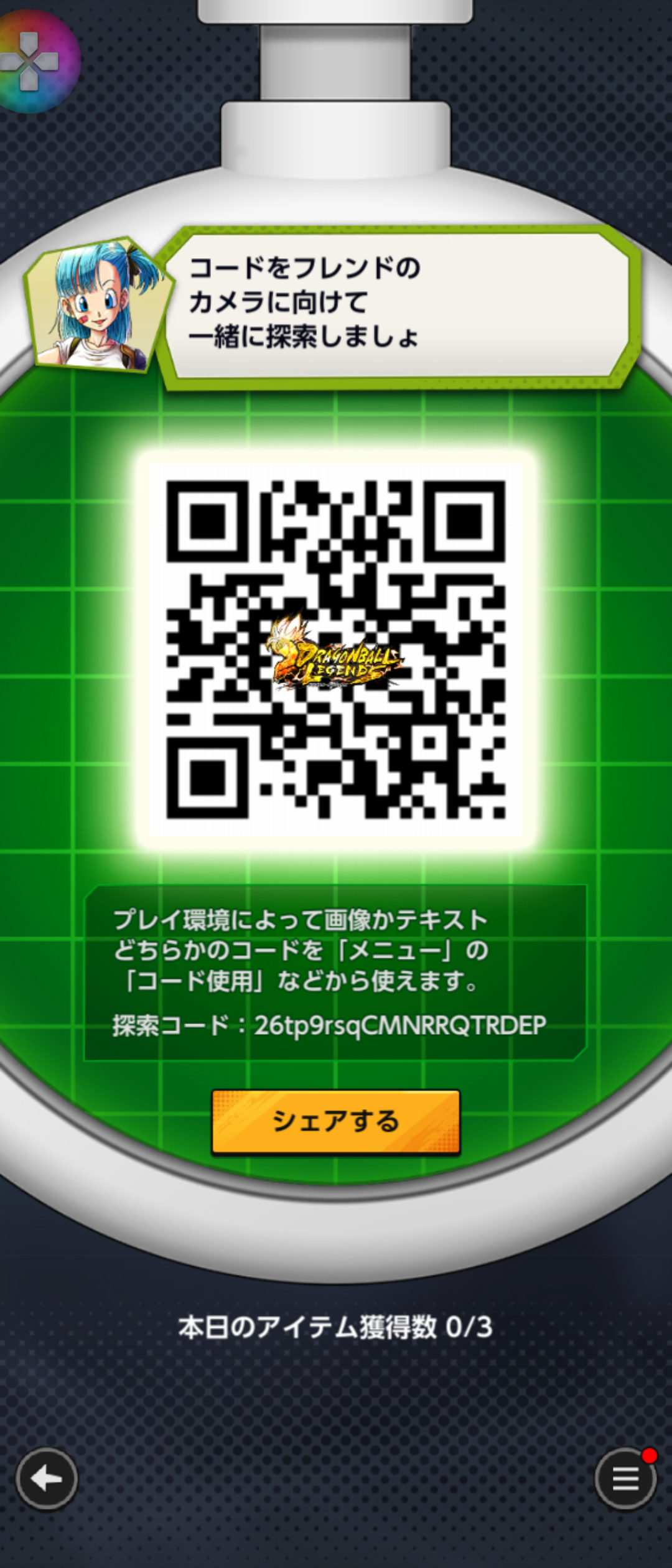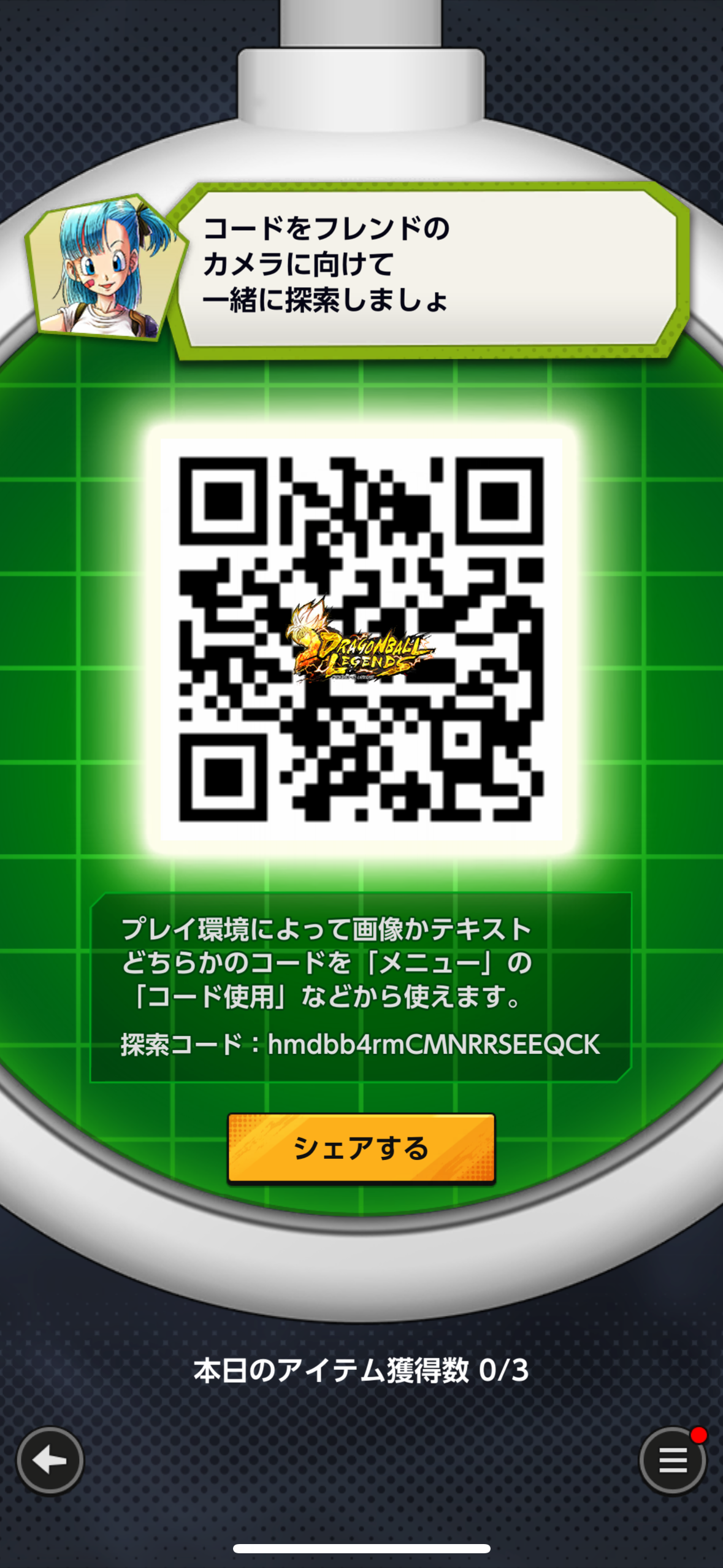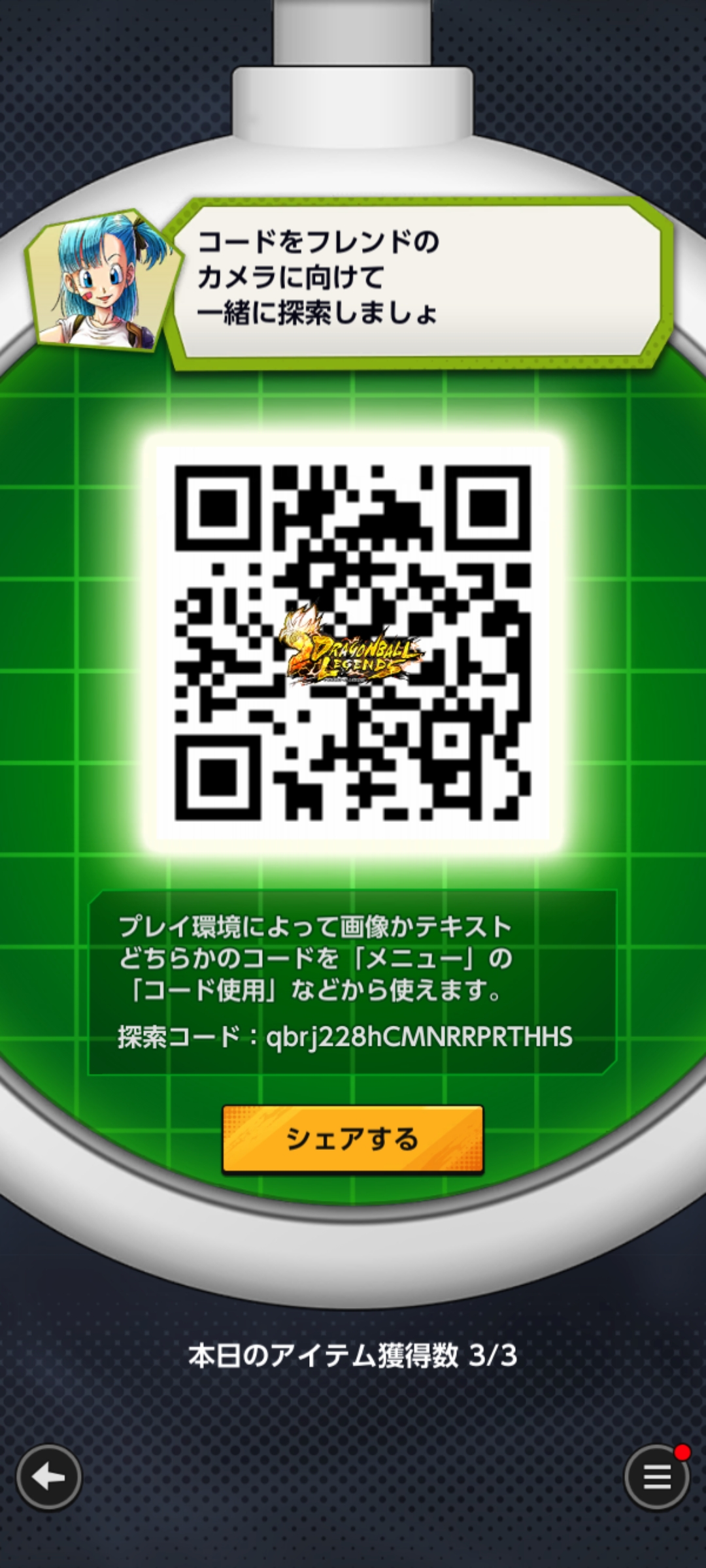 - フレンドのQRコードを読み込む事でドラゴンボールを探索できる