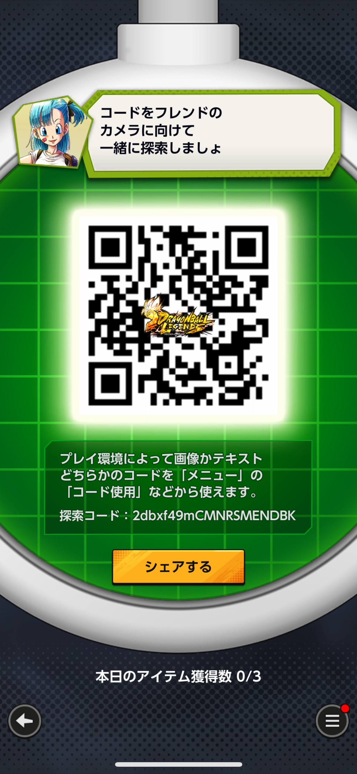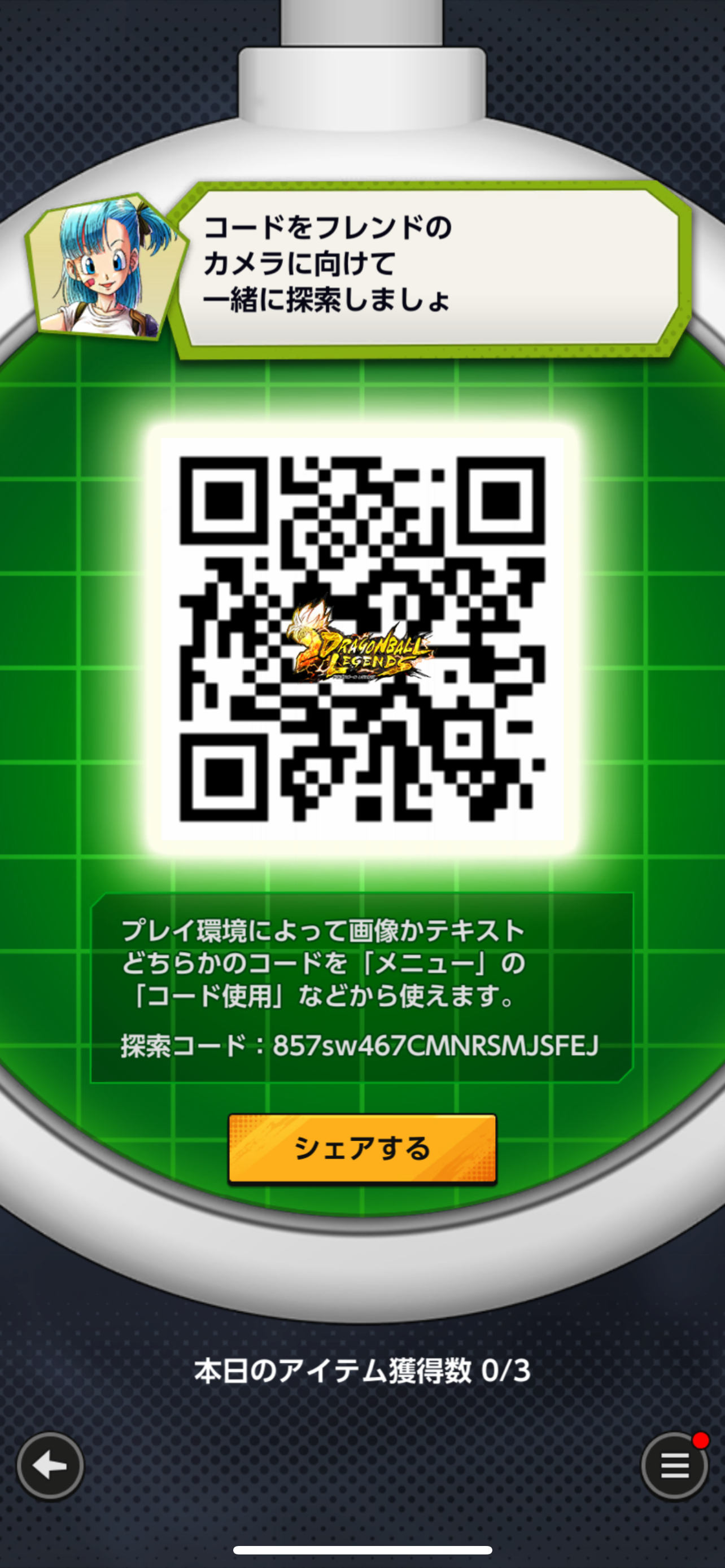- フレンドのQRコードを読み込む事でドラゴンボールを探索できる
