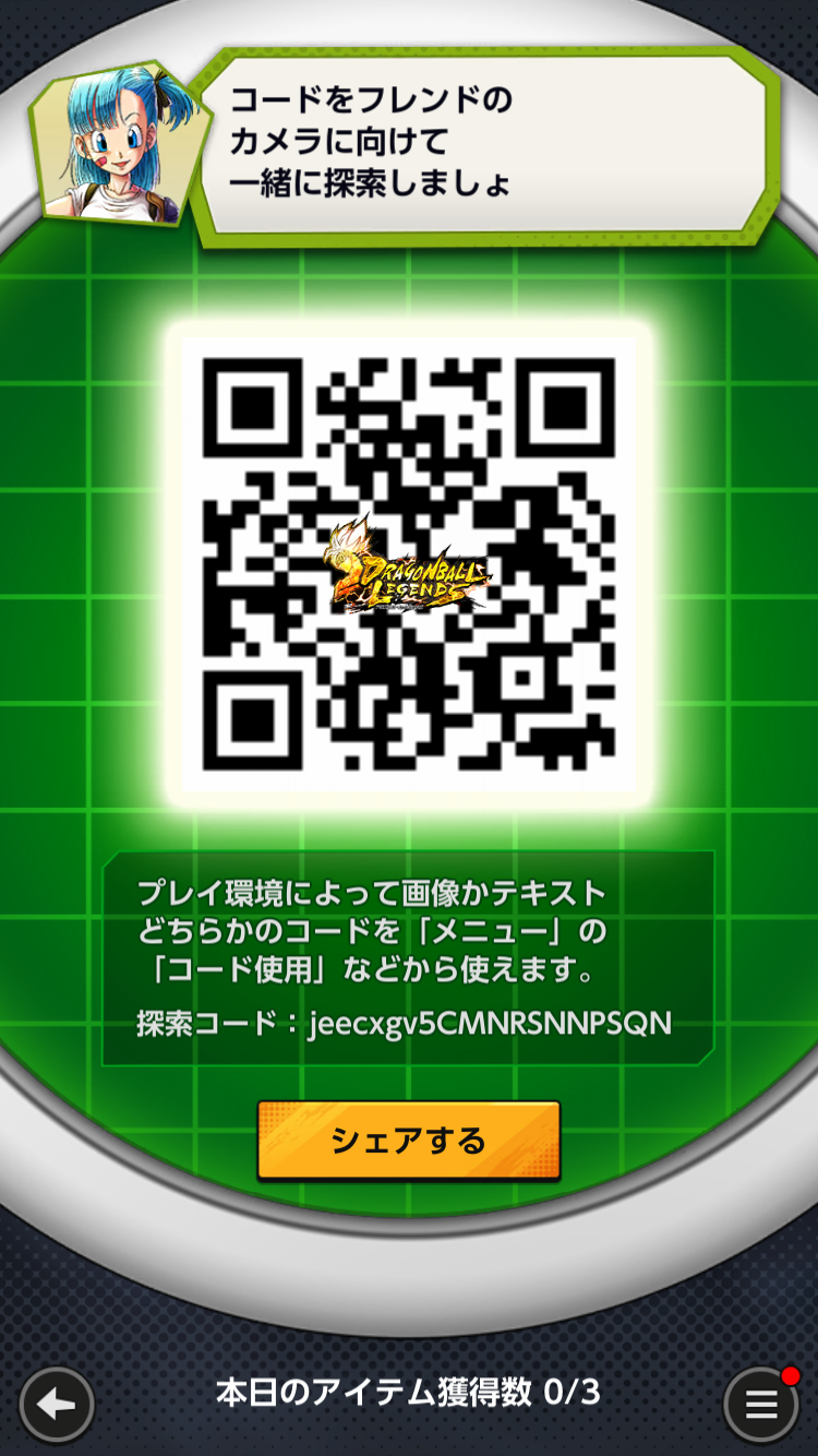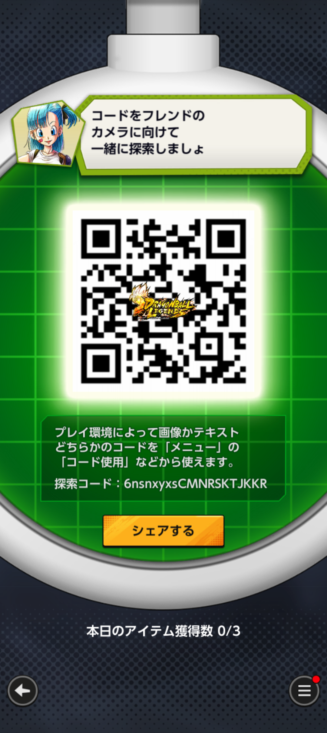 - フレンドのQRコードを読み込む事でドラゴンボールを探索できる