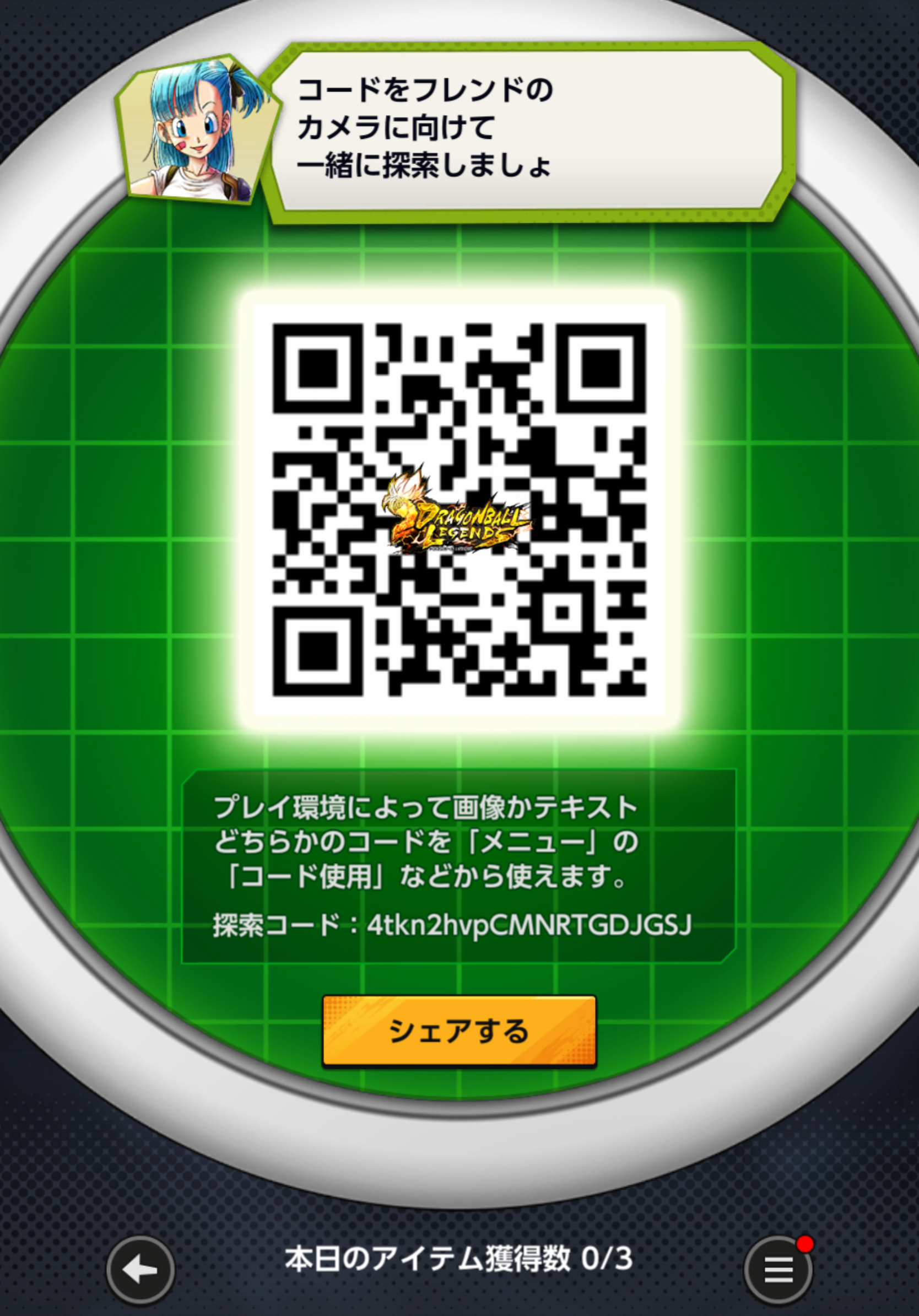 - フレンドのQRコードを読み込む事でドラゴンボールを探索できる