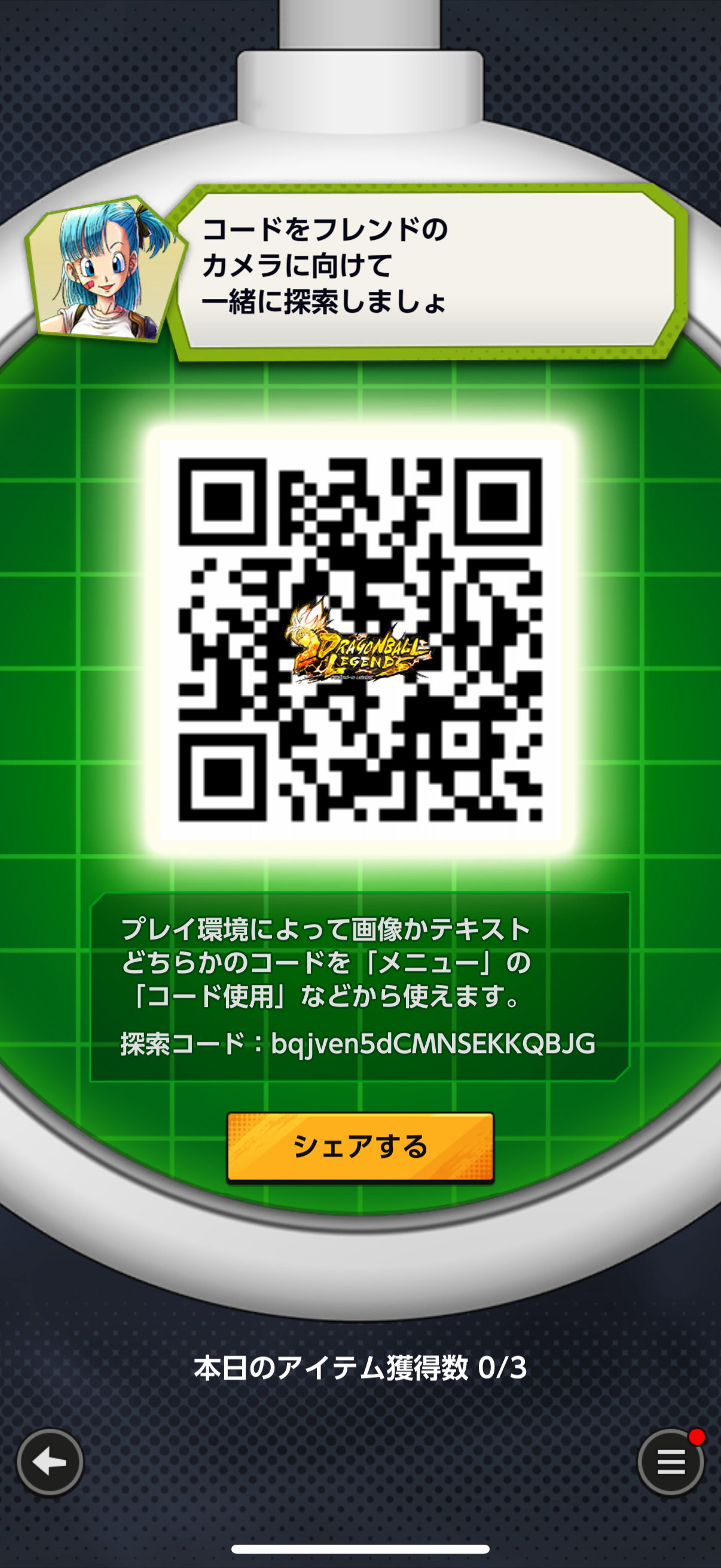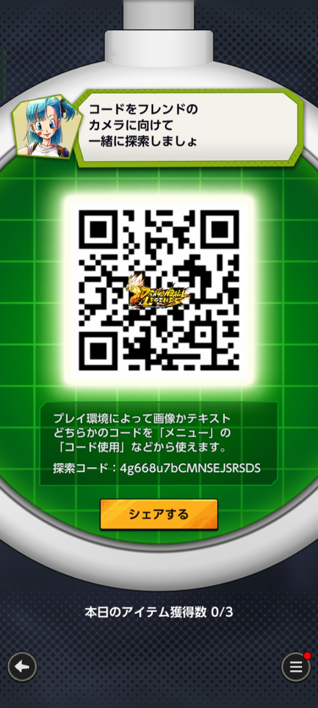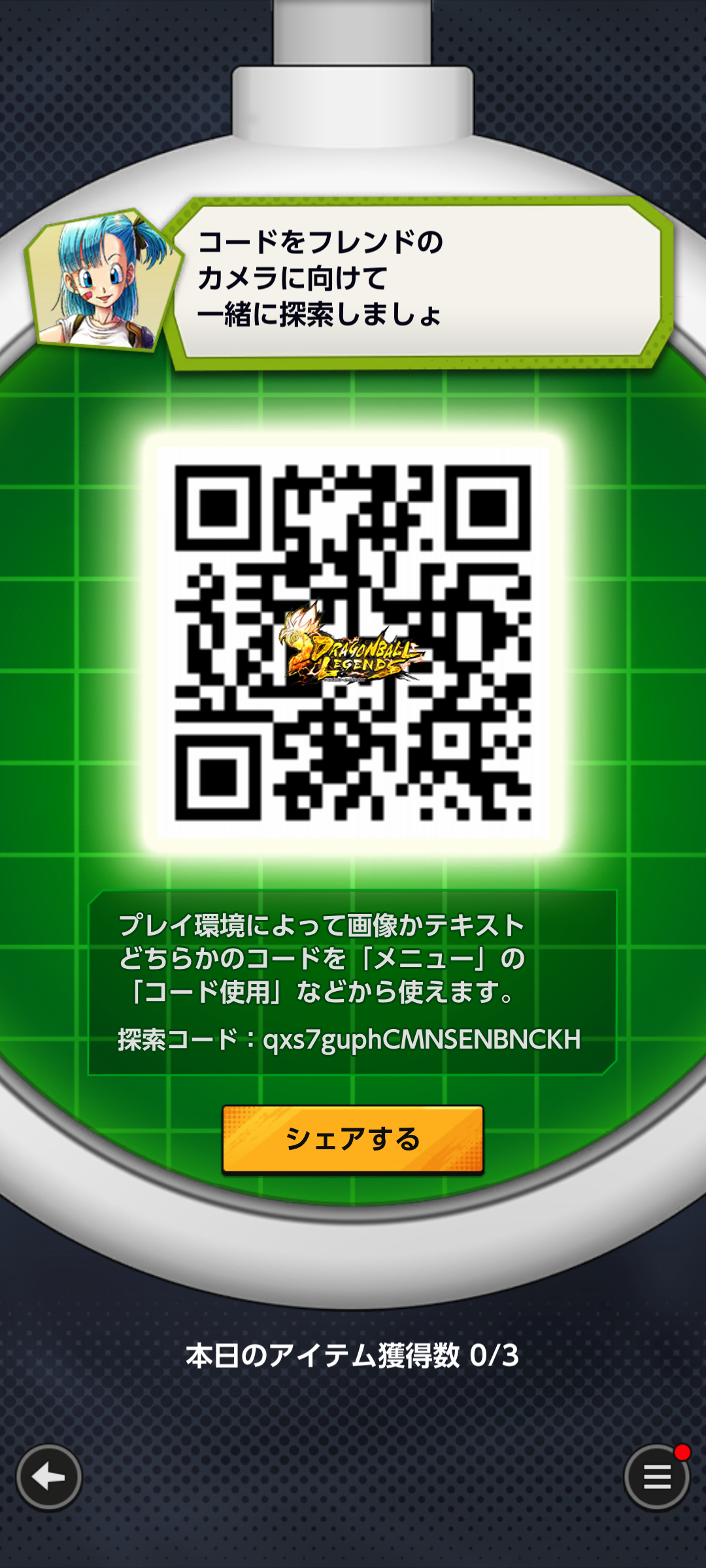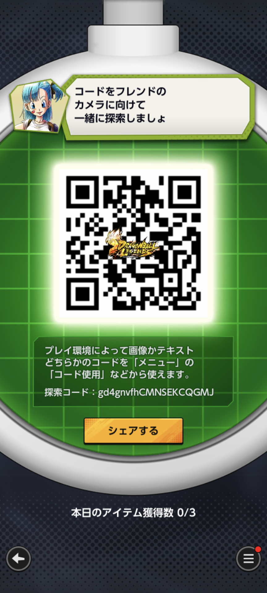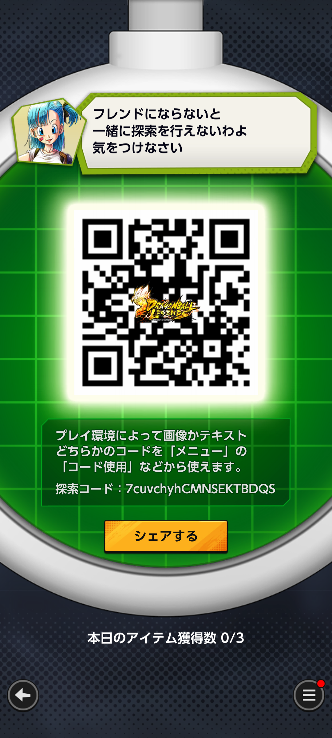 - フレンドのQRコードを読み込む事でドラゴンボールを探索できる