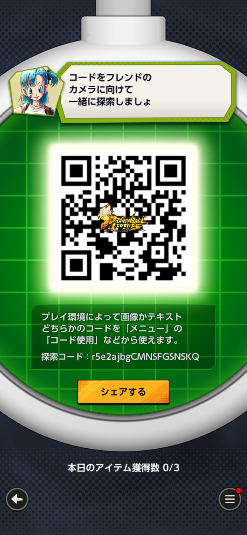 - フレンドのQRコードを読み込む事でドラゴンボールを探索できる