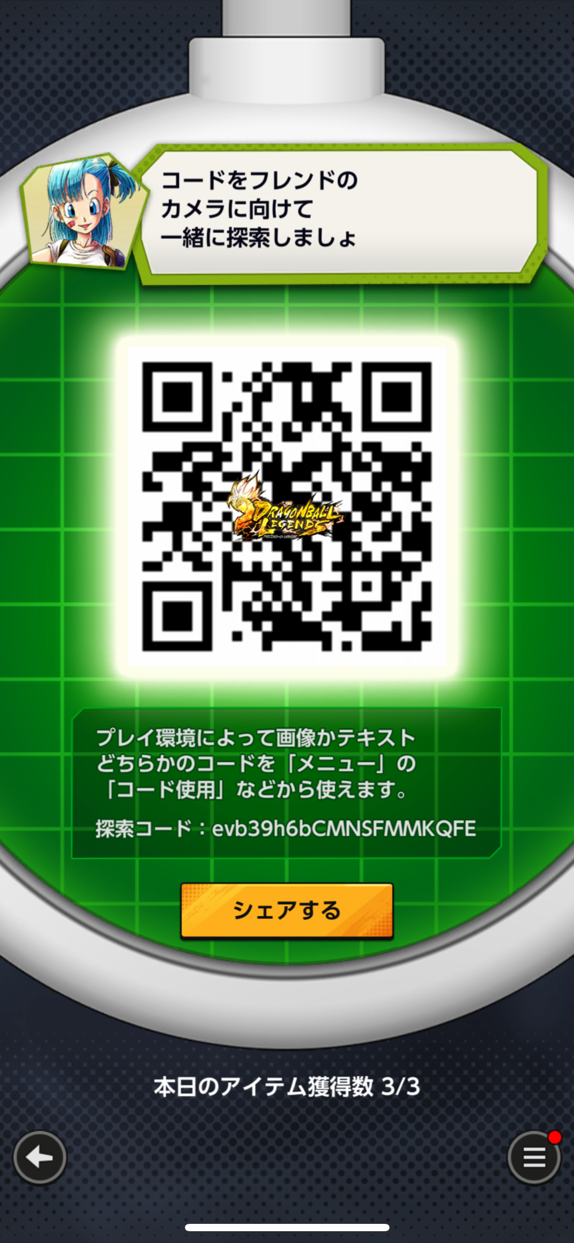 • フレンドのQRコードを読み込む事でドラゴンボールを探索できる
