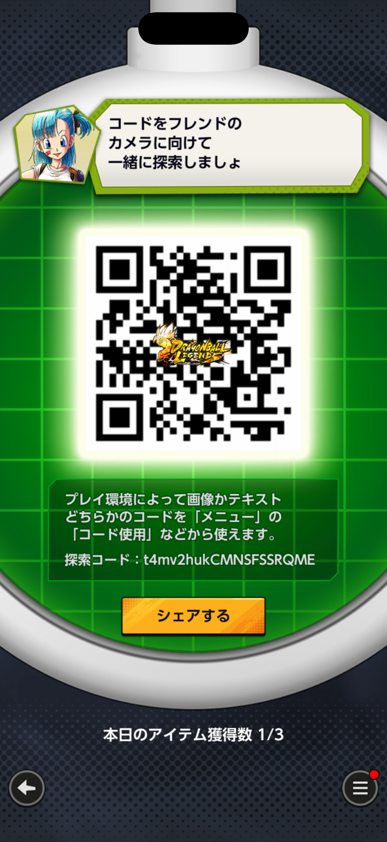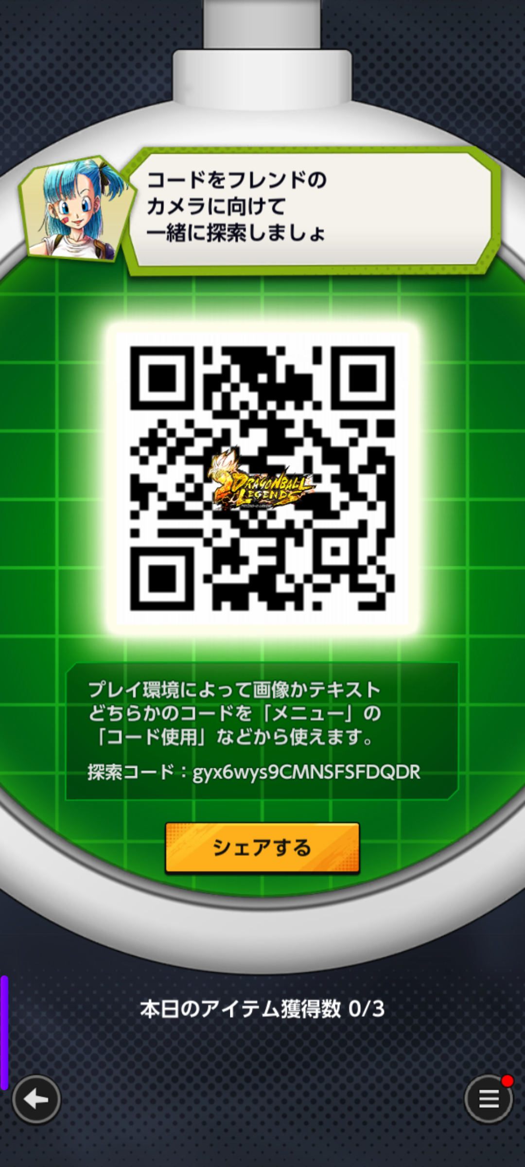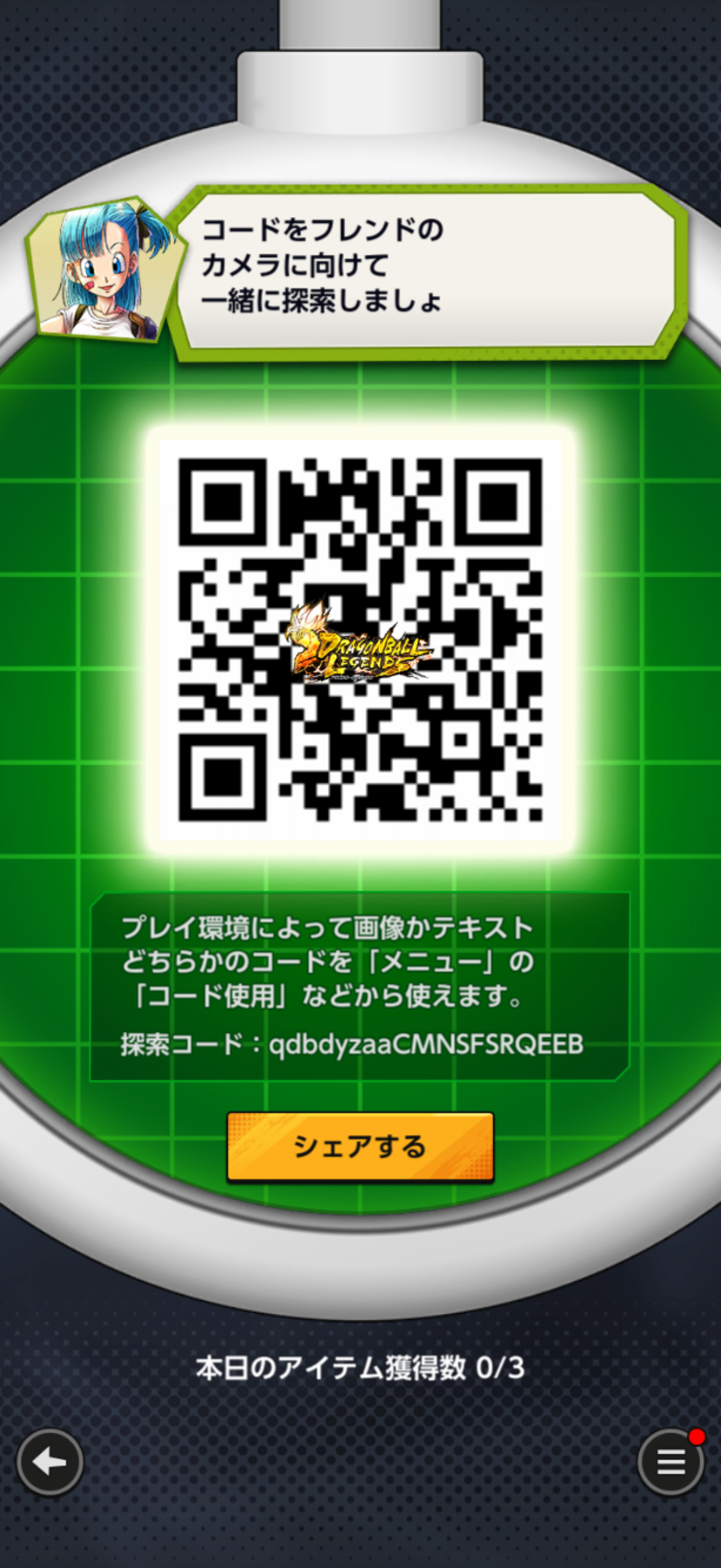 - フレンドのQRコードを読み込む事でドラゴンボールを探索できる