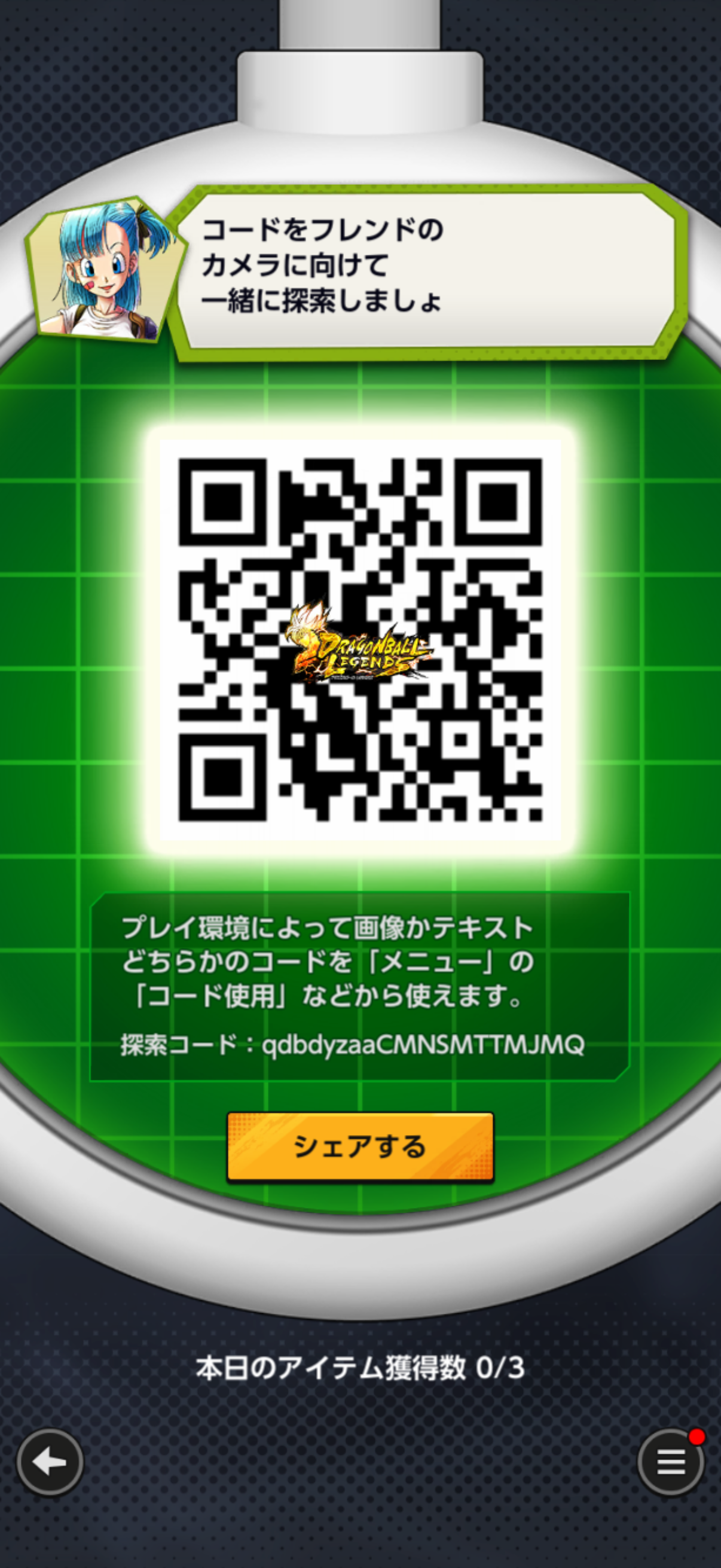 - フレンドのQRコードを読み込む事でドラゴンボールを探索できる
