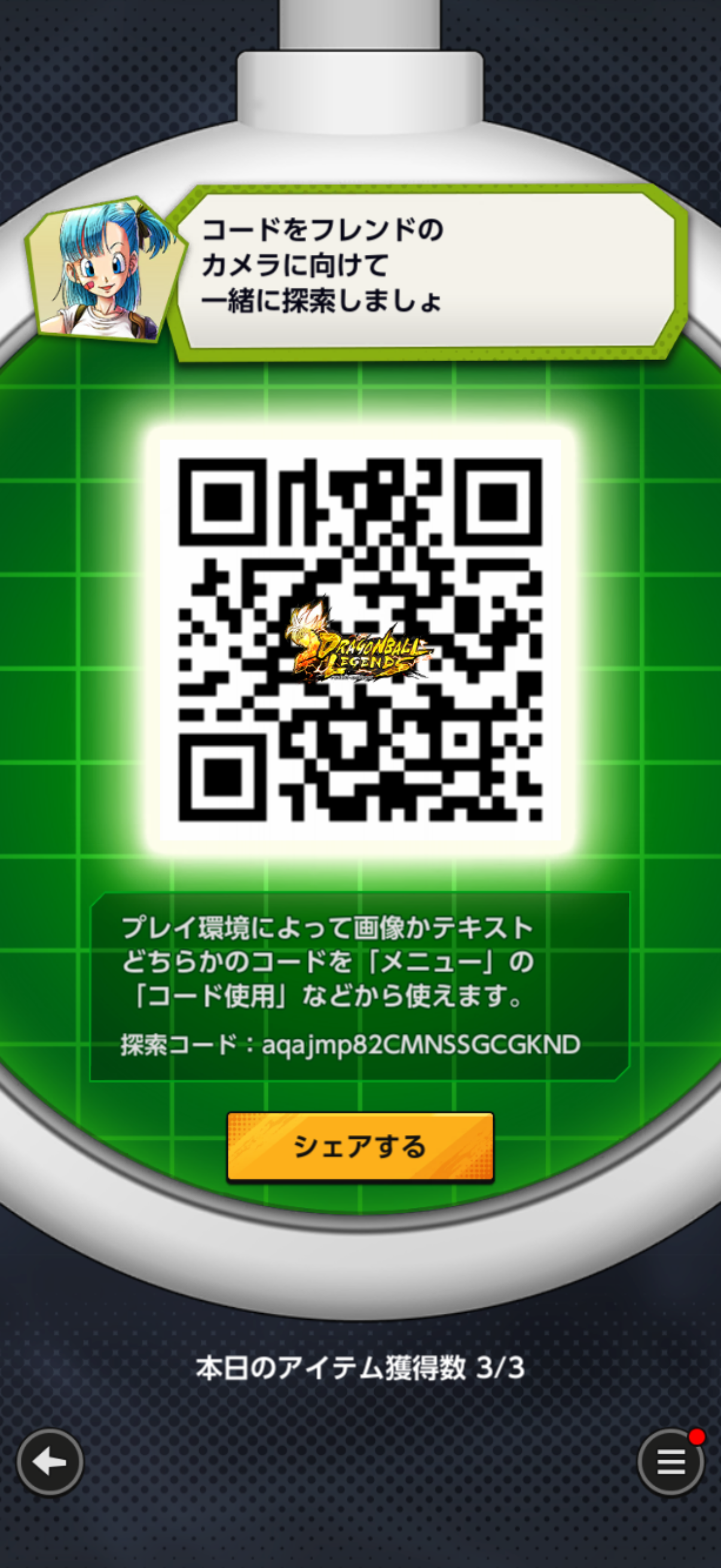 • フレンドのQRコードを読み込む事でドラゴンボールを探索できる