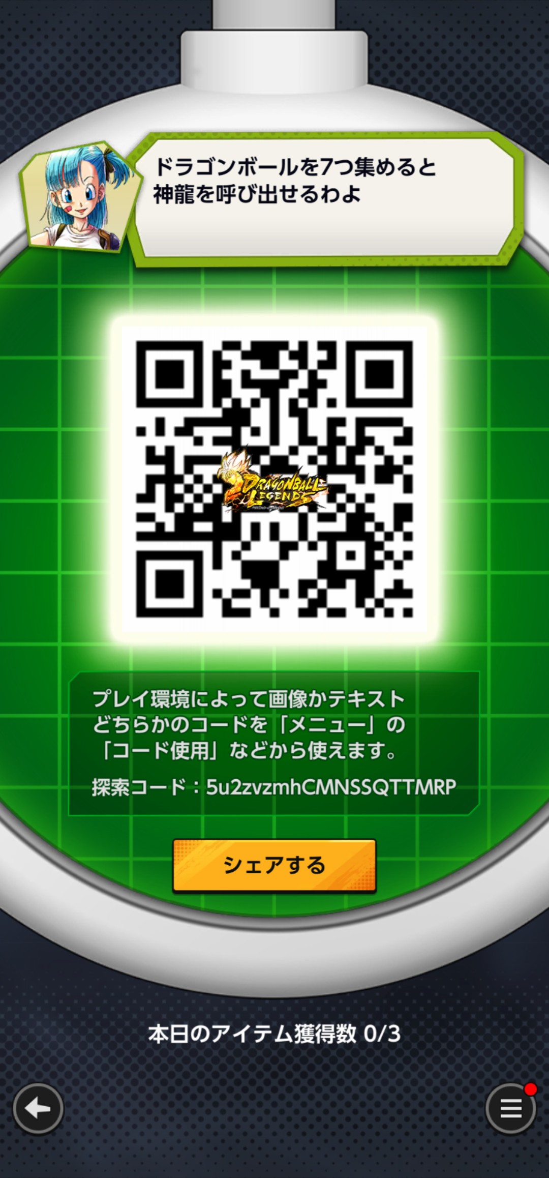 - フレンドのQRコードを読み込む事でドラゴンボールを探索できる