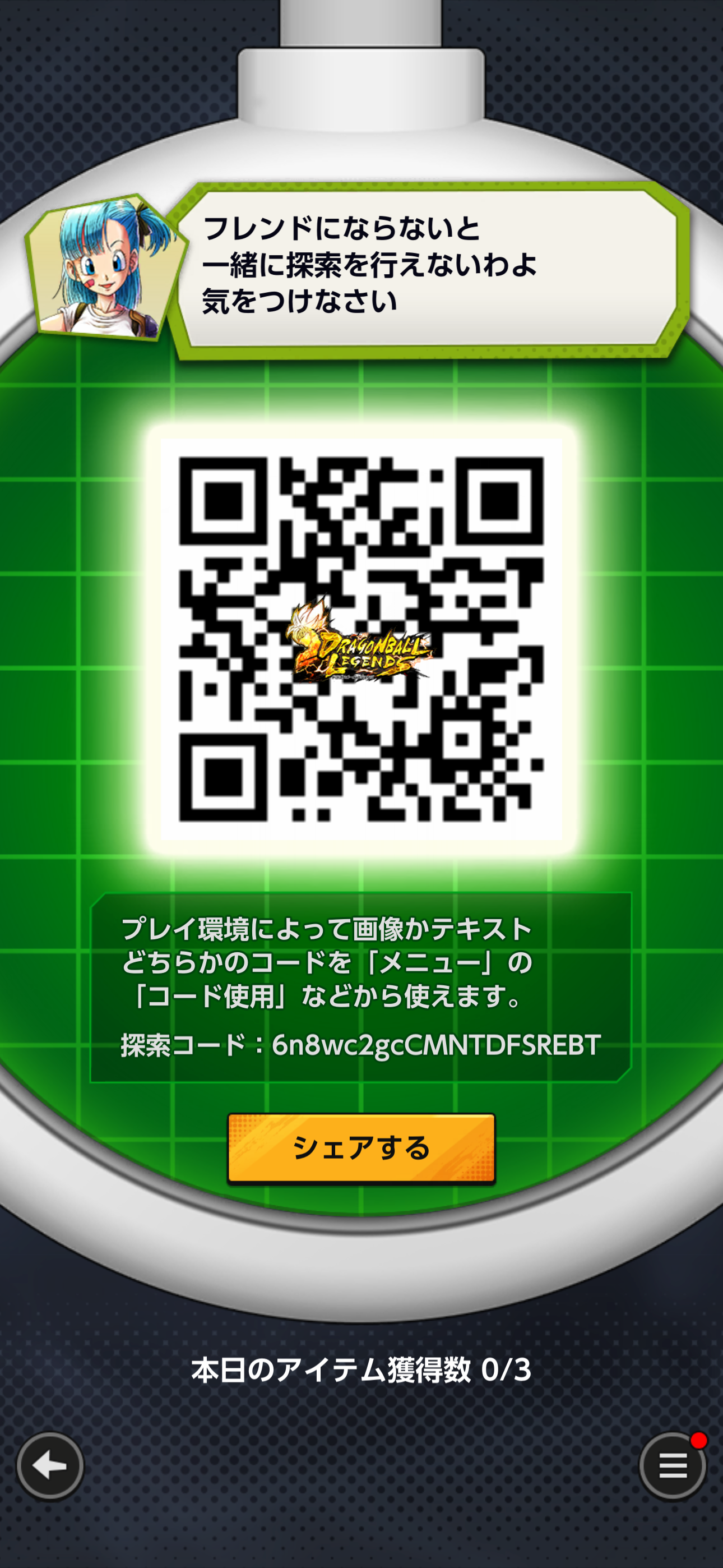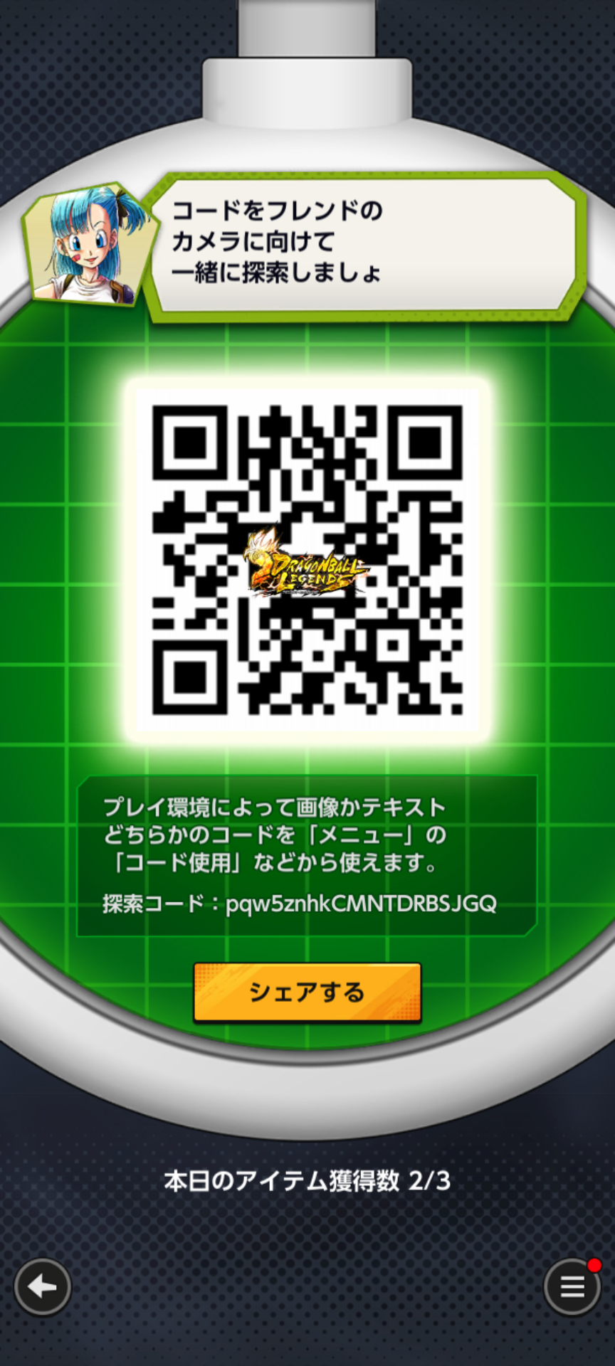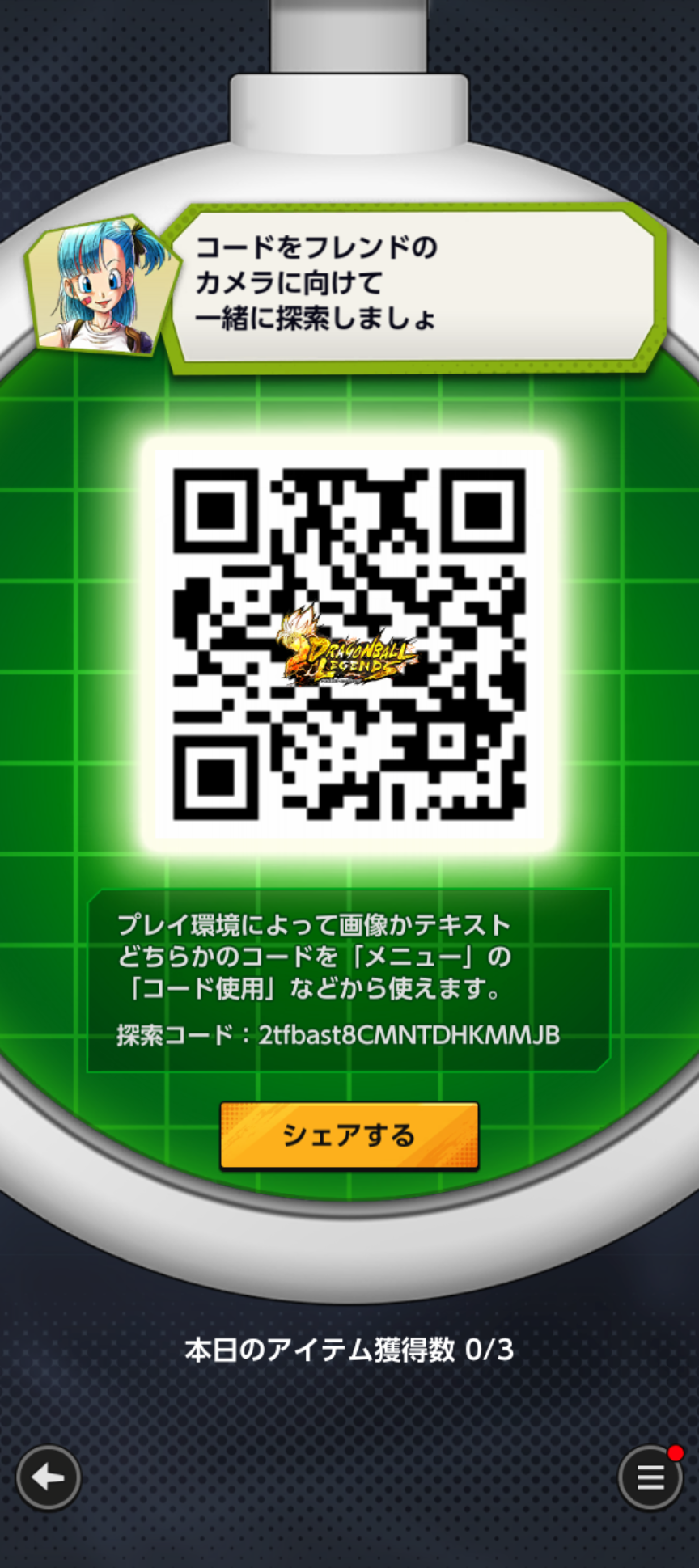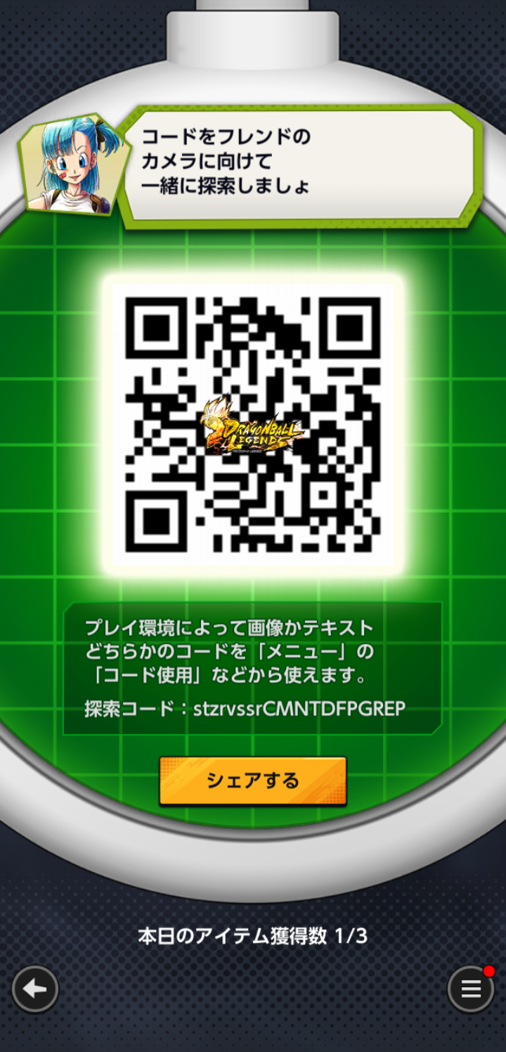 - フレンドのQRコードを読み込む事でドラゴンボールを探索できる