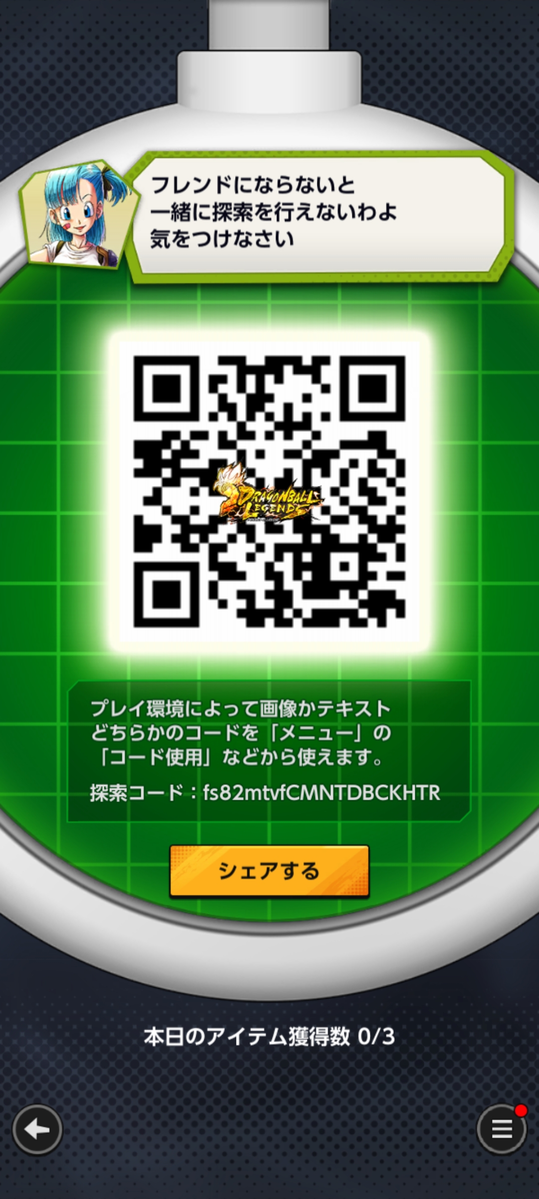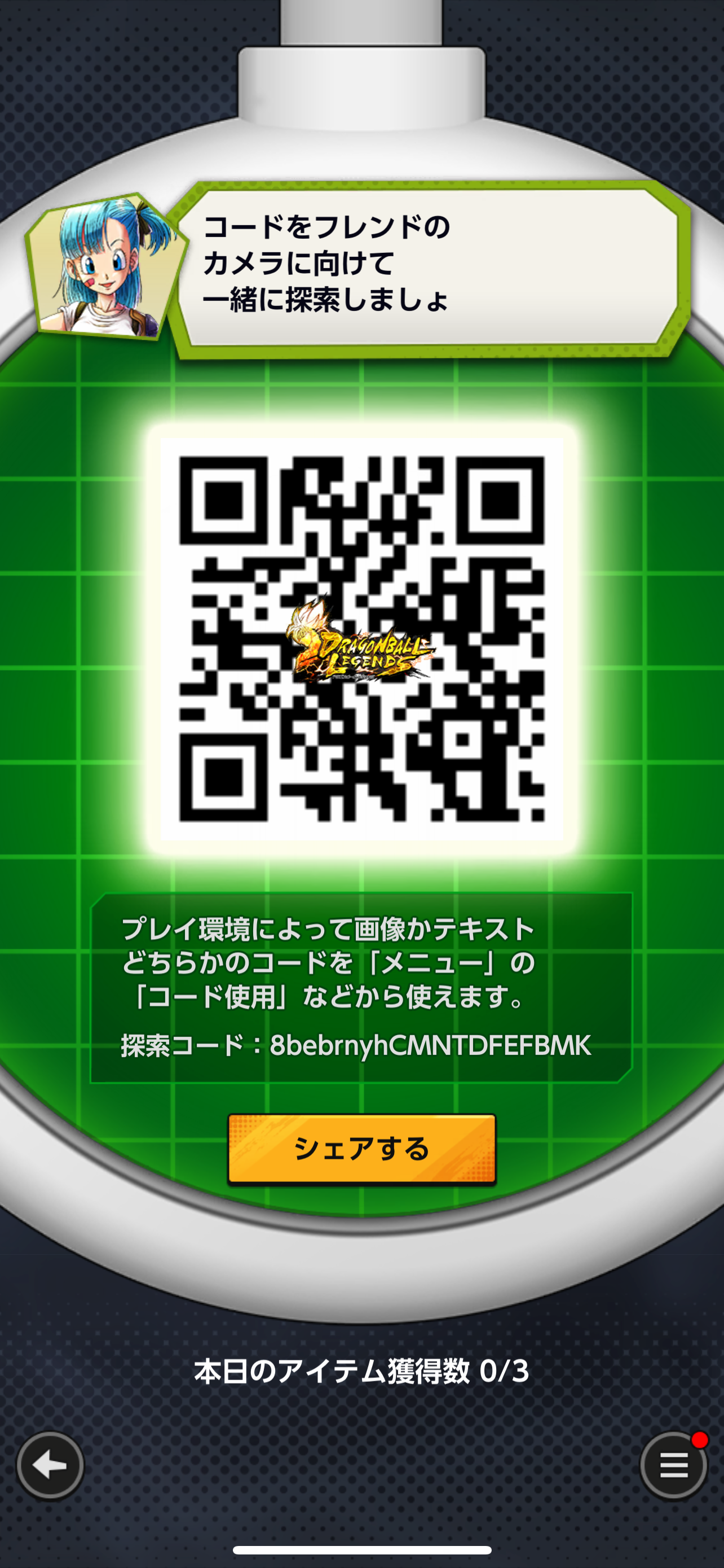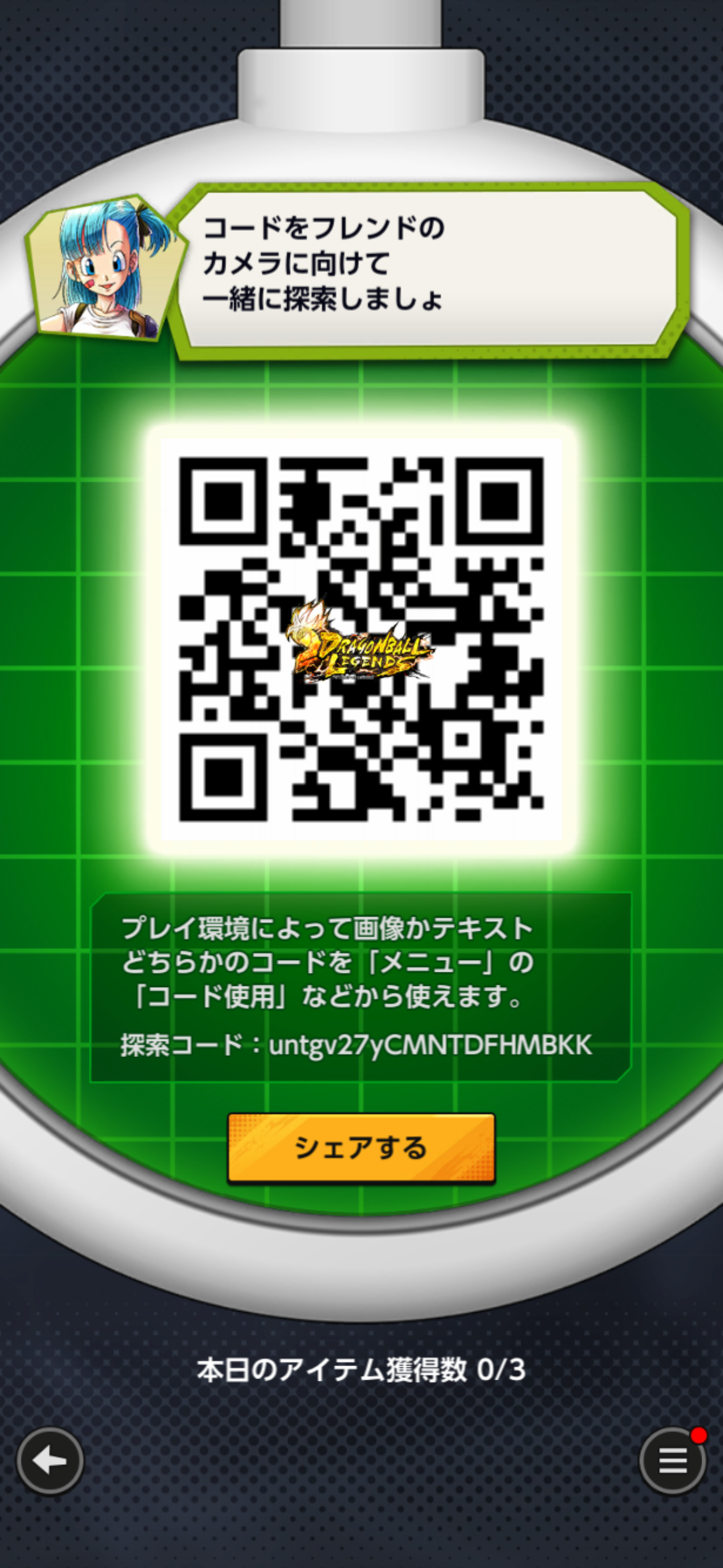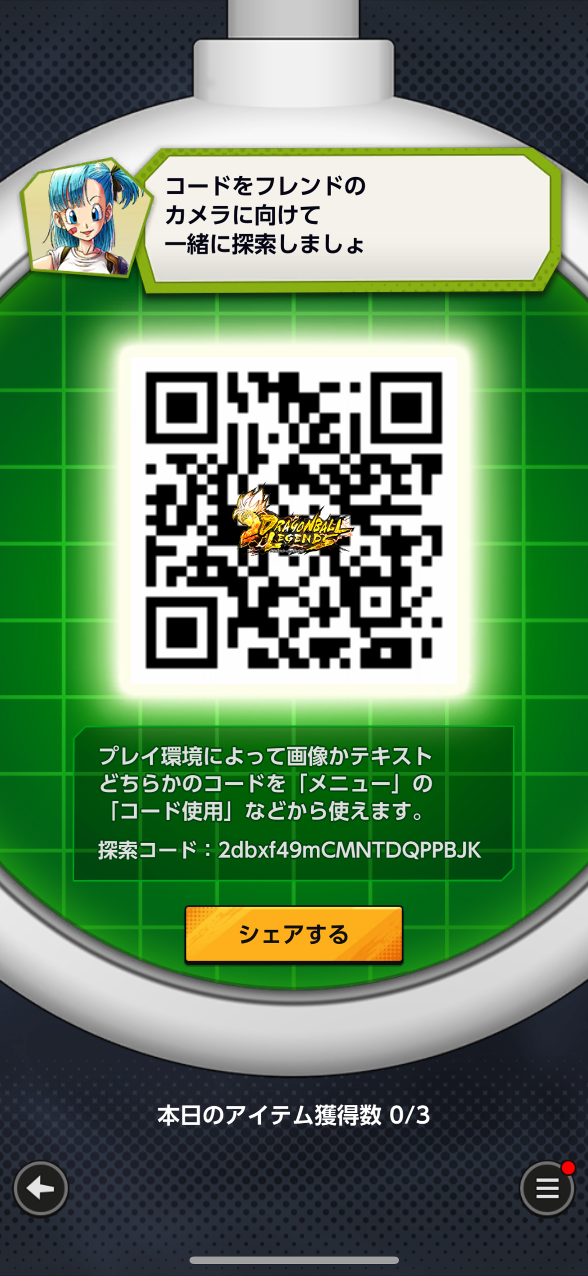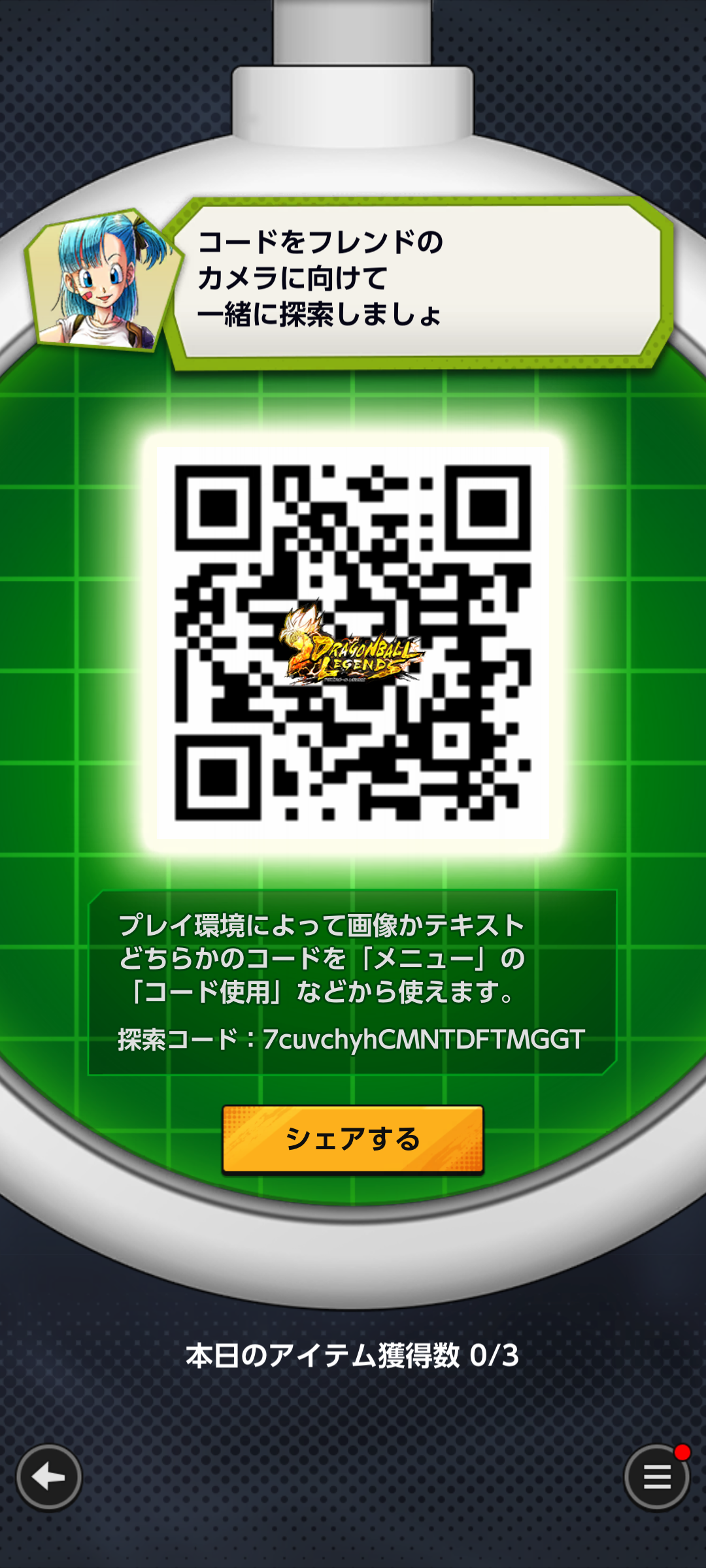 - フレンドのQRコードを読み込む事でドラゴンボールを探索できる