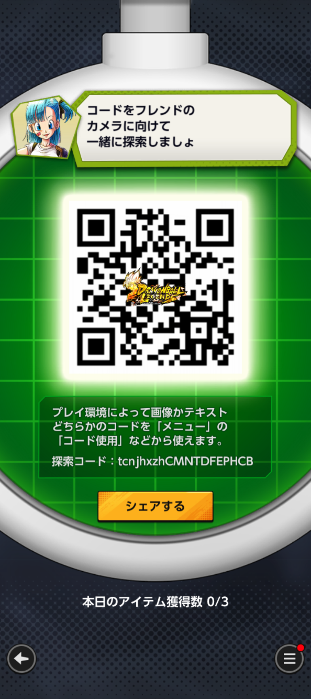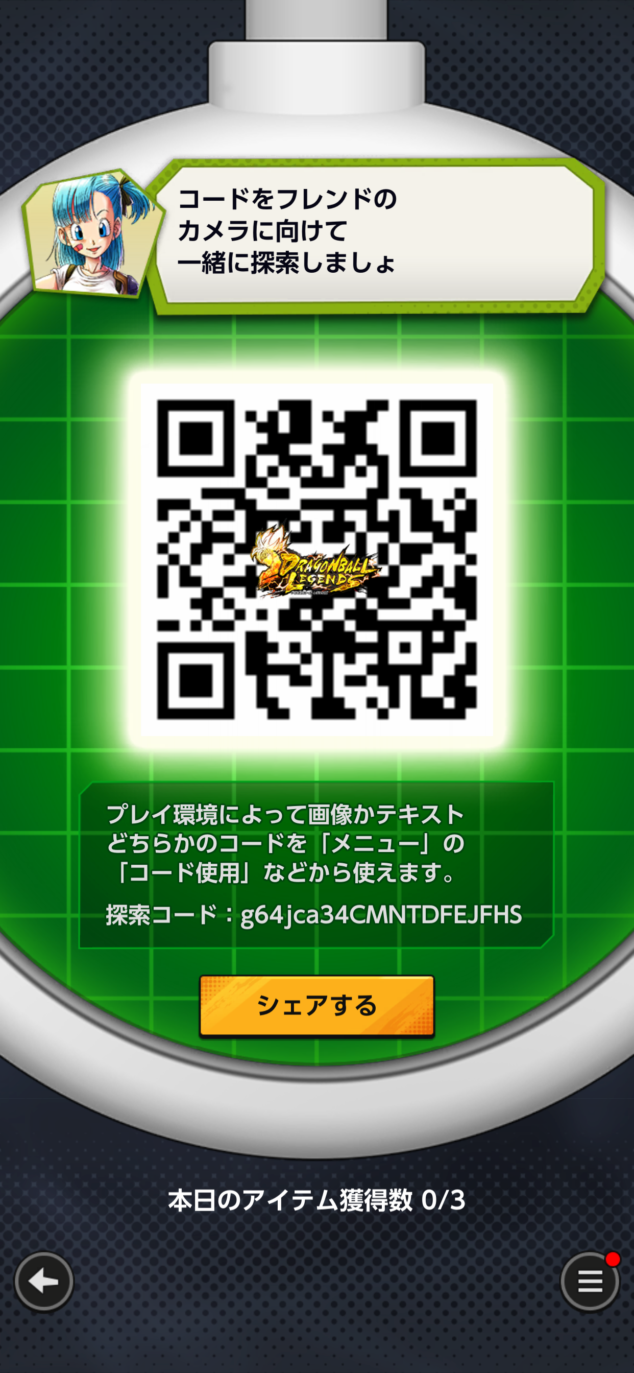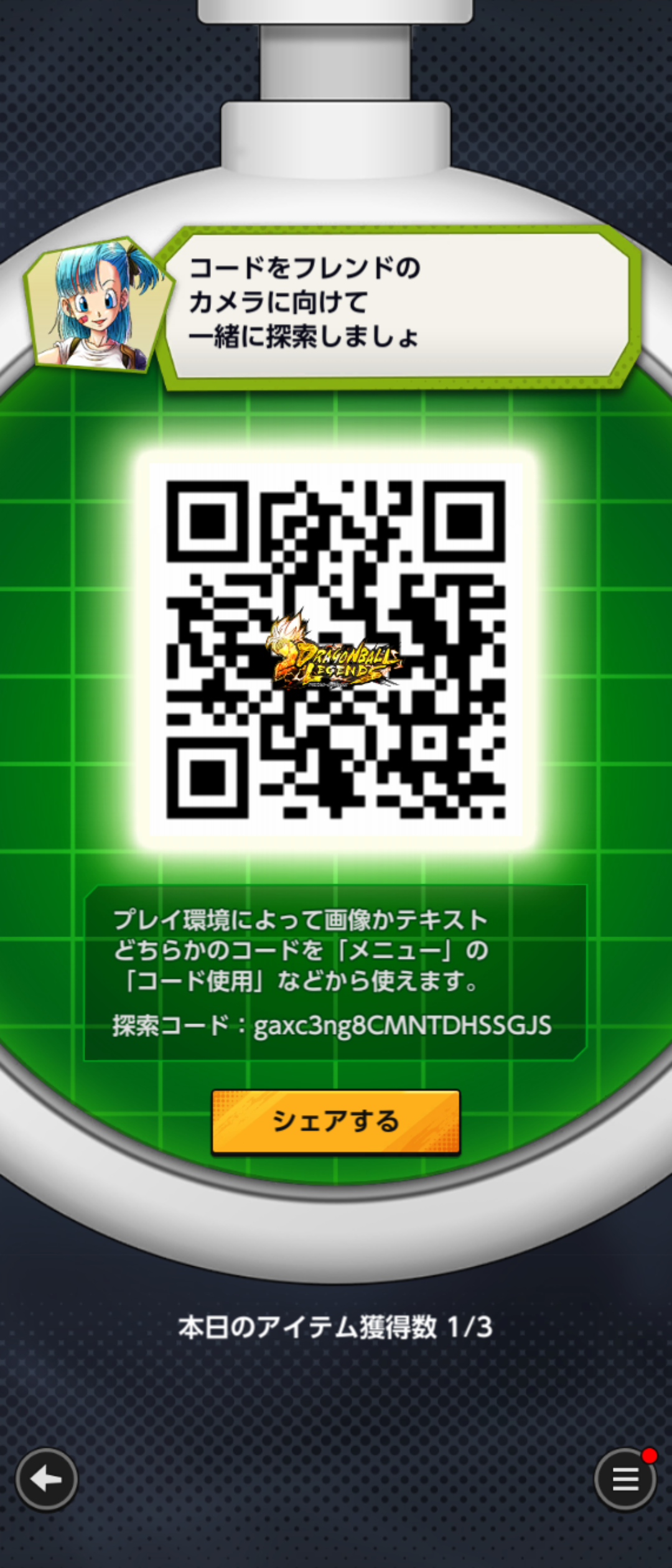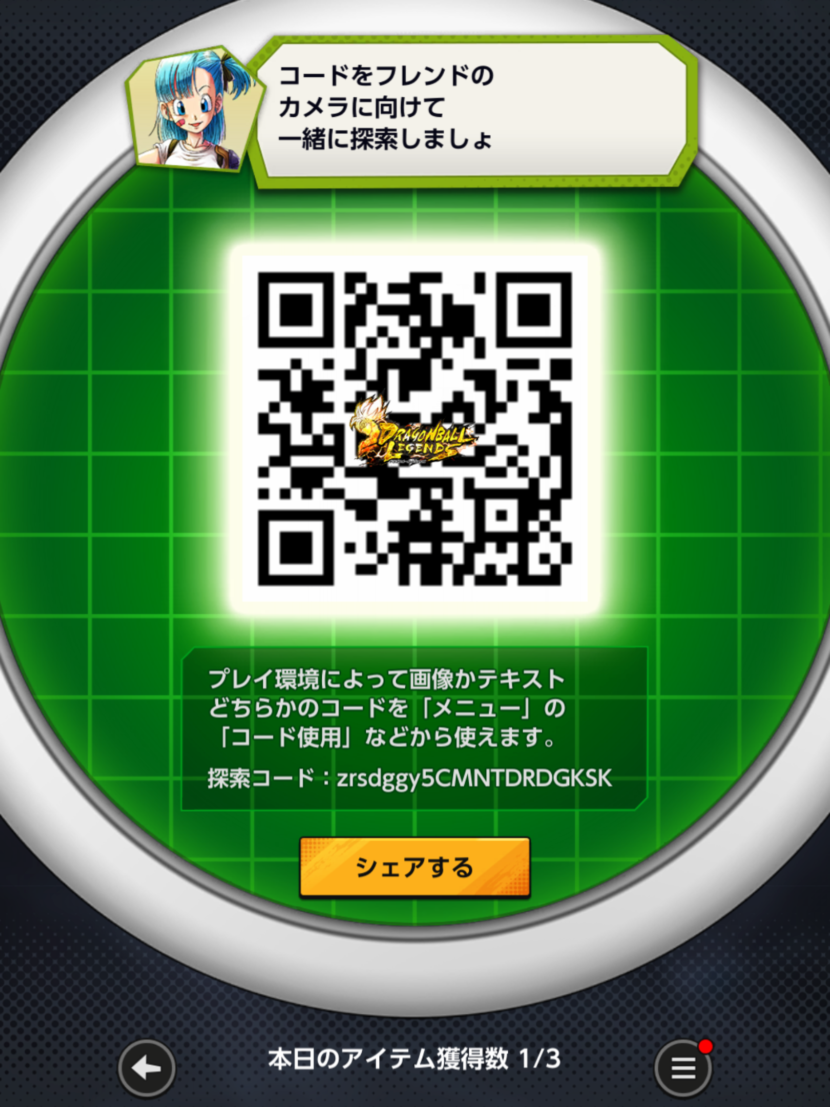 - フレンドのQRコードを読み込む事でドラゴンボールを探索できる