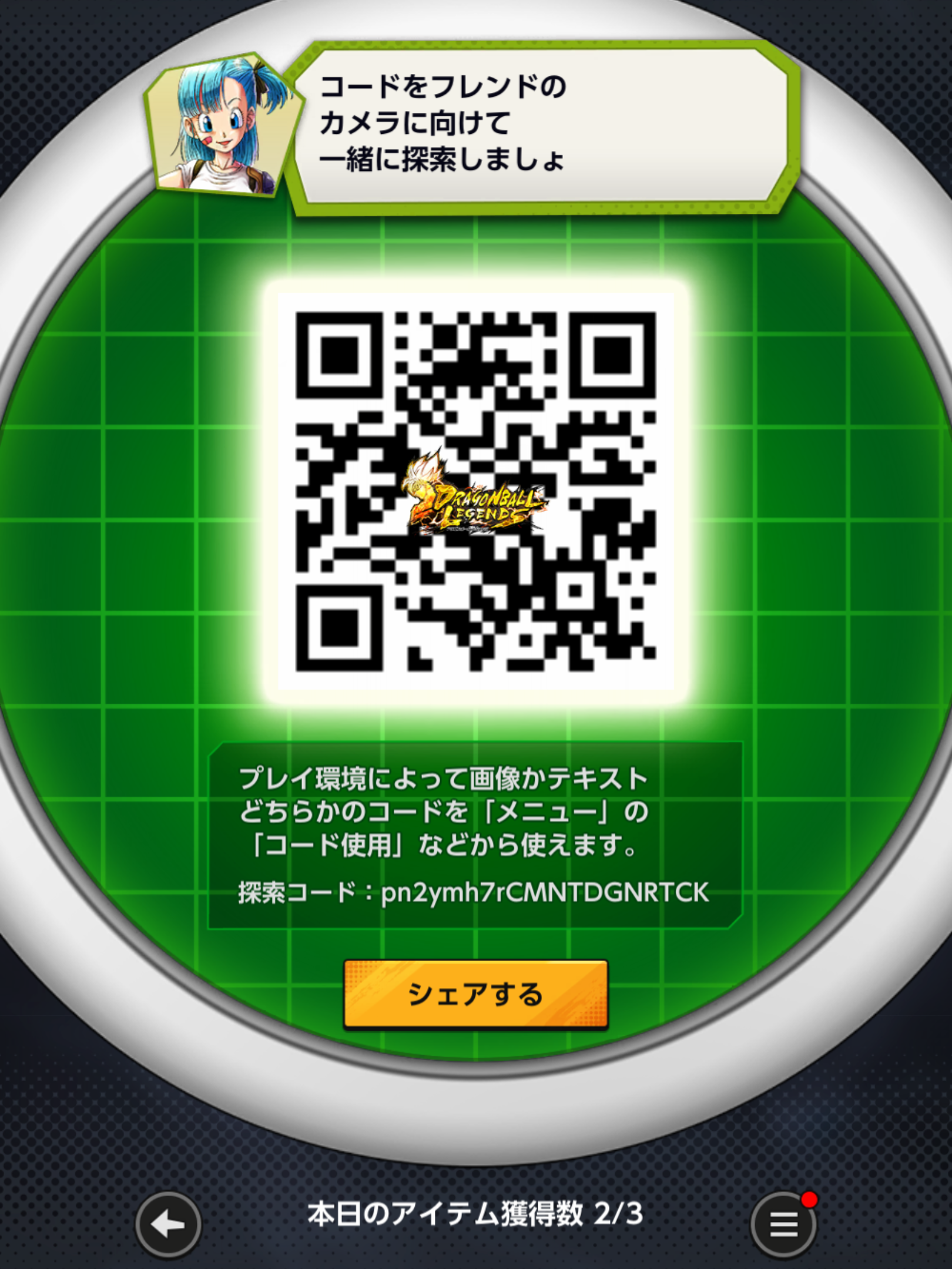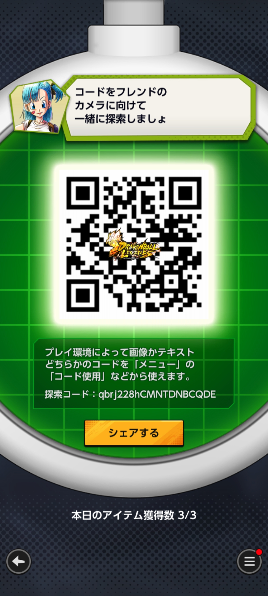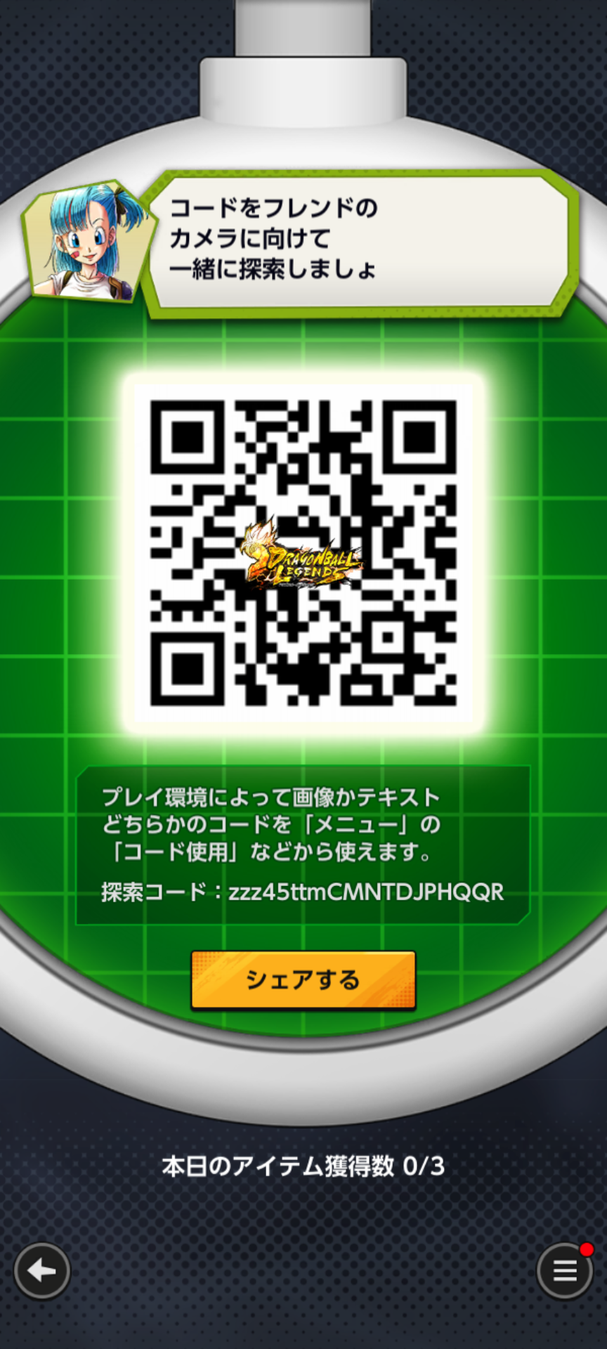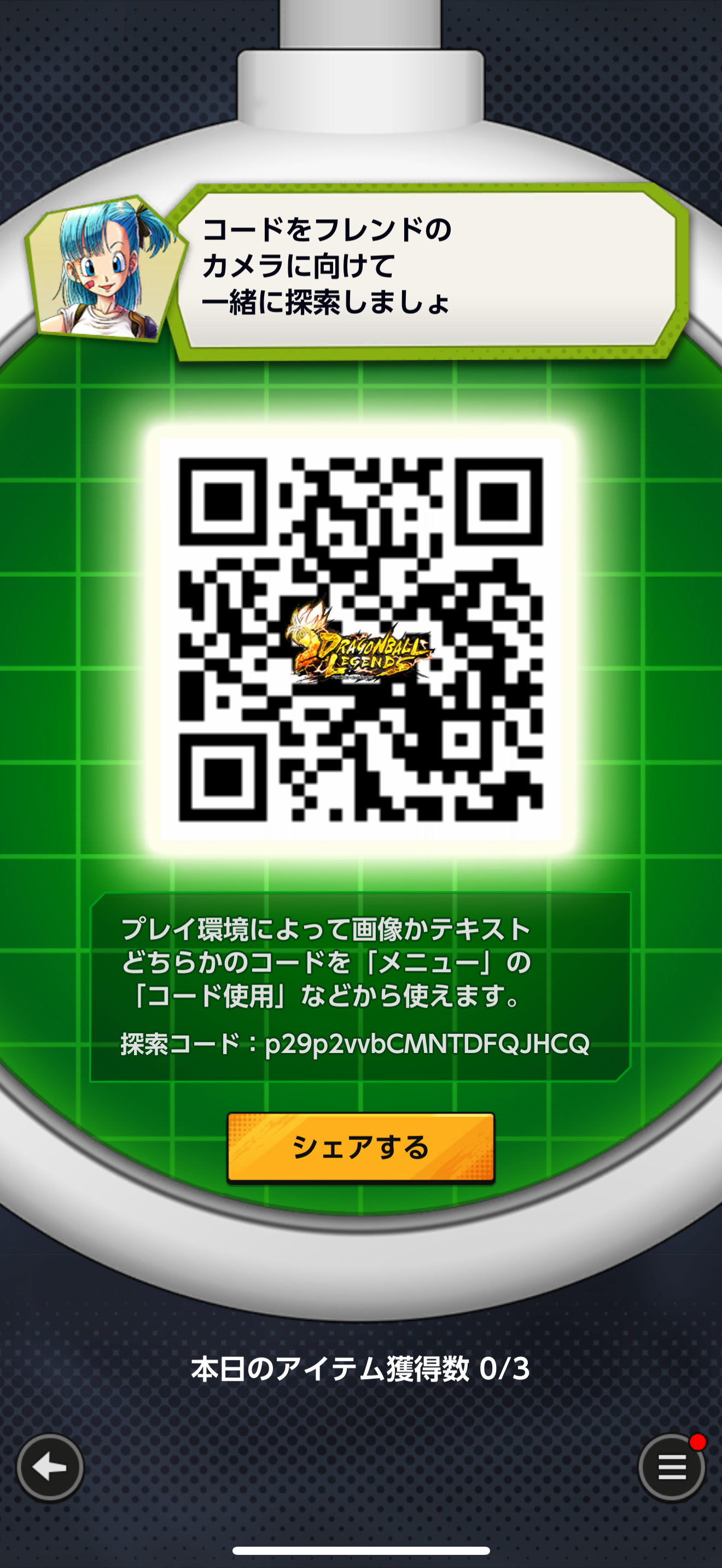 - フレンドのQRコードを読み込む事でドラゴンボールを探索できる