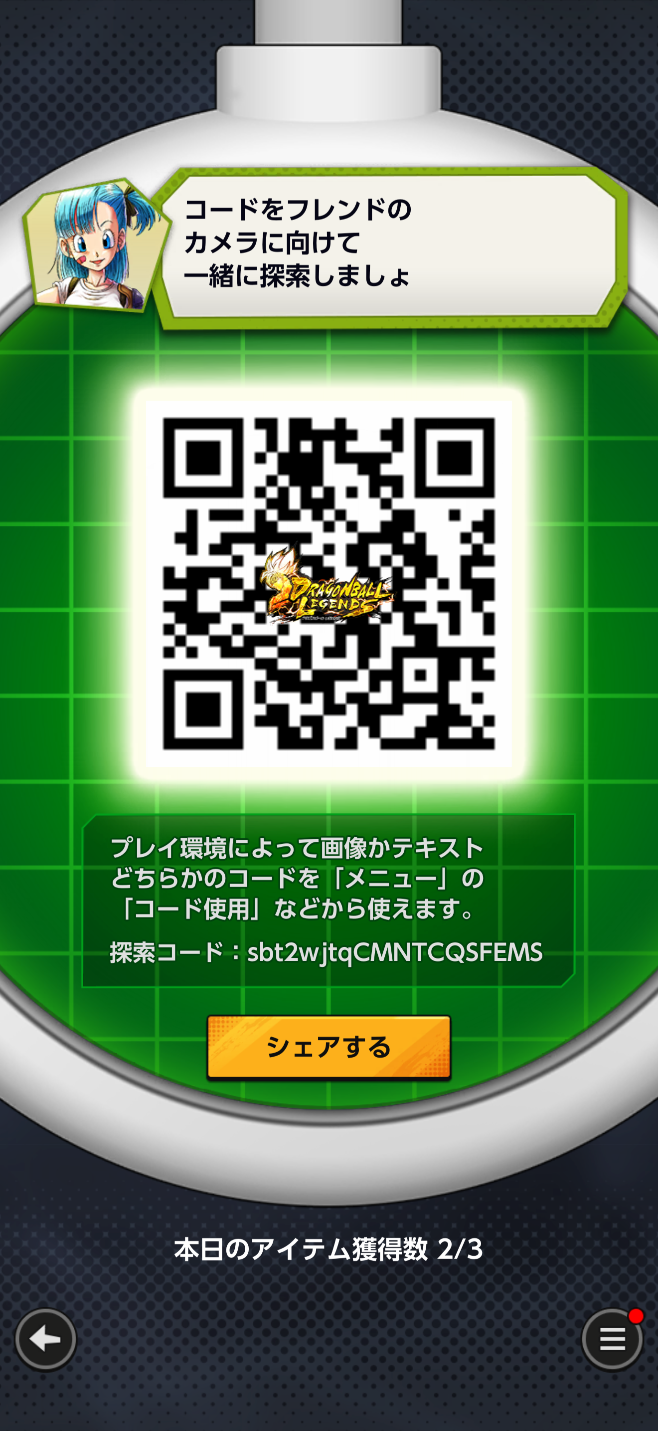 • フレンドのQRコードを読み込む事でドラゴンボールを探索できる