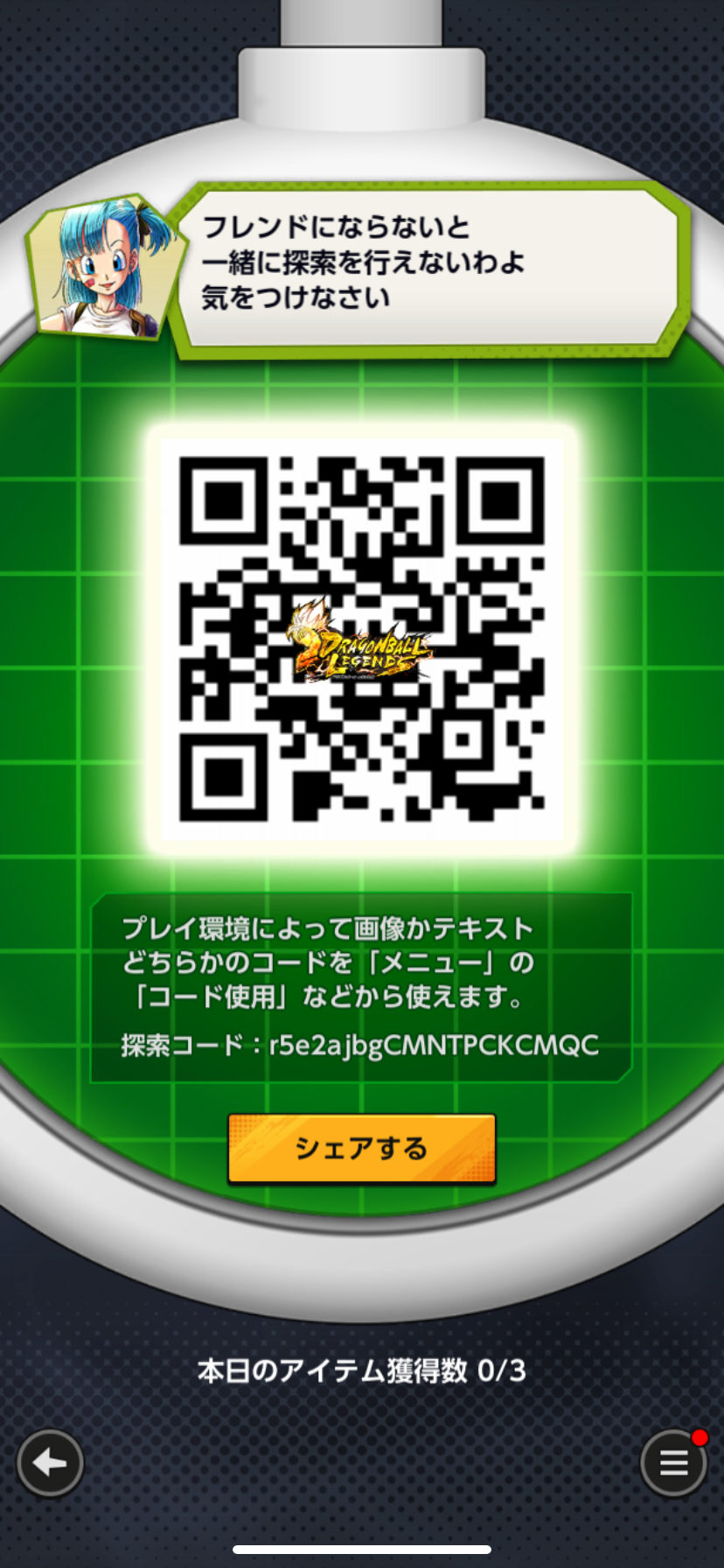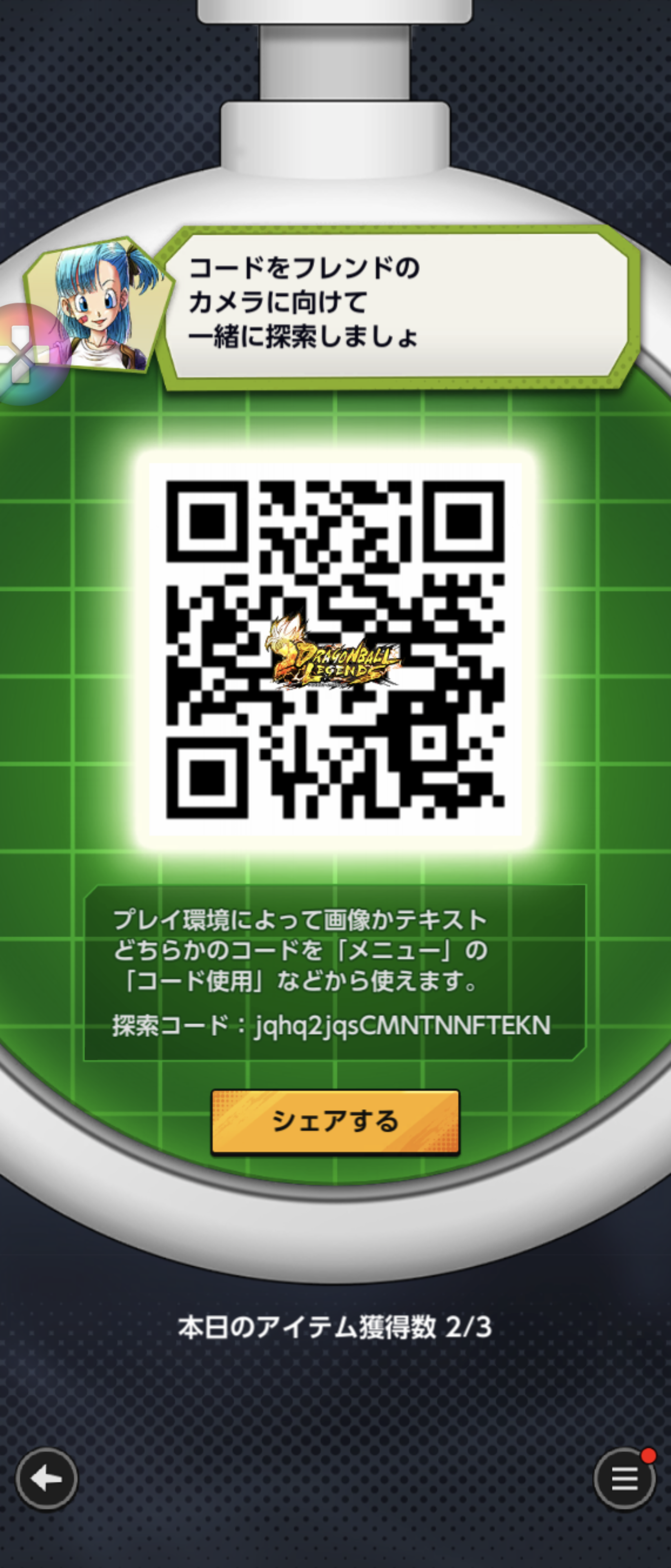 - フレンドのQRコードを読み込む事でドラゴンボールを探索できる