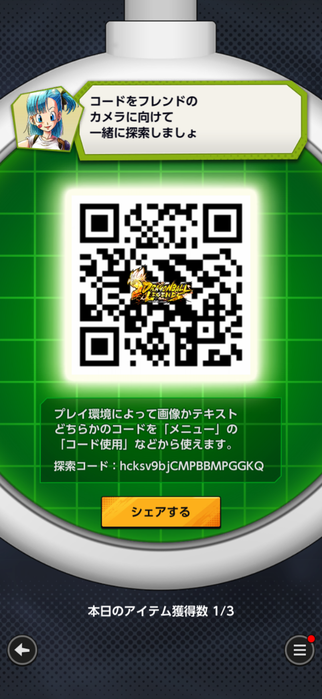 • フレンドのQRコードを読み込む事でドラゴンボールを探索できる