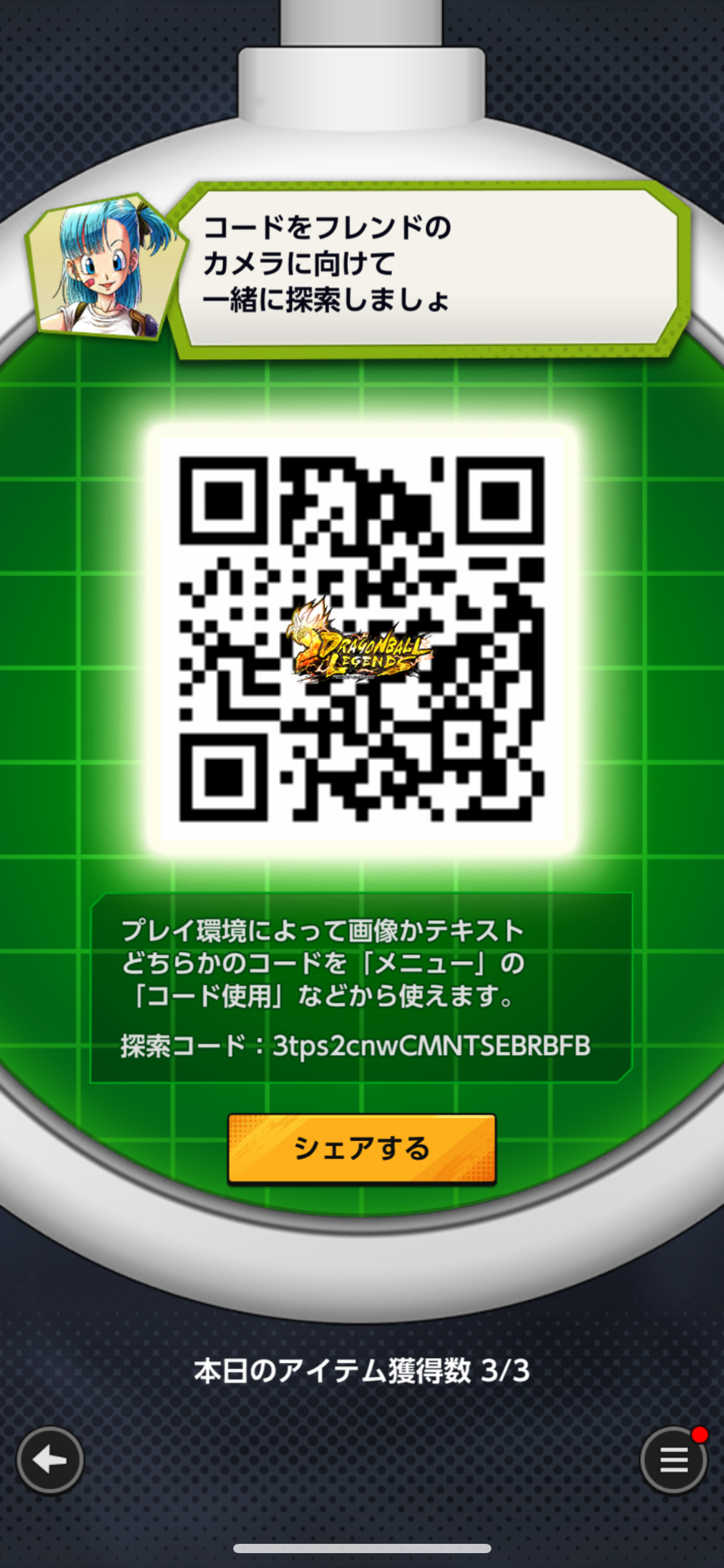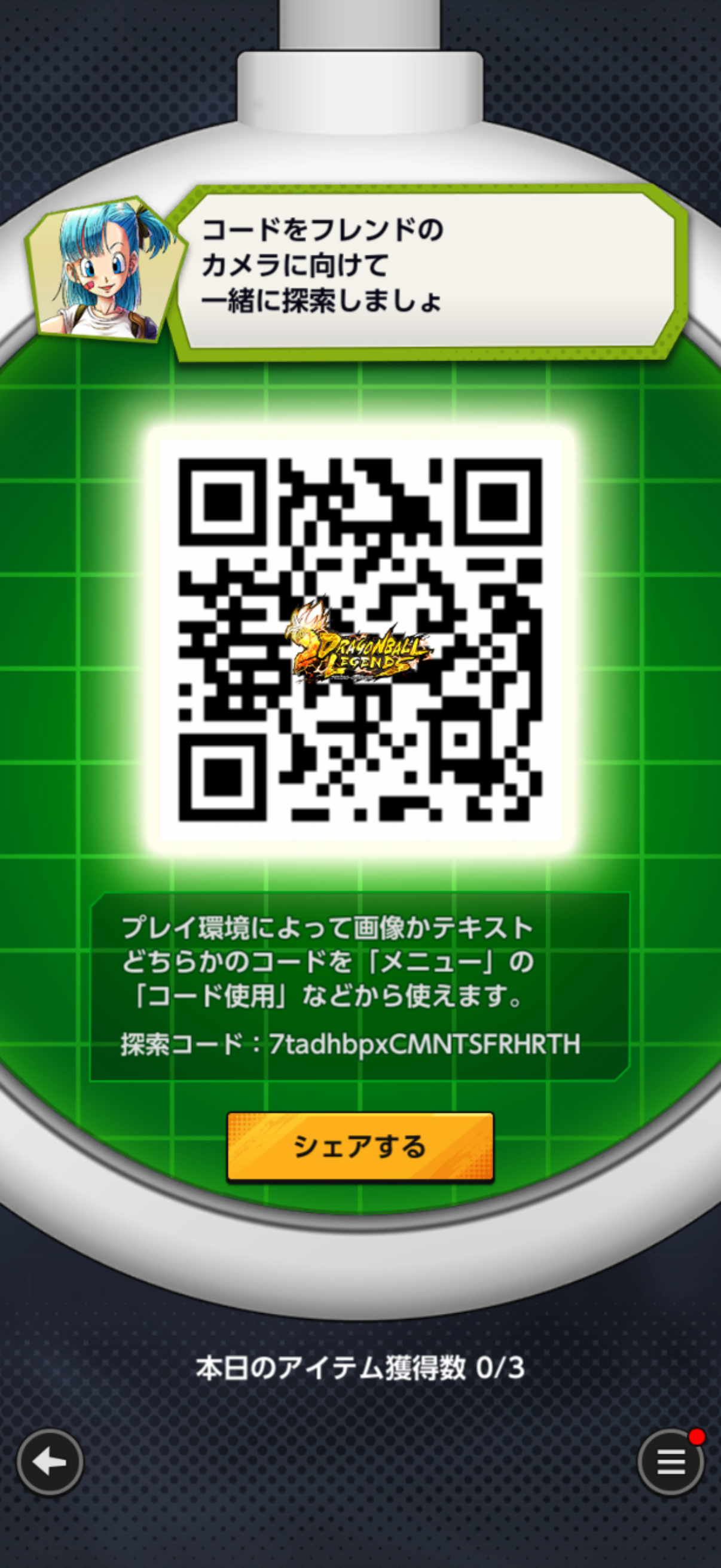 - フレンドのQRコードを読み込む事でドラゴンボールを探索できる