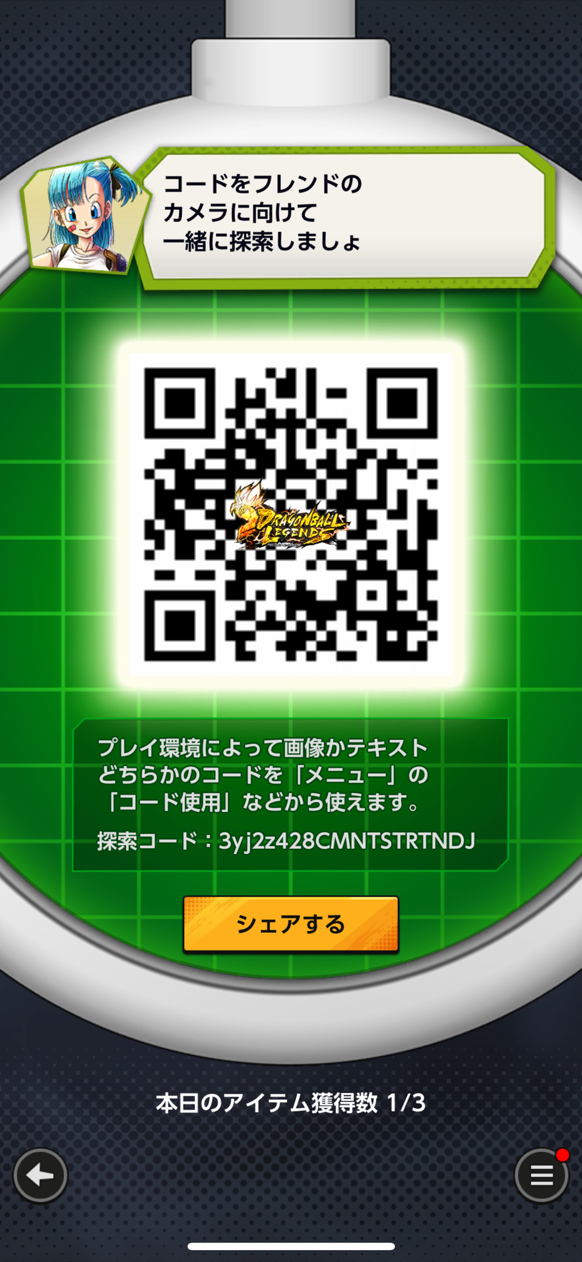 - フレンドのQRコードを読み込む事でドラゴンボールを探索できる