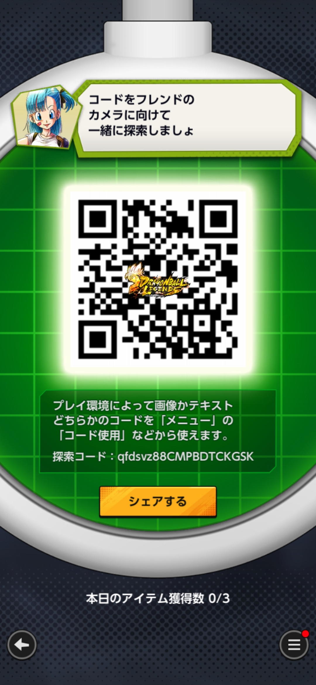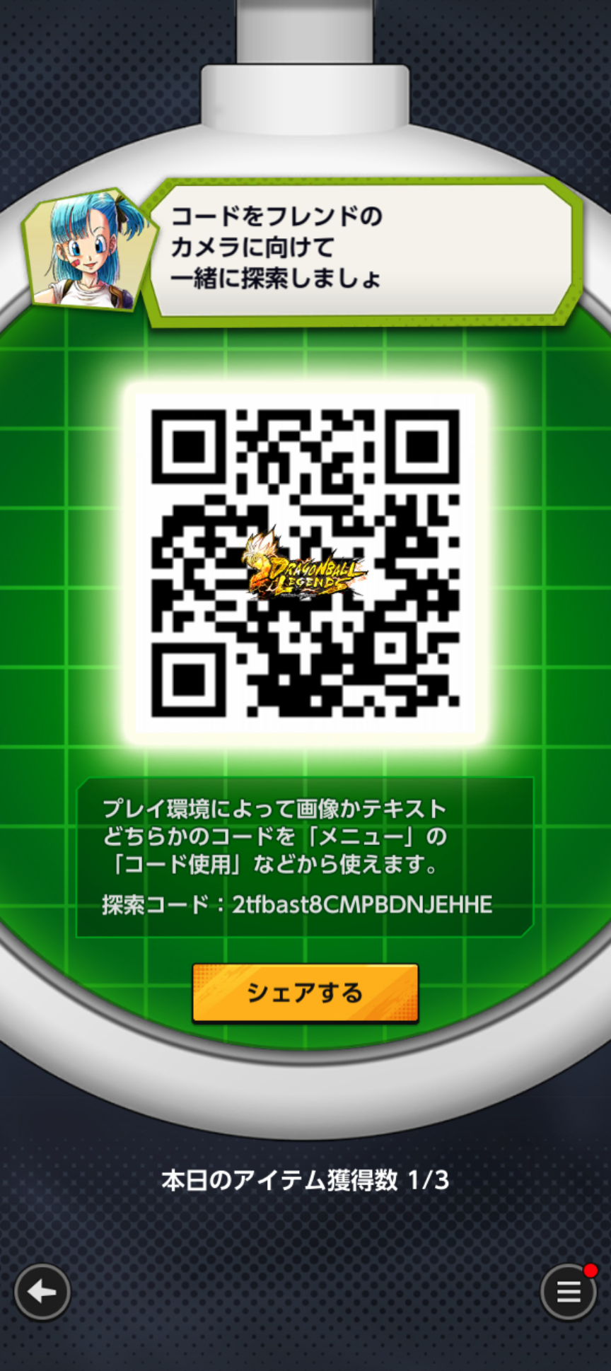 • フレンドのQRコードを読み込む事でドラゴンボールを探索できる