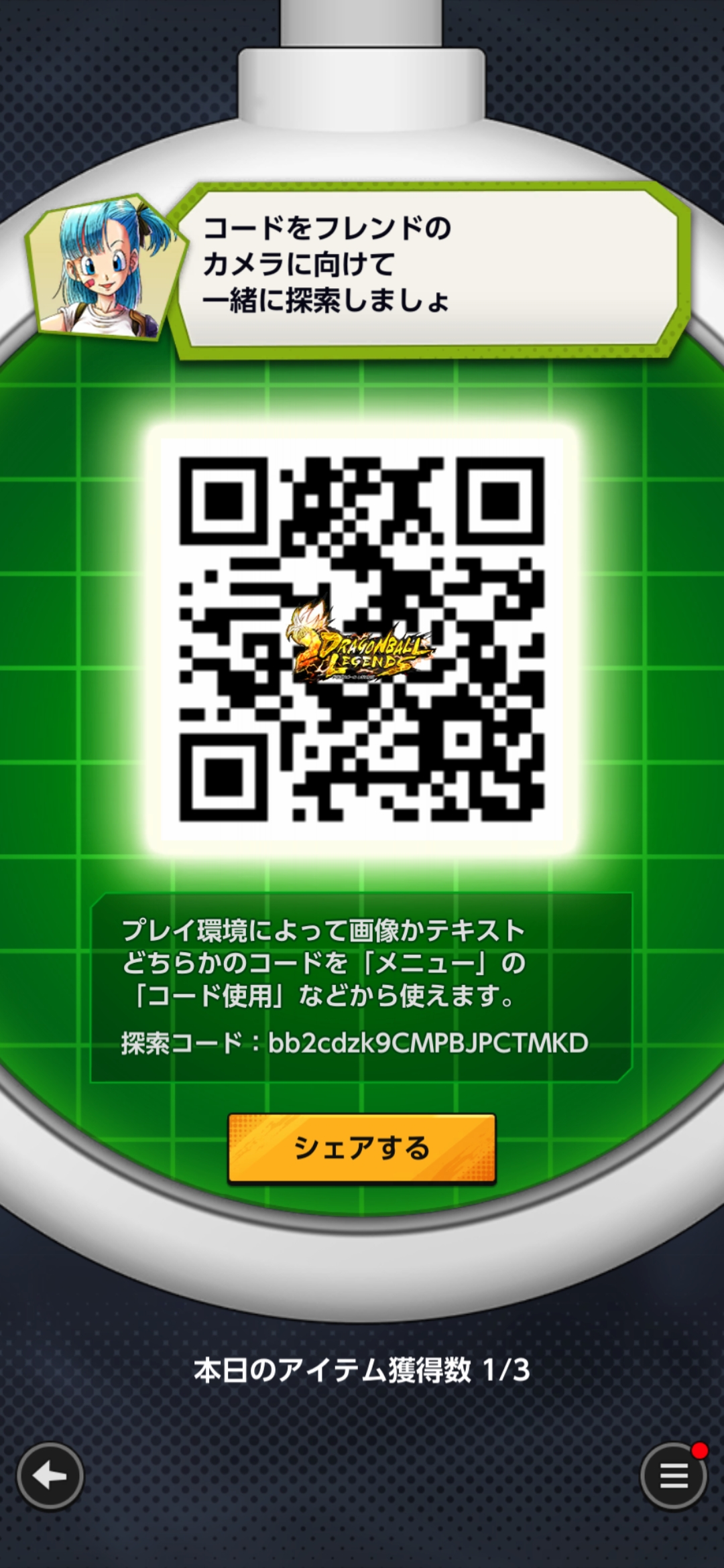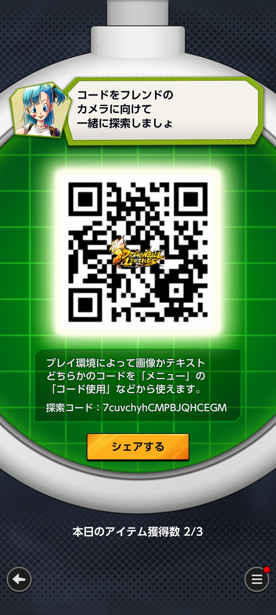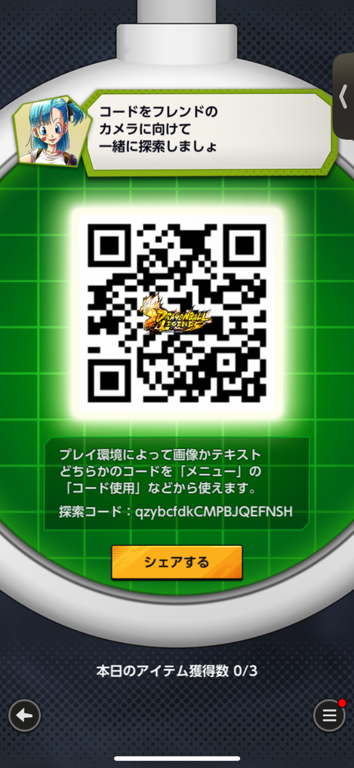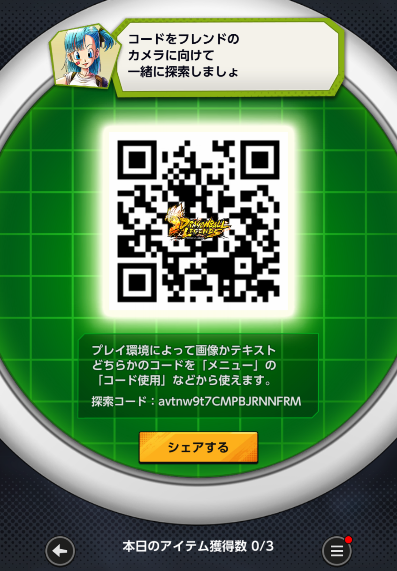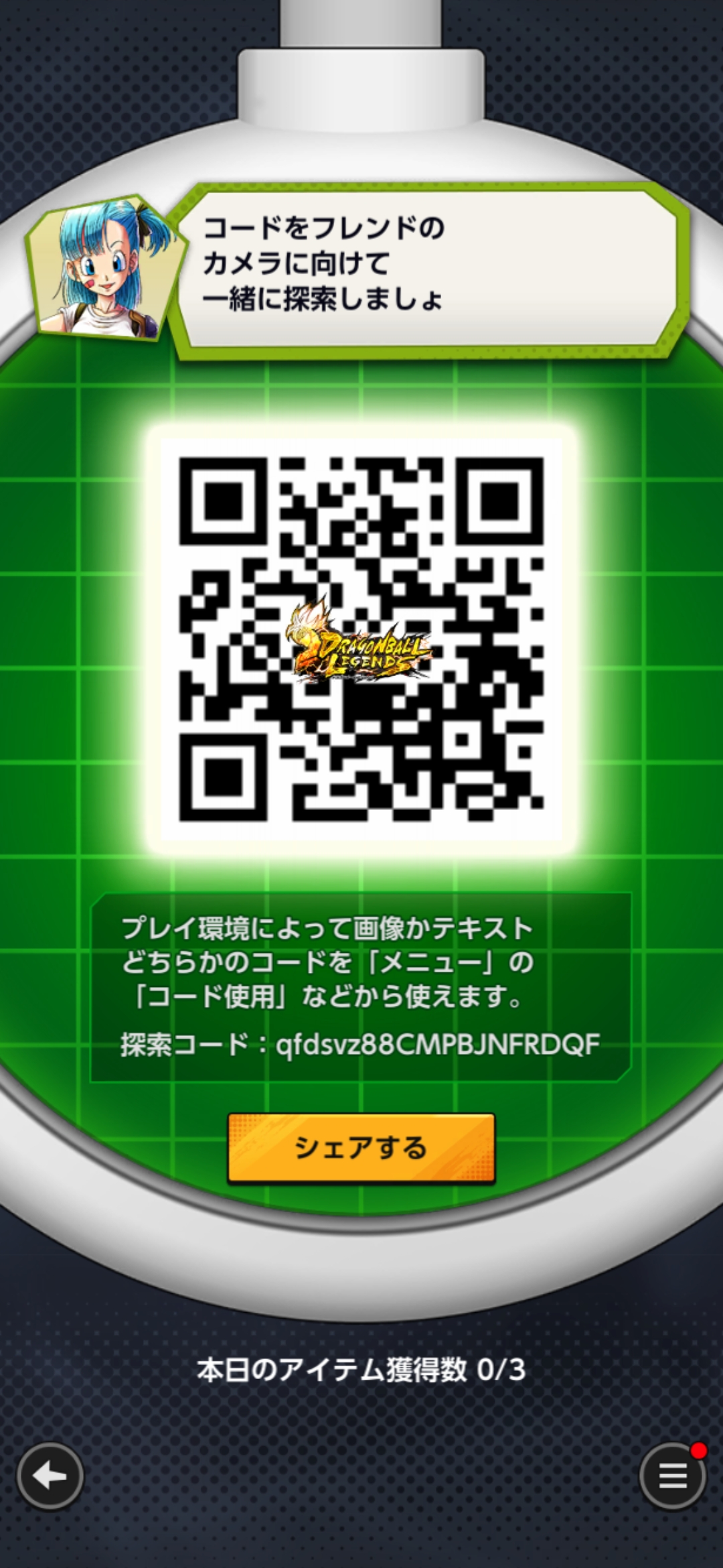 - フレンドのQRコードを読み込む事でドラゴンボールを探索できる