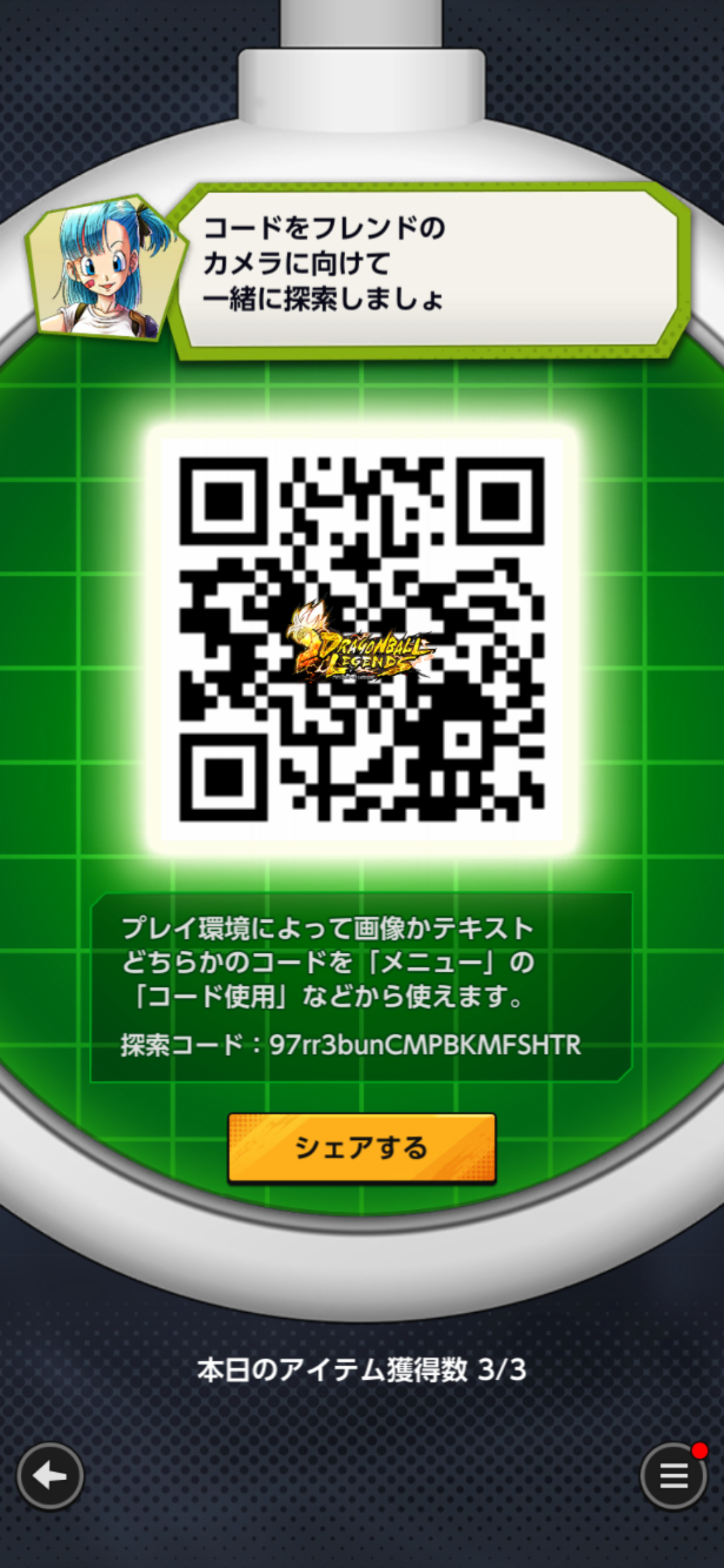 • フレンドのQRコードを読み込む事でドラゴンボールを探索できる