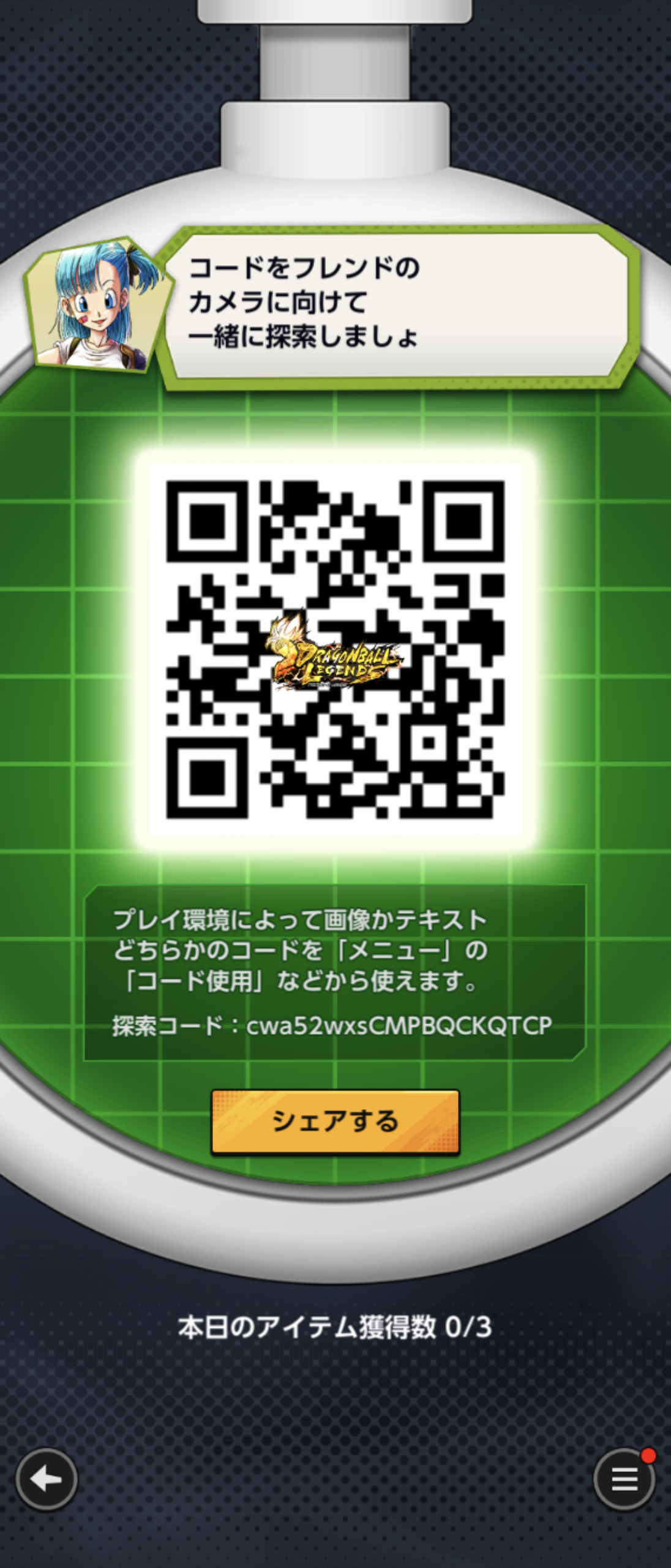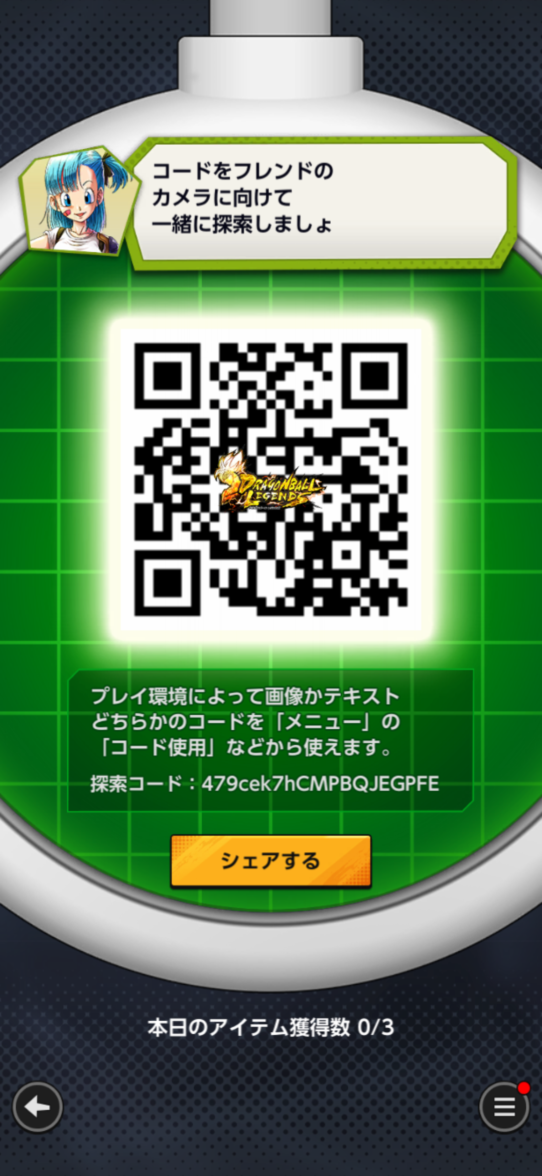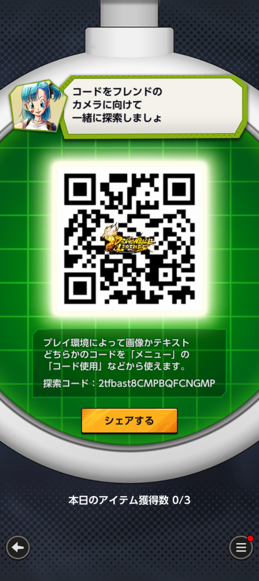 - フレンドのQRコードを読み込む事でドラゴンボールを探索できる