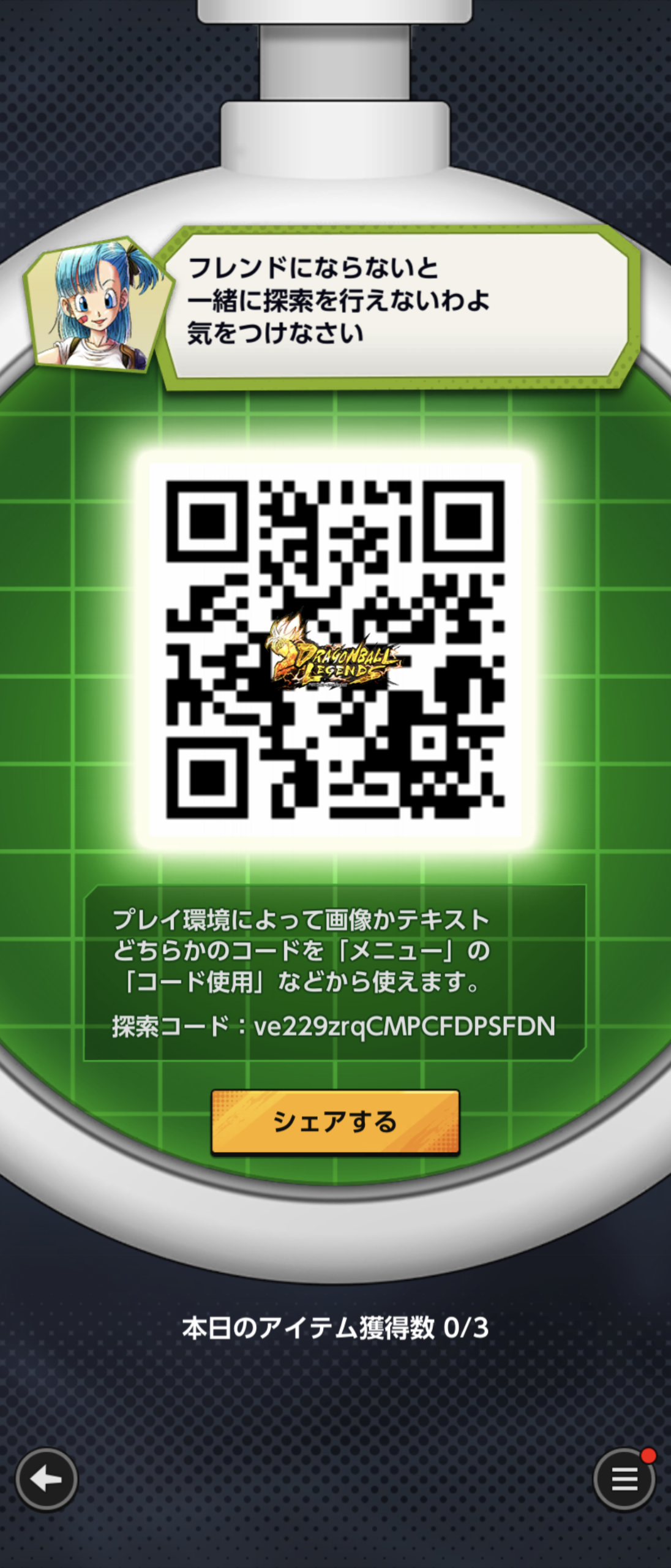 • フレンドのQRコードを読み込む事でドラゴンボールを探索できる