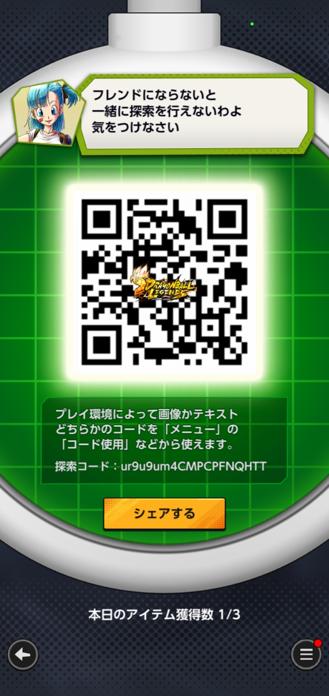 • フレンドのQRコードを読み込む事でドラゴンボールを探索できる