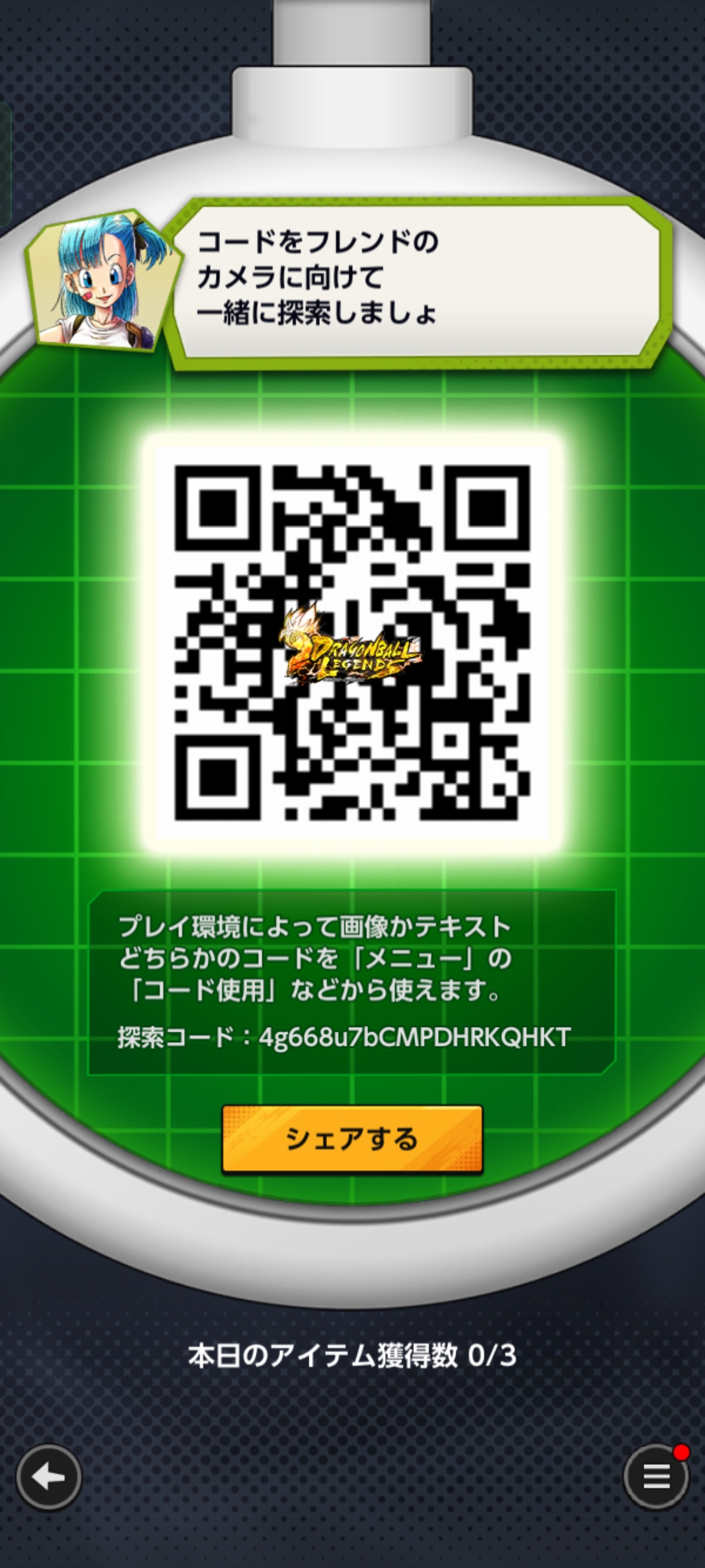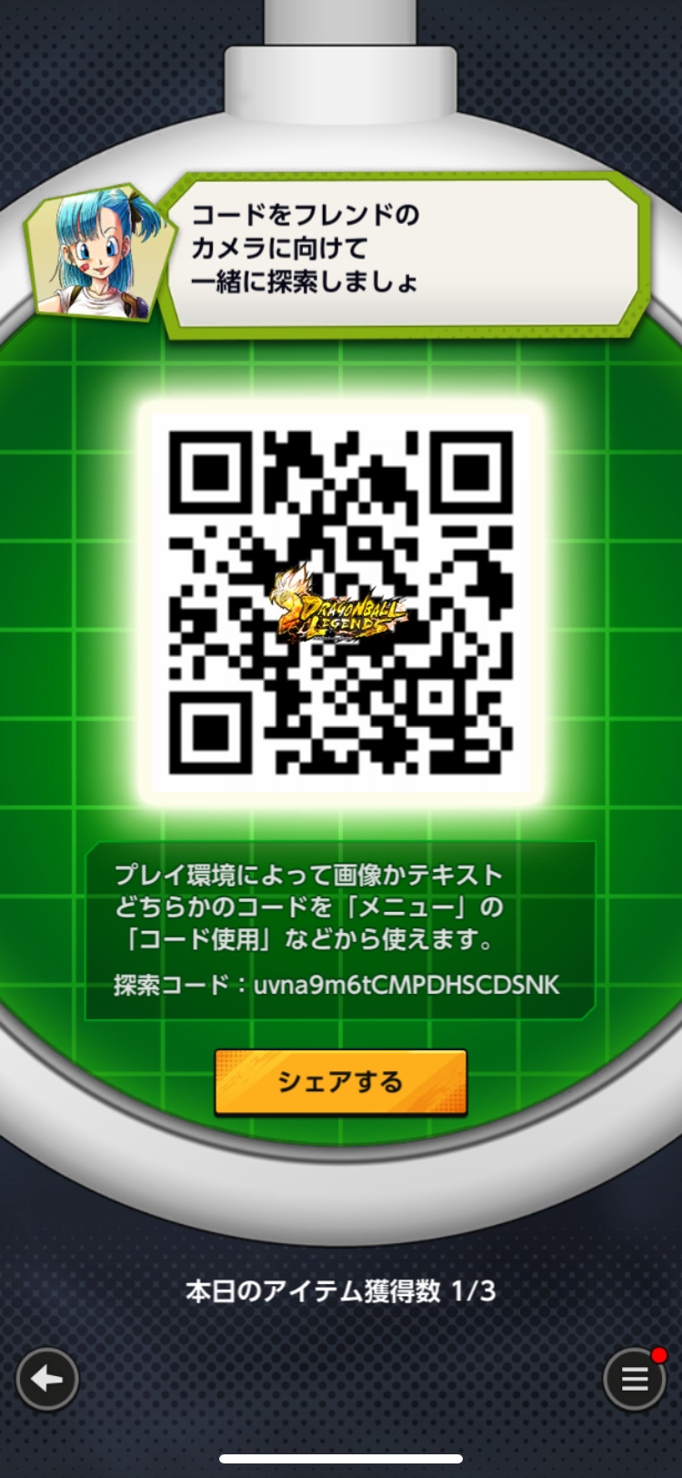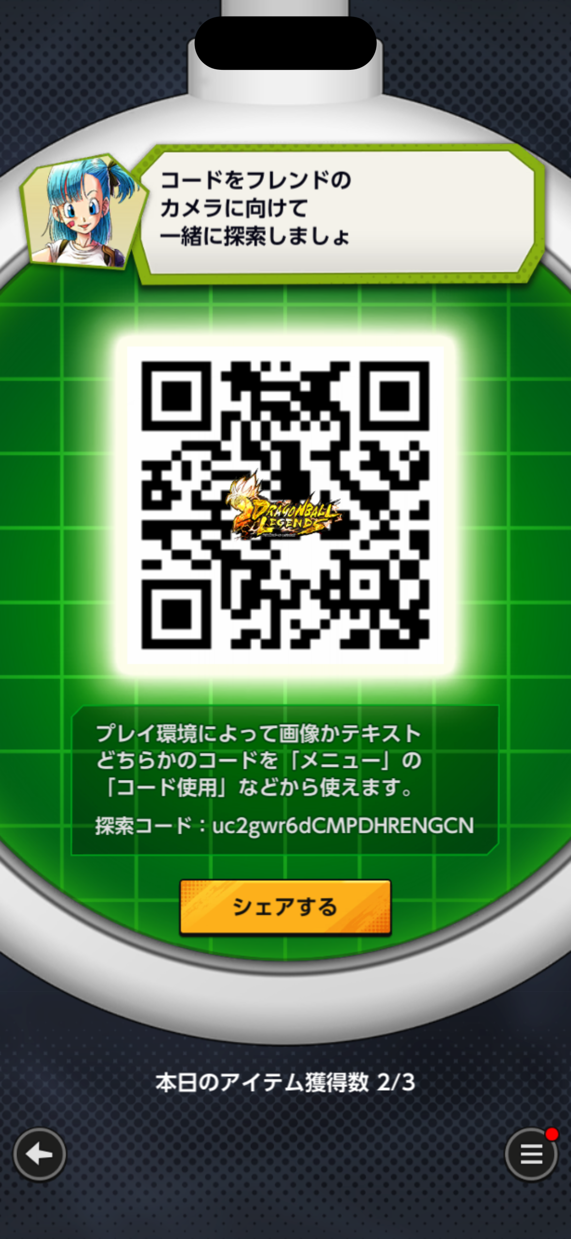 - フレンドのQRコードを読み込む事でドラゴンボールを探索できる