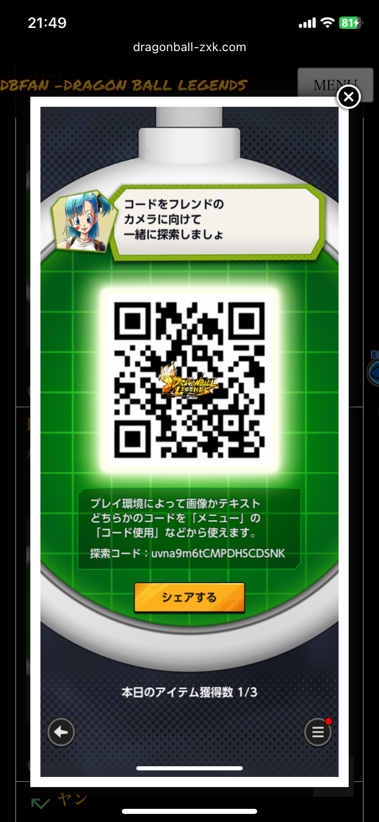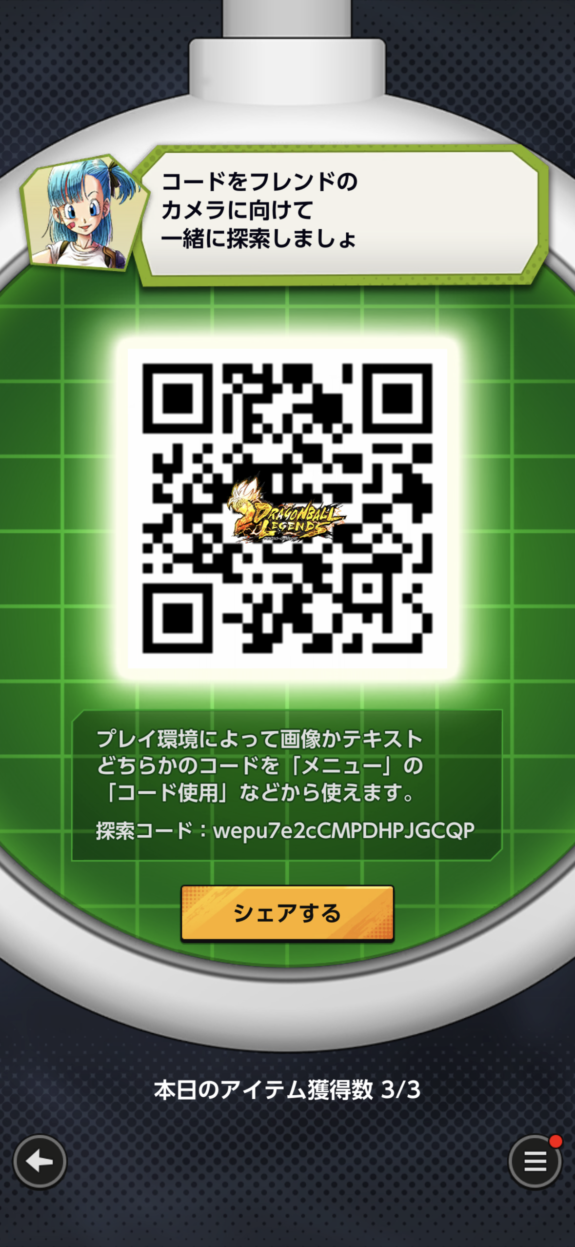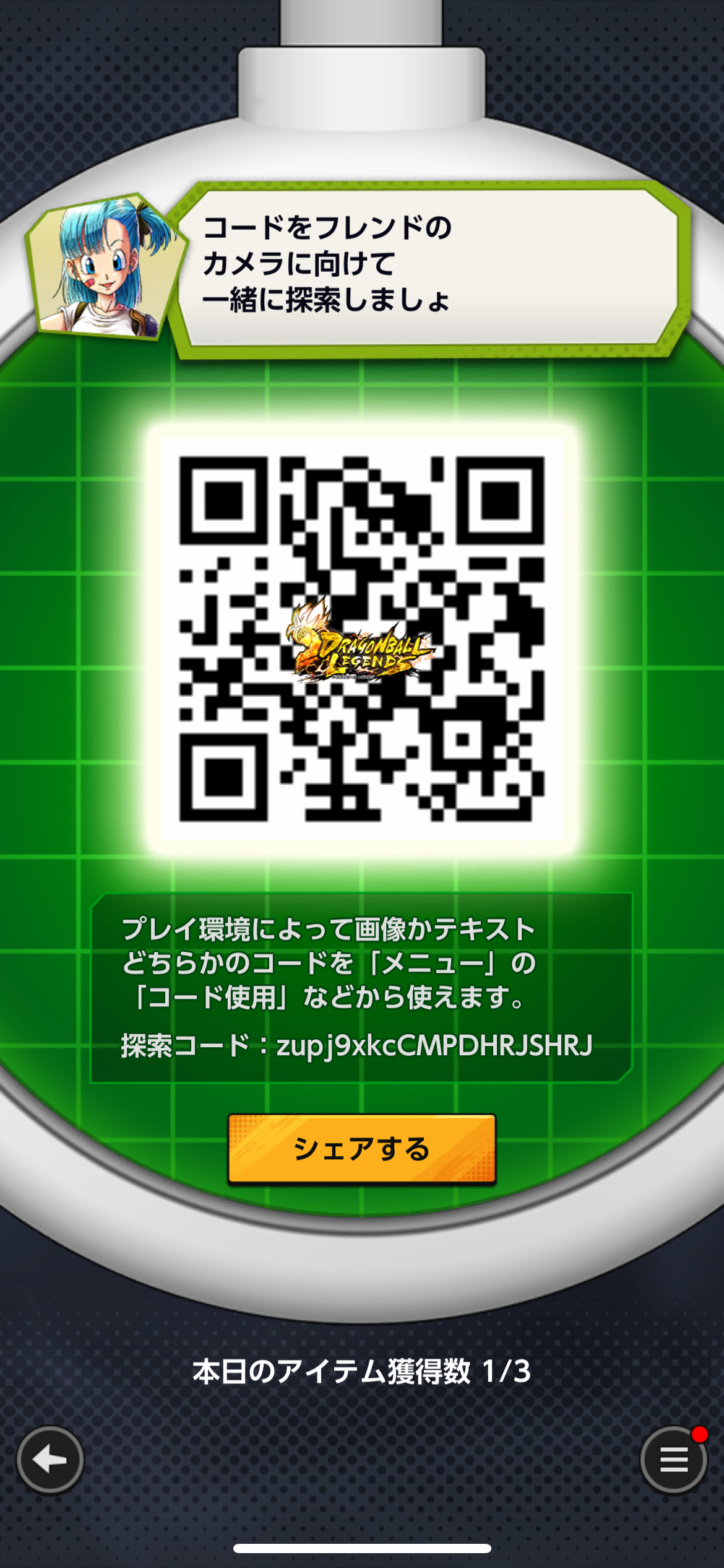 - フレンドのQRコードを読み込む事でドラゴンボールを探索できる