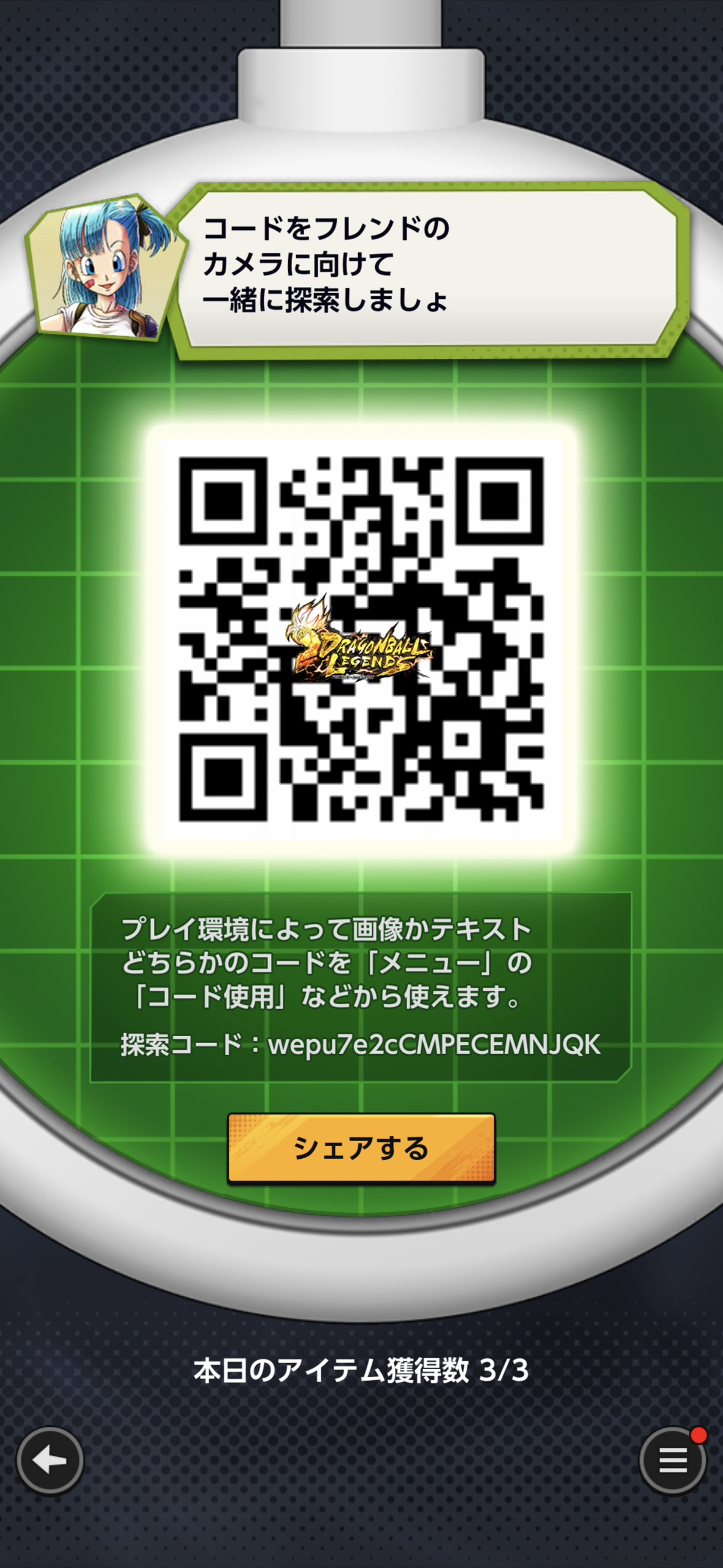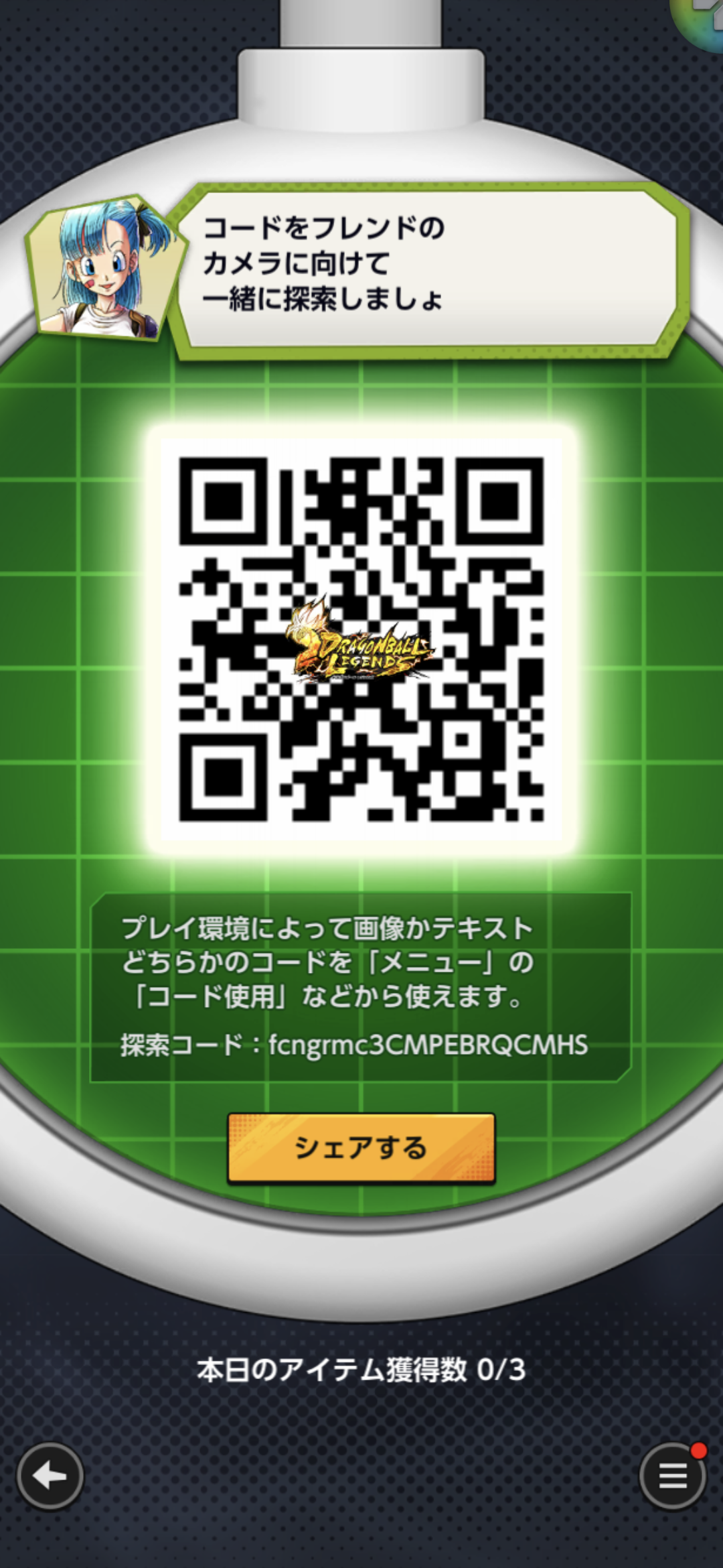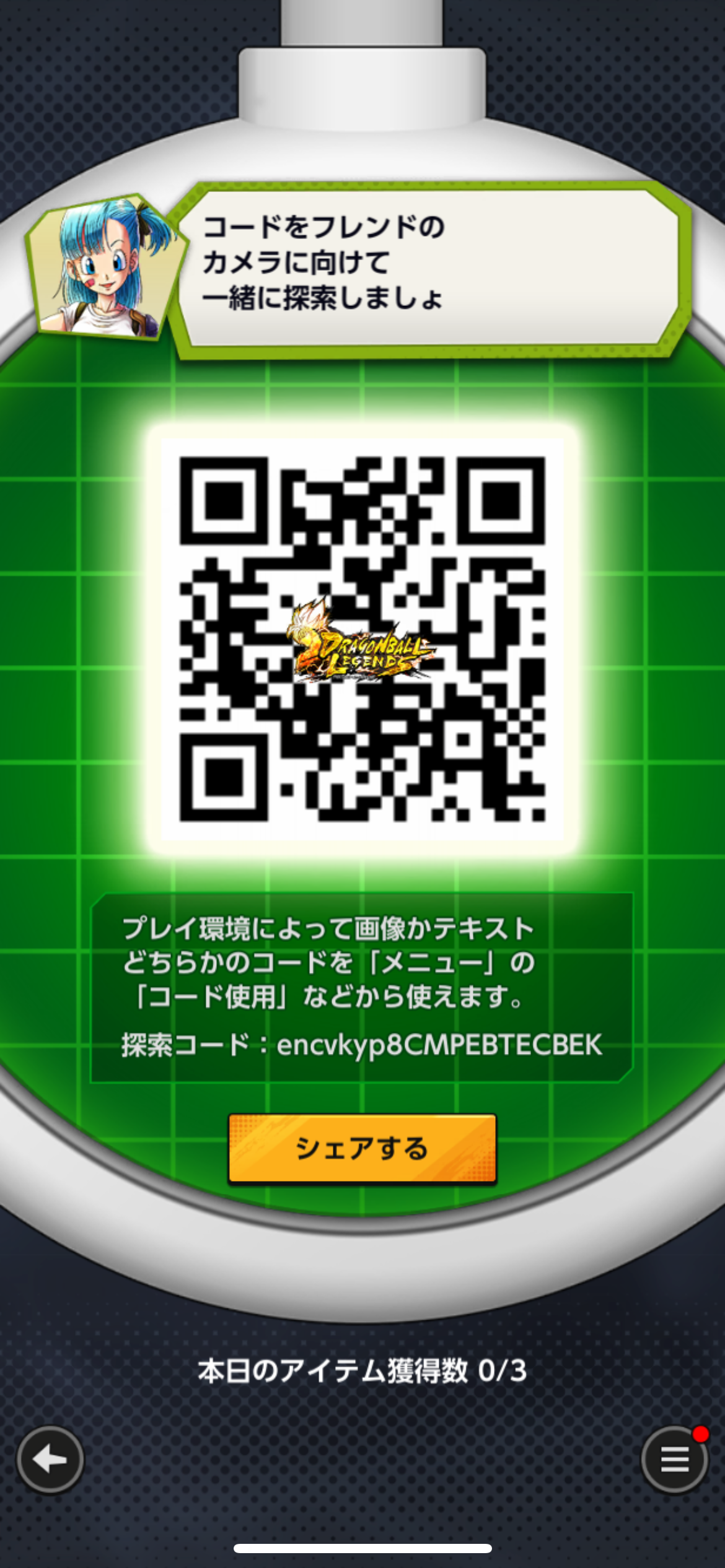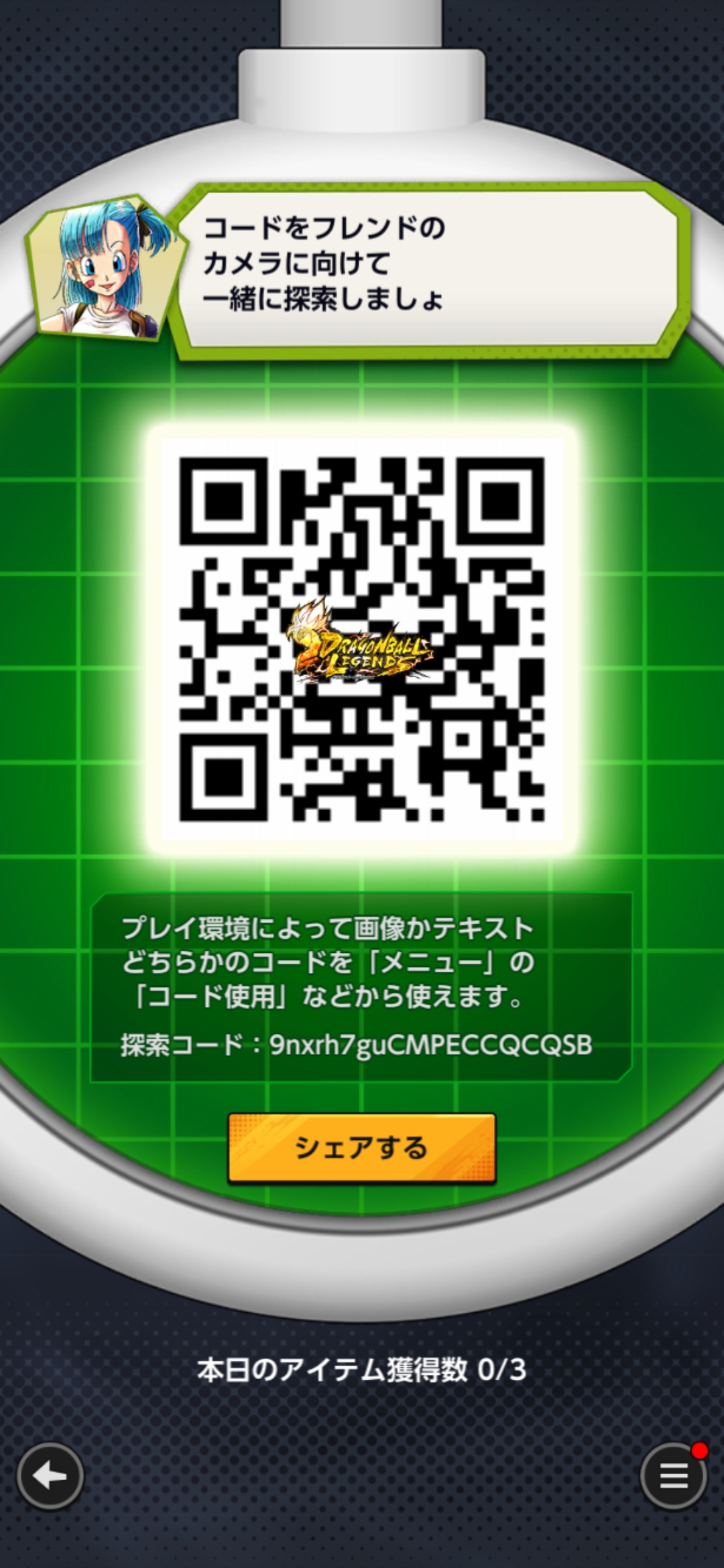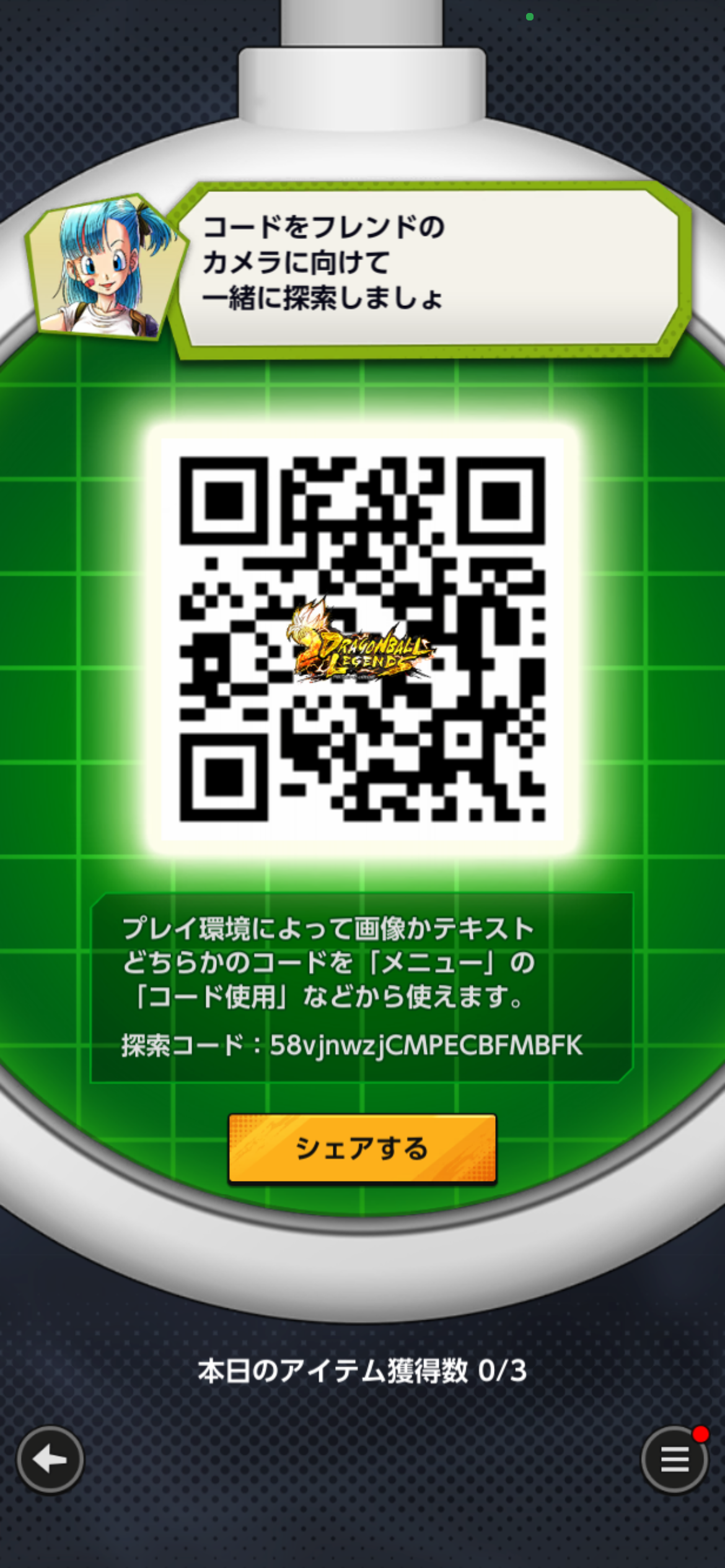 - フレンドのQRコードを読み込む事でドラゴンボールを探索できる