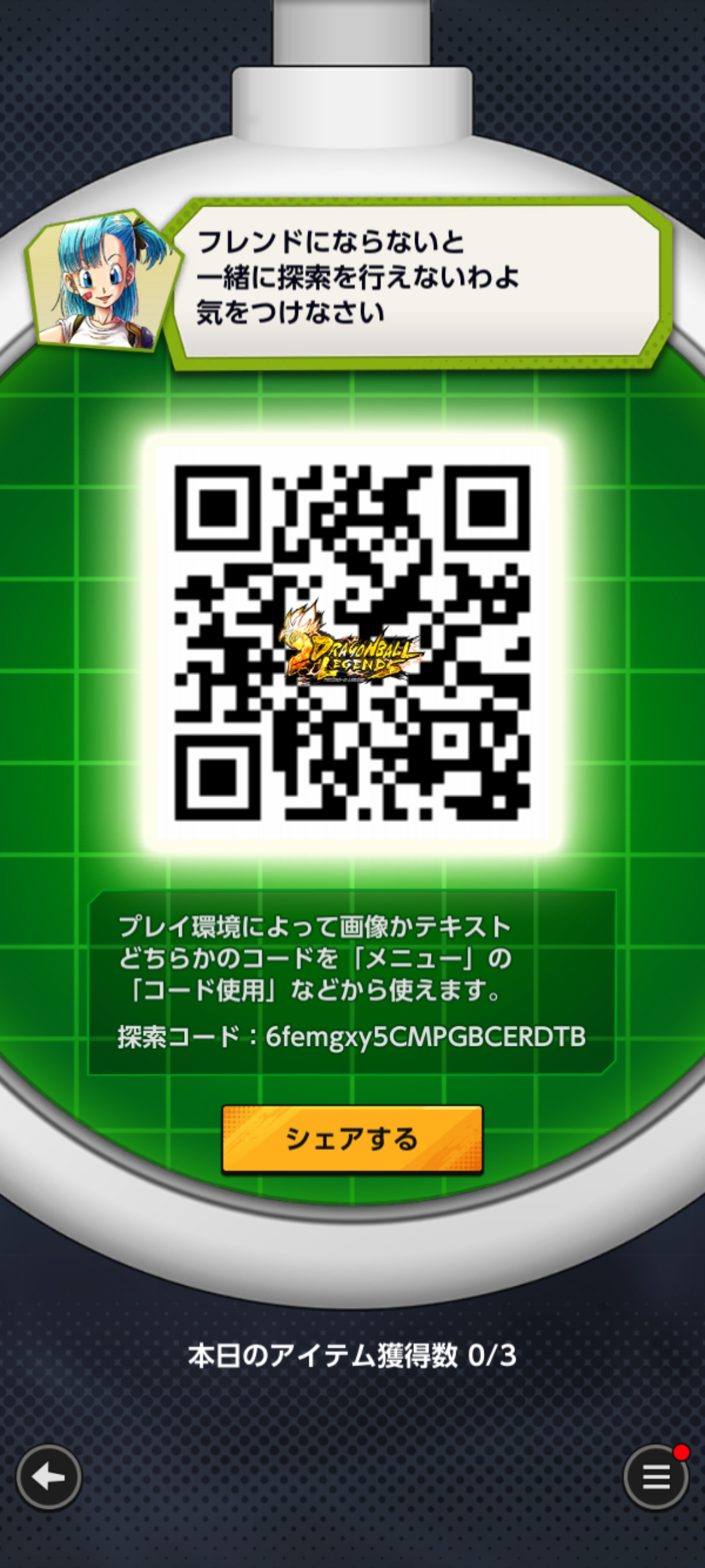 • フレンドのQRコードを読み込む事でドラゴンボールを探索できる