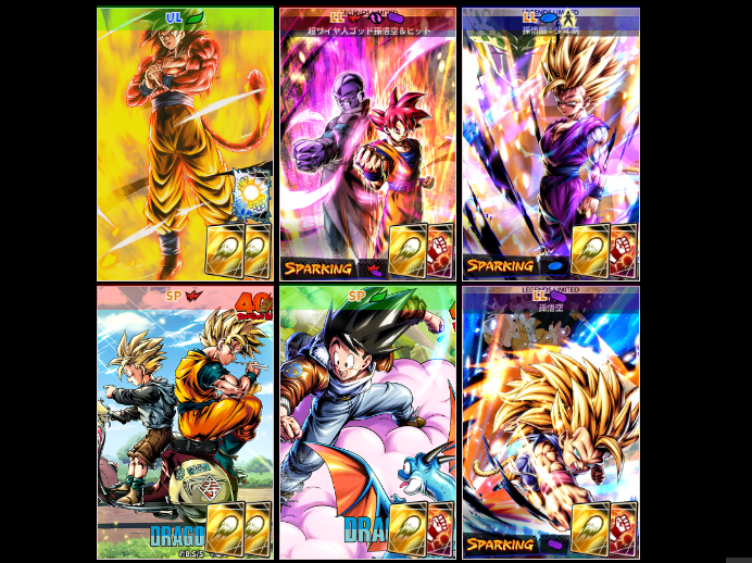 2025-12-25 UL超フルパワーサイヤ人4孫悟空が追加 2025-12-11 フェスティバルキャラLL超サイヤ人ゴッド孫悟空&ヒット、LL超サイヤ人2孫悟飯:少年期が追加。 2025-06-18 7周年キャラ LL