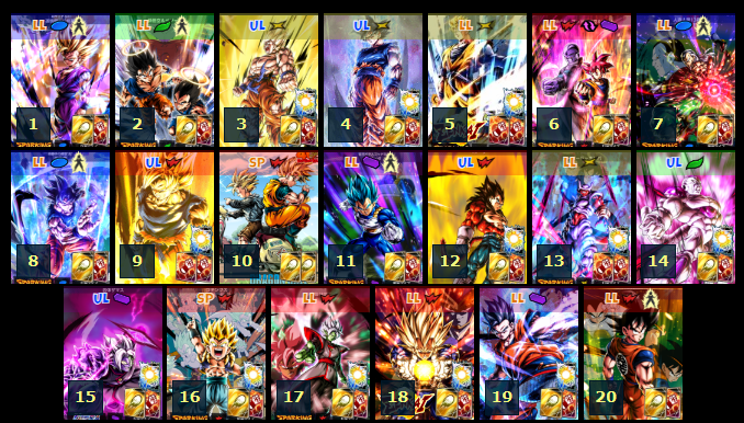 2025-12-11 フェスティバルキャラLL超サイヤ人ゴッド孫悟空&ヒットが追加。 2025-05-24 7周年キャラ、LL身勝手の極意”兆”孫悟空、LL超サイヤ人ゴッドSSベジータ追加。 2024-11-22 レジェ